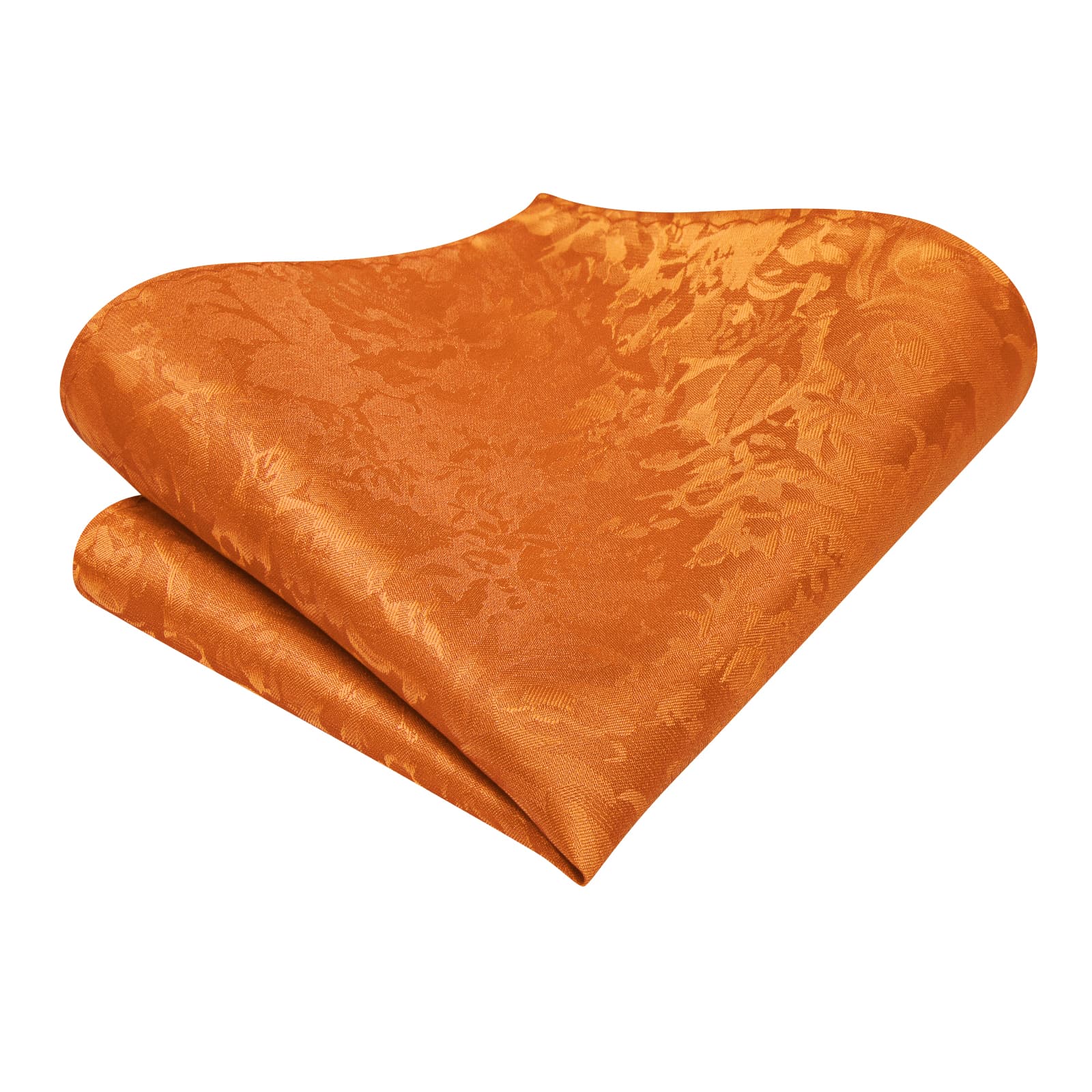 Hi-Tie Burnt Orange Floral Silk Mens Tie Handkerchief Cufflinks Set