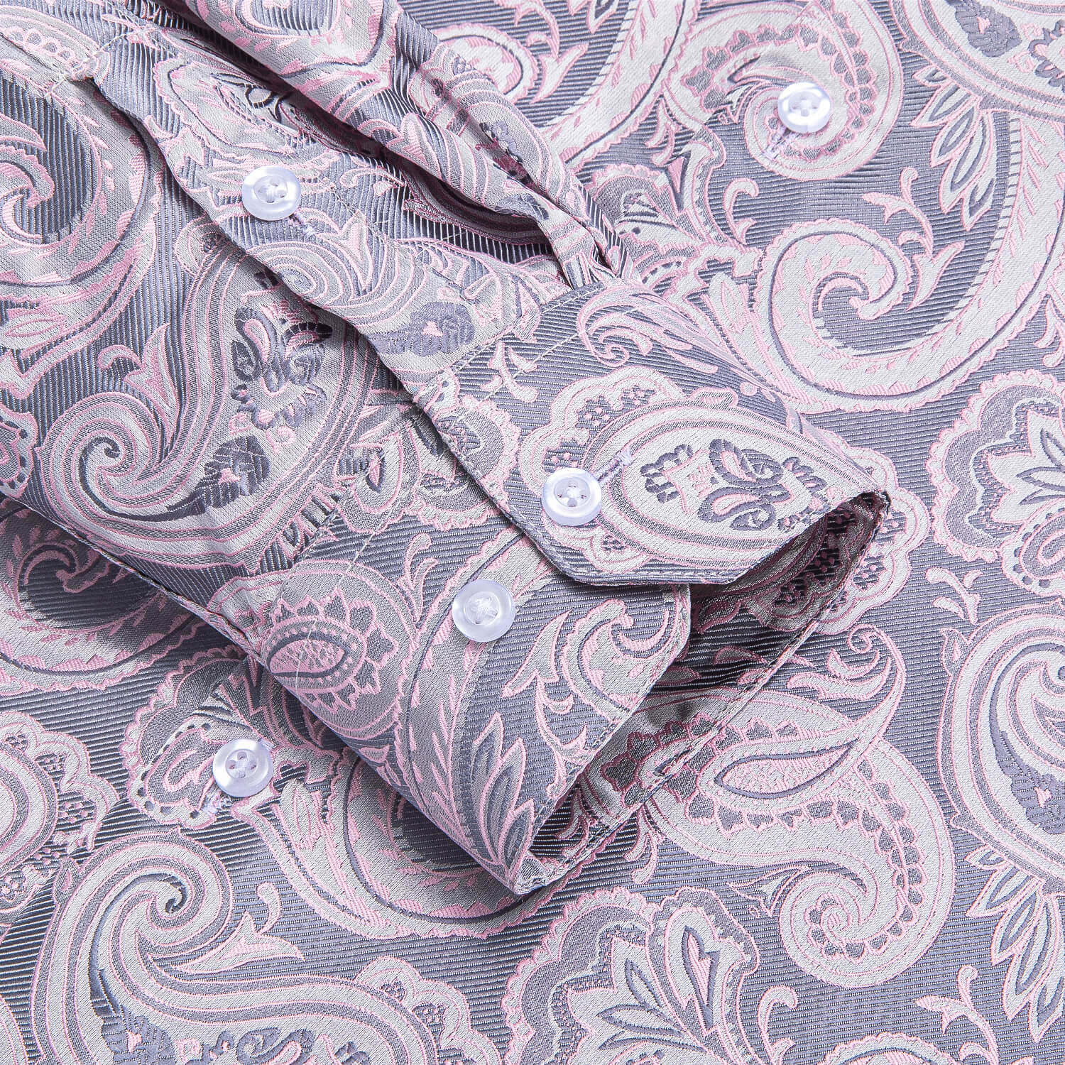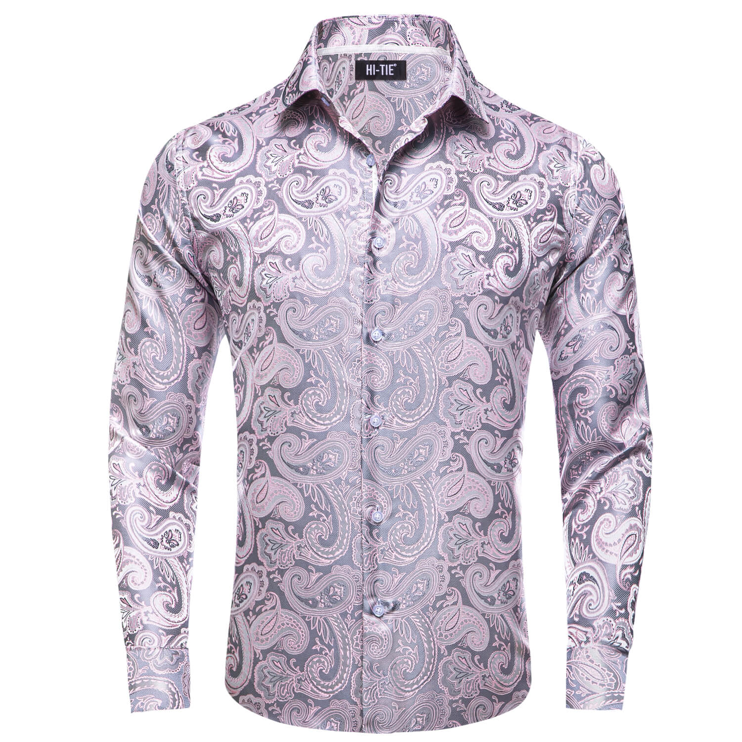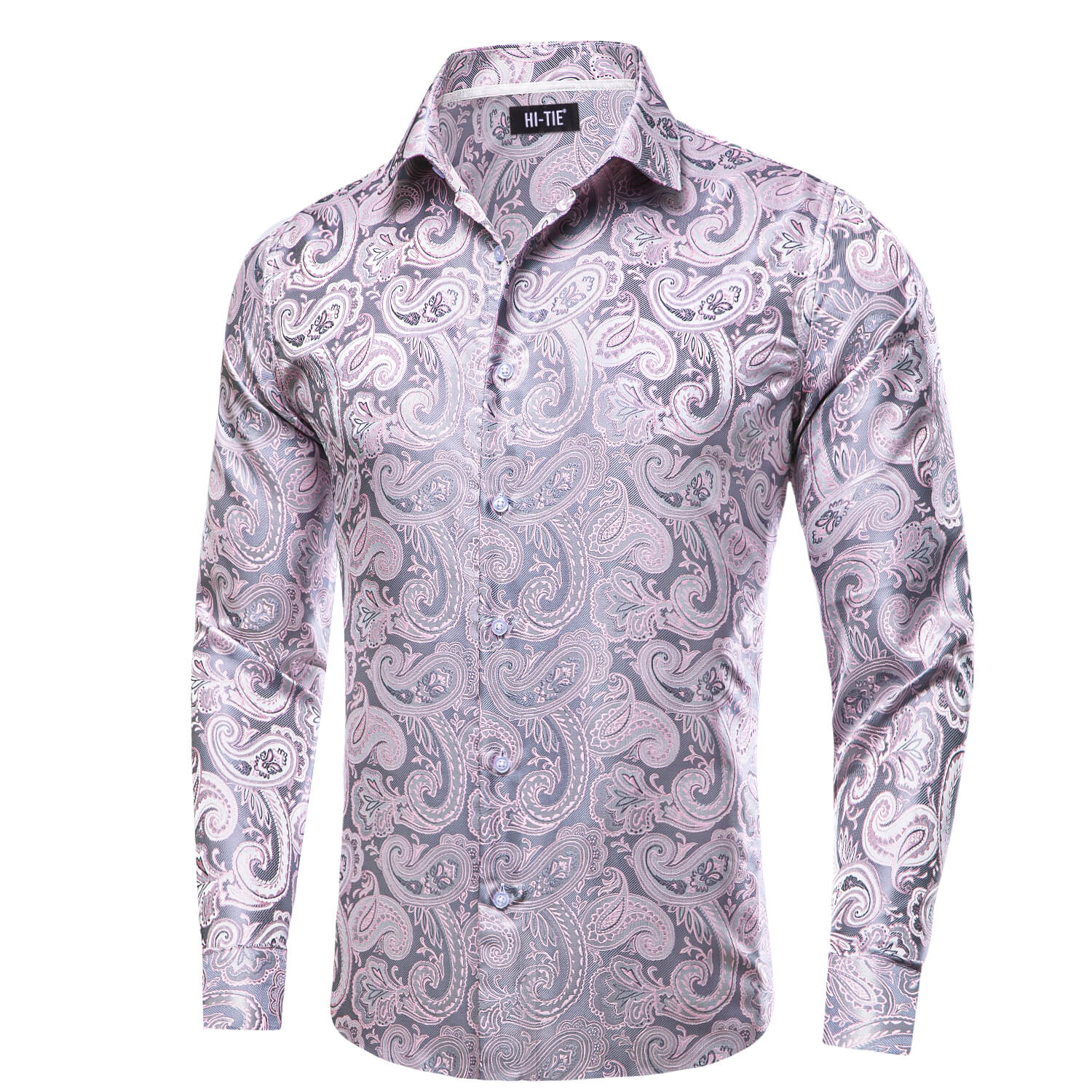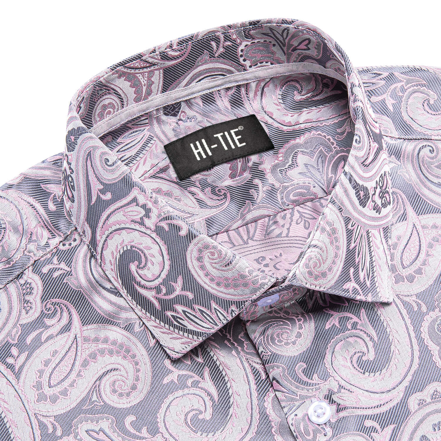 Hi-Tie Button Down Shirt Pale Pink Paisley Silk Shirt for Men