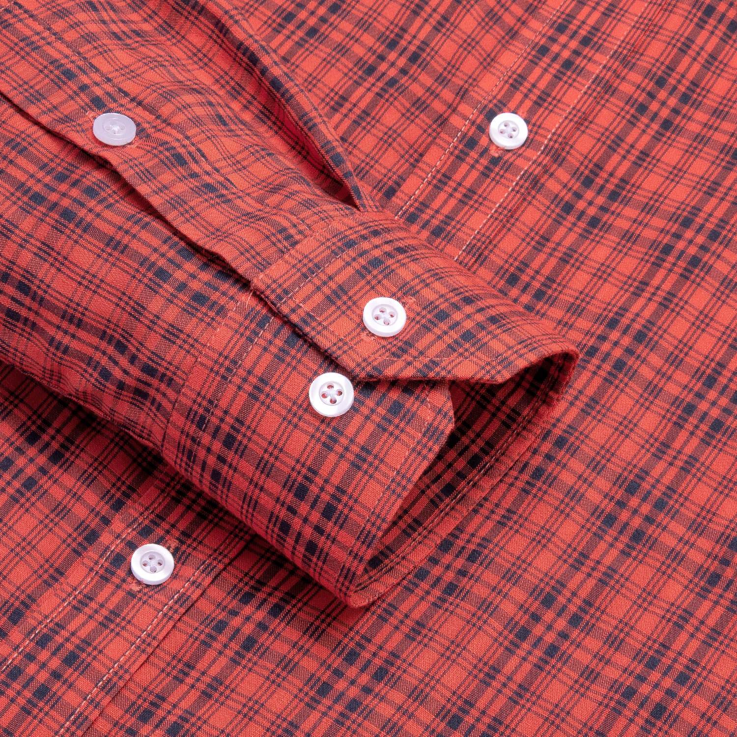 Hi-Tie Button Down Shirt Red Blue Plaid Silk Men's Shirt Classic