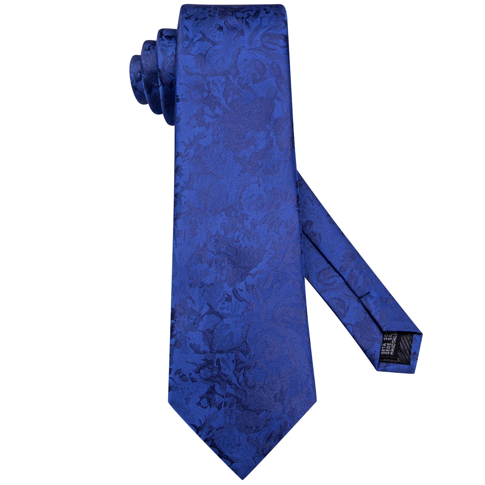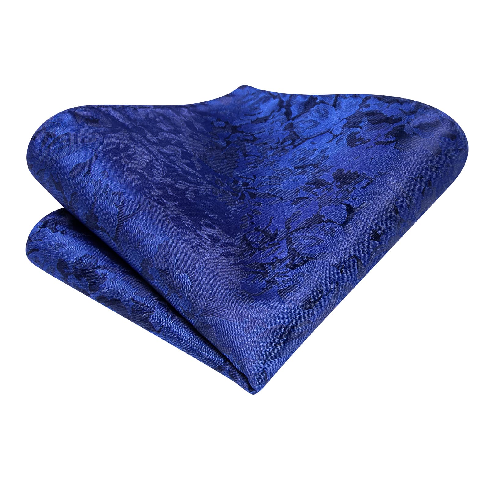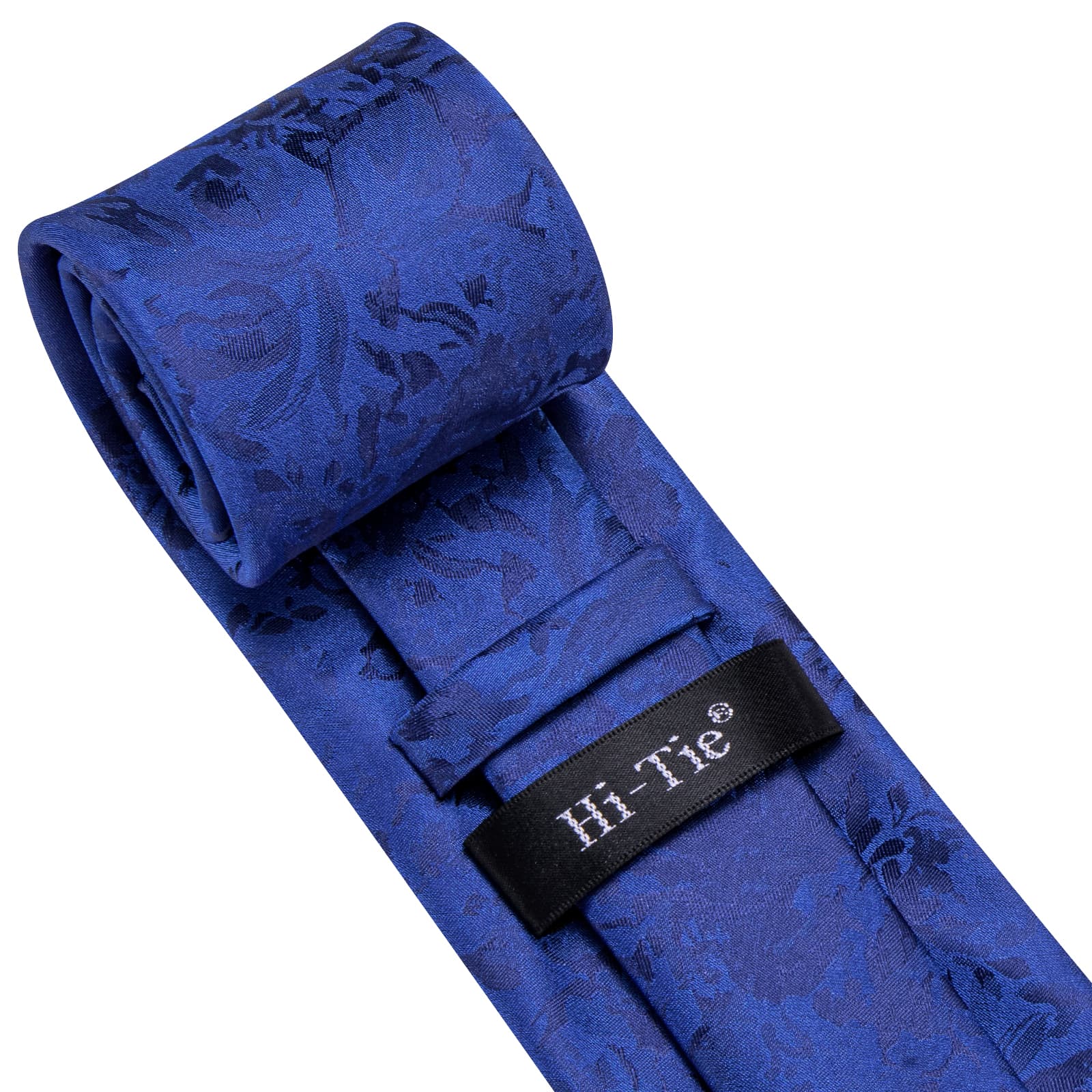 Hi-Tie Cerulean Blue Floral Silk Mens Tie Handkerchief Cufflinks Set