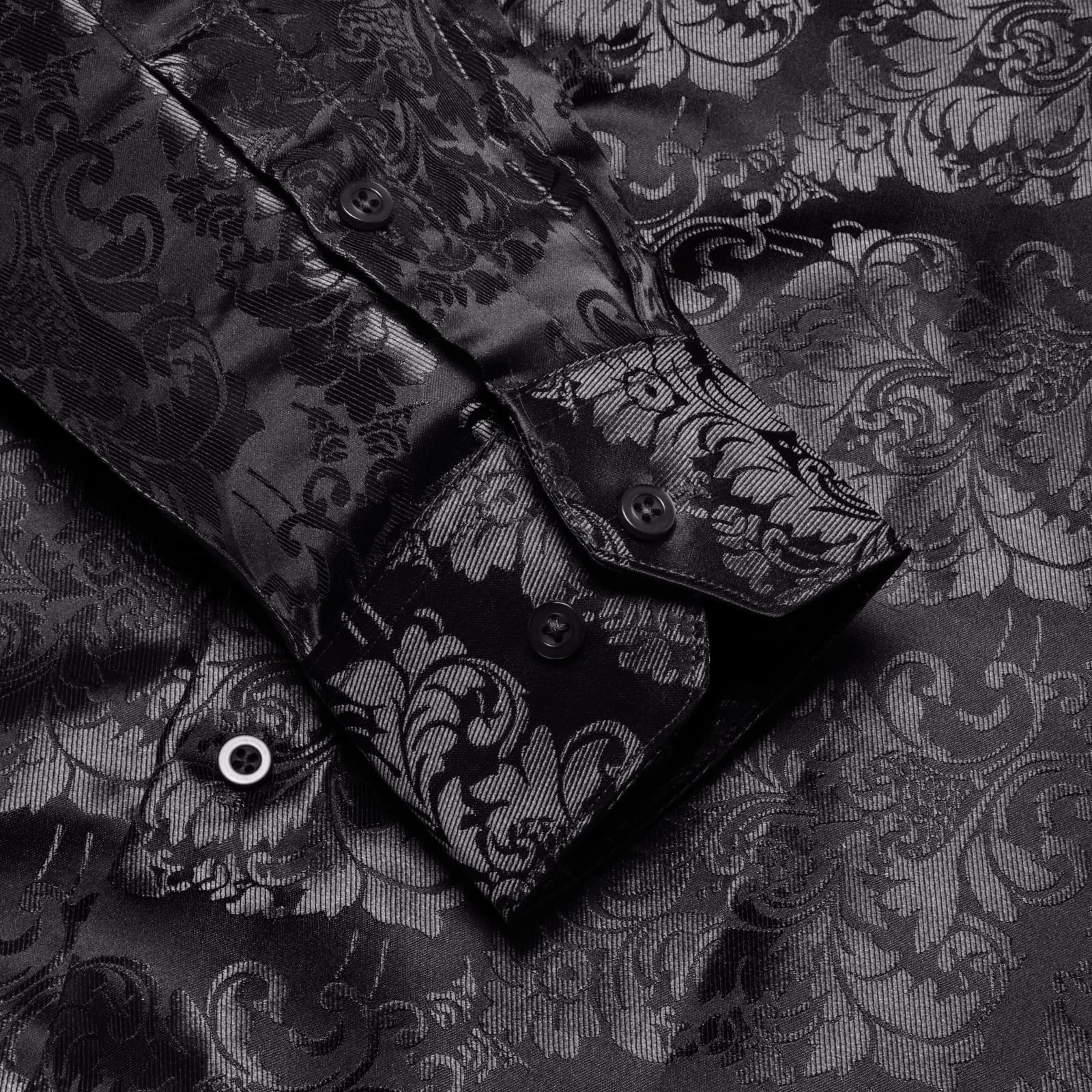 Hi-Tie Classic Black Floral Silk Button Up Long Sleeve Shirt for Men
