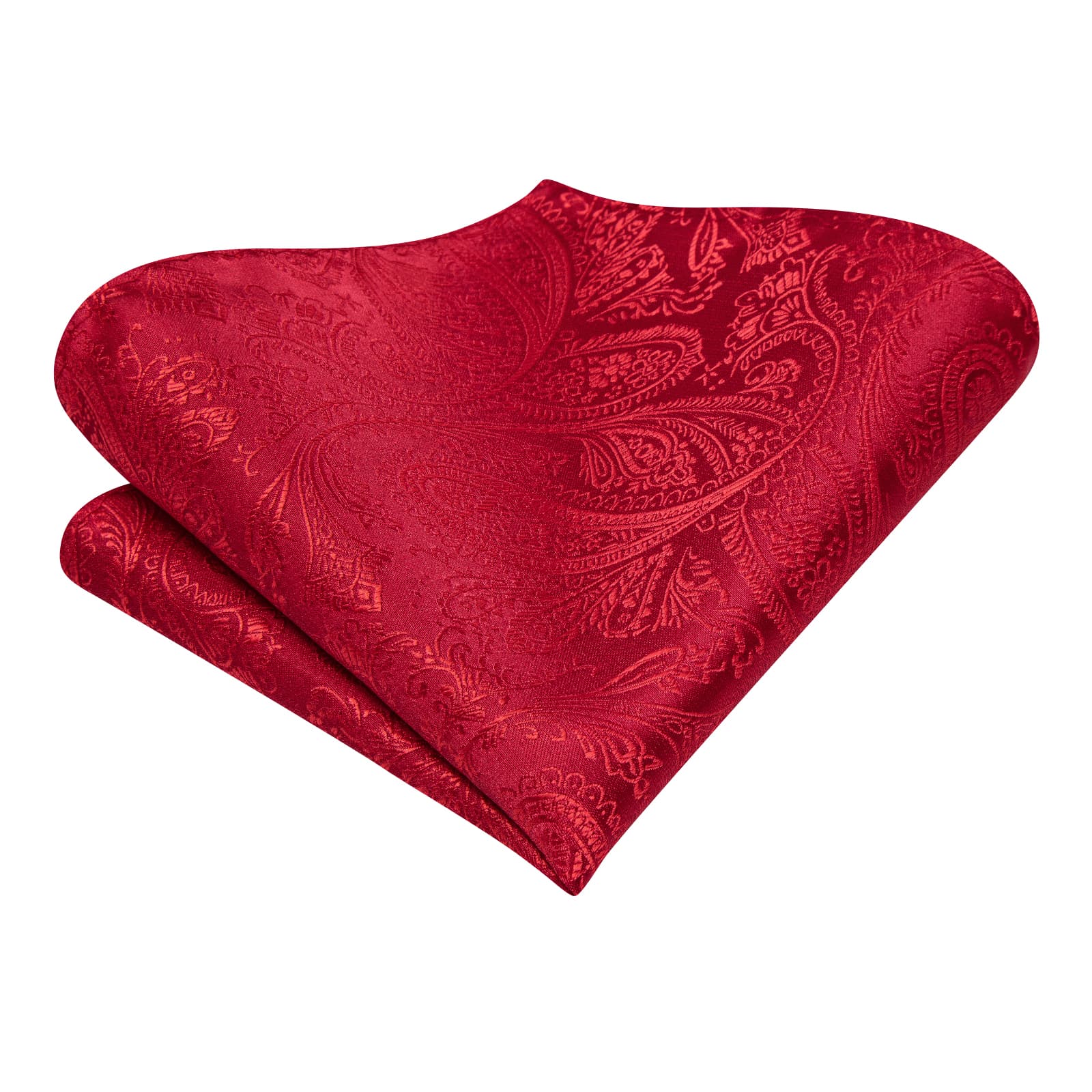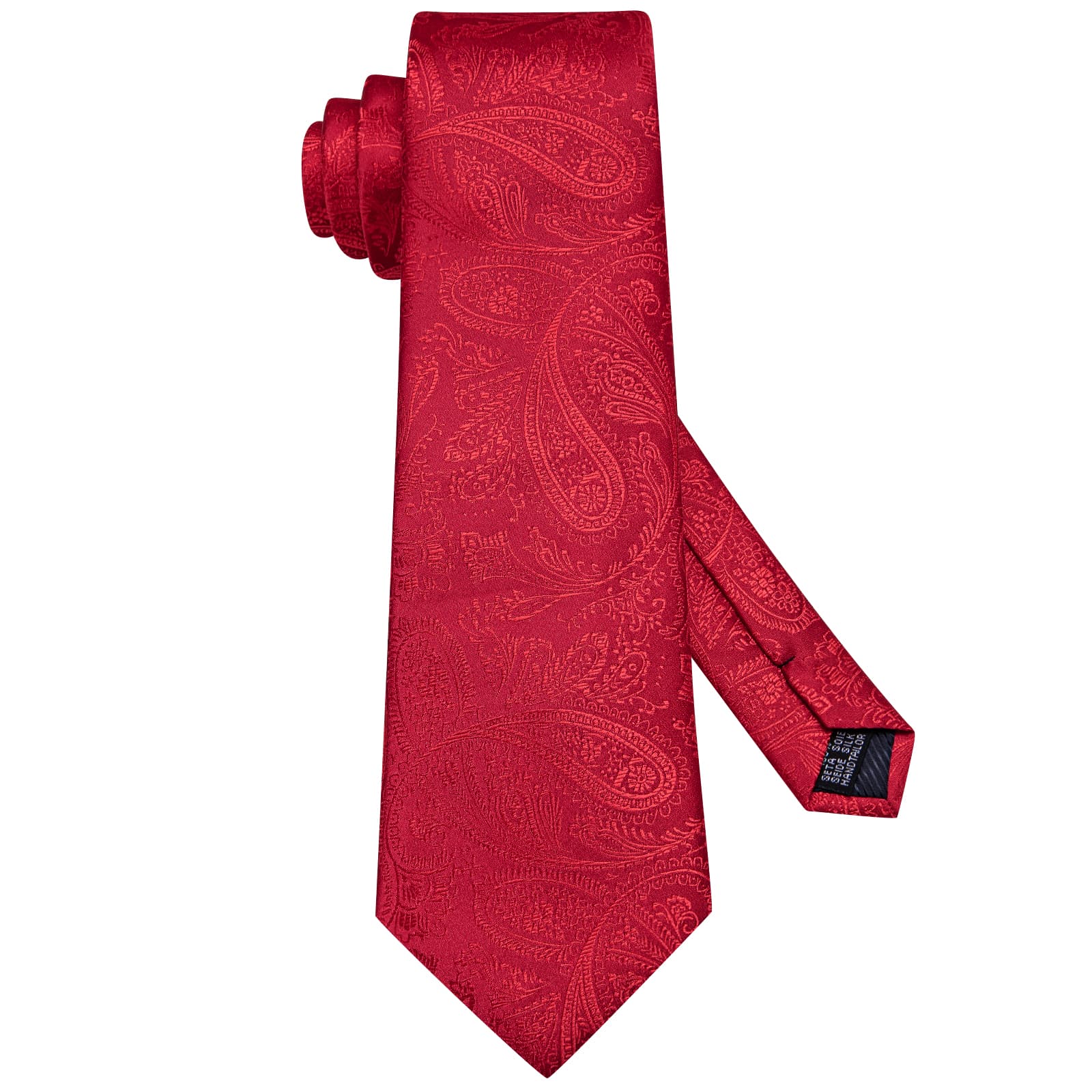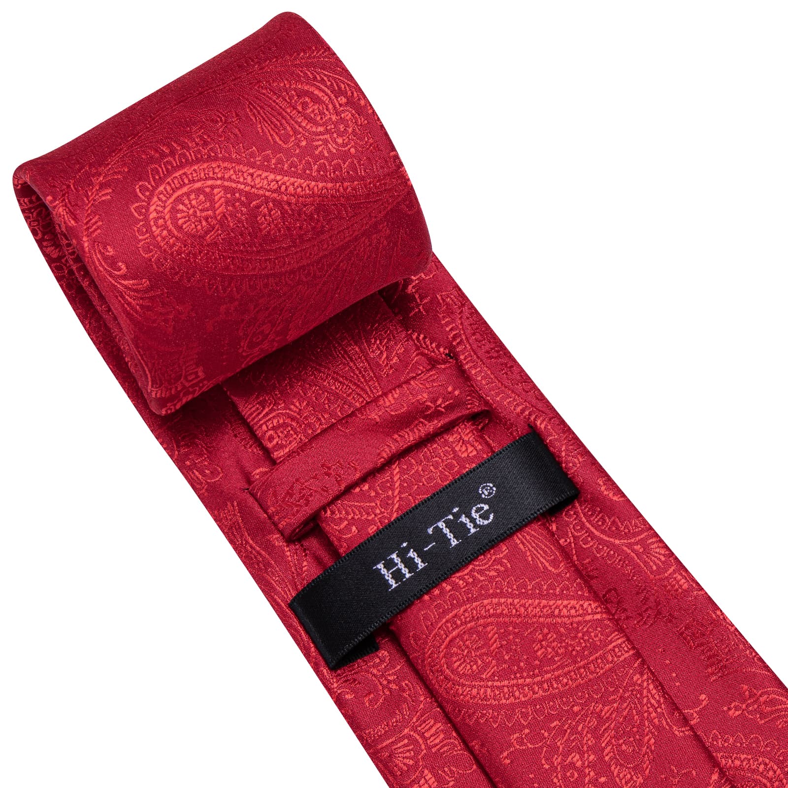 Hi-Tie Classic Red Paisley Silk Mens Tie Handkerchief Cufflinks Set