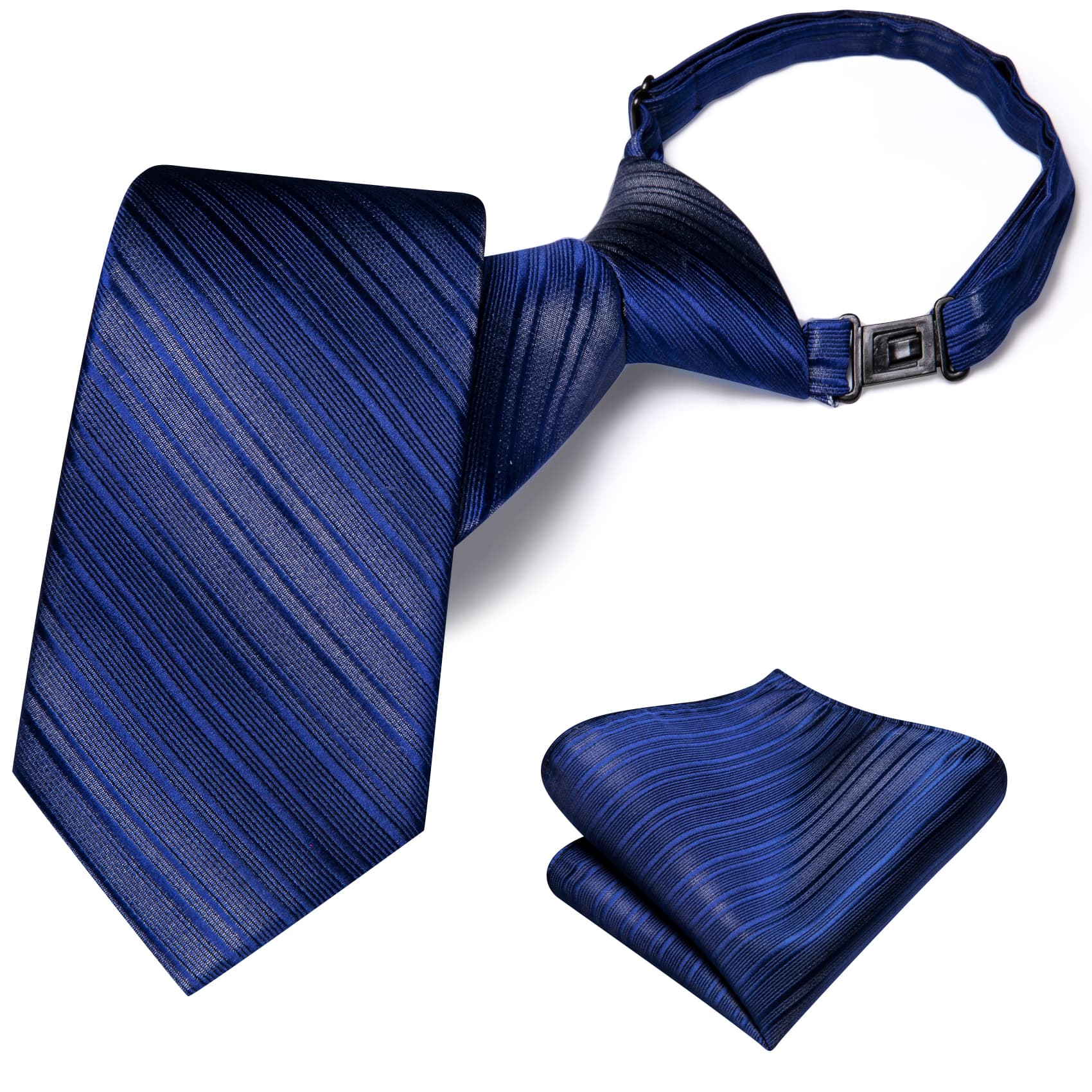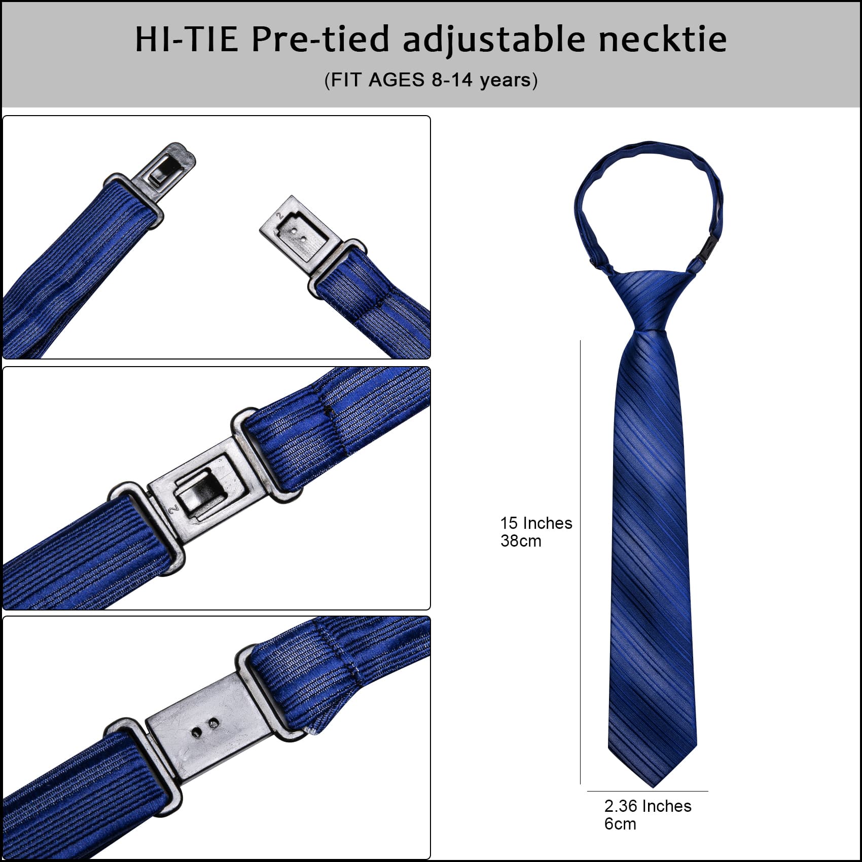 Hi-Tie Dark Slate Blue Boys Necktie Pre-tied Adjustable Tie HankySet