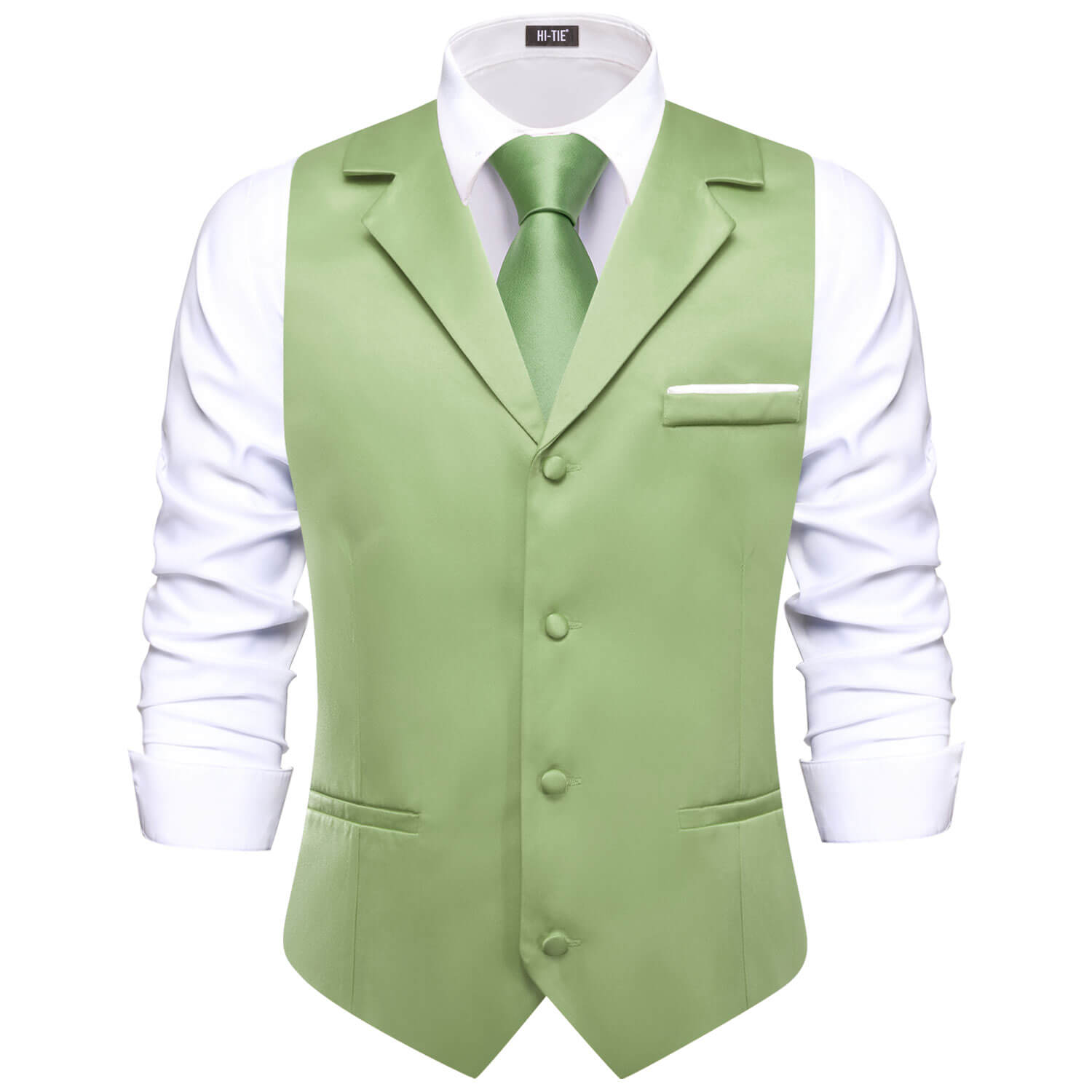 Hi-Tie DarkSeaGreen Waistcoat Solid Notch lapels Men's Vest