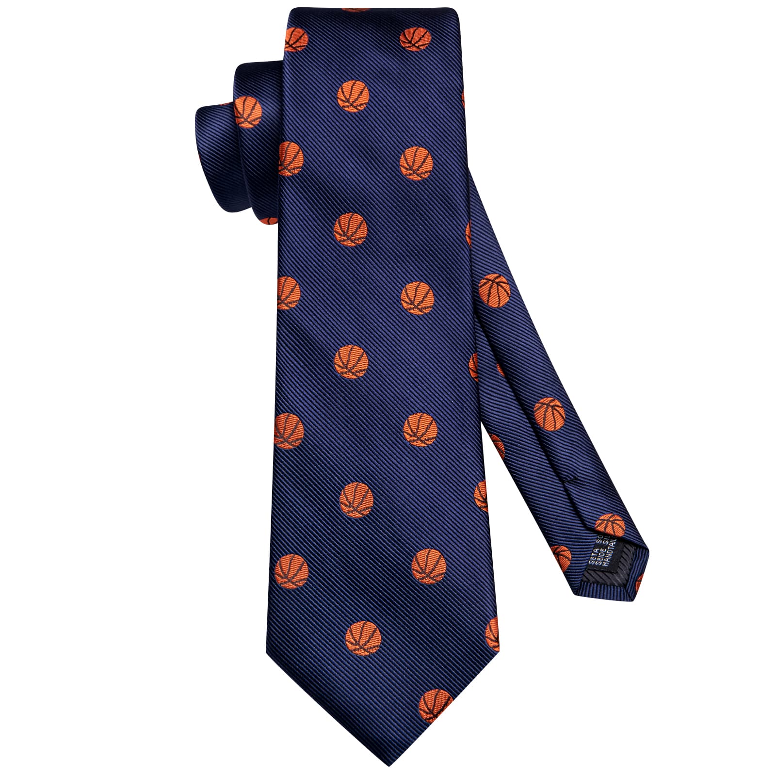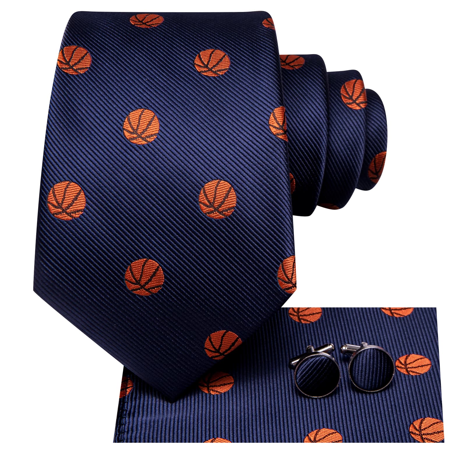 Hi-Tie Deep Blue Novelty Baseball Pattern Silk Mens Tie Handkerchief Cufflinks Set