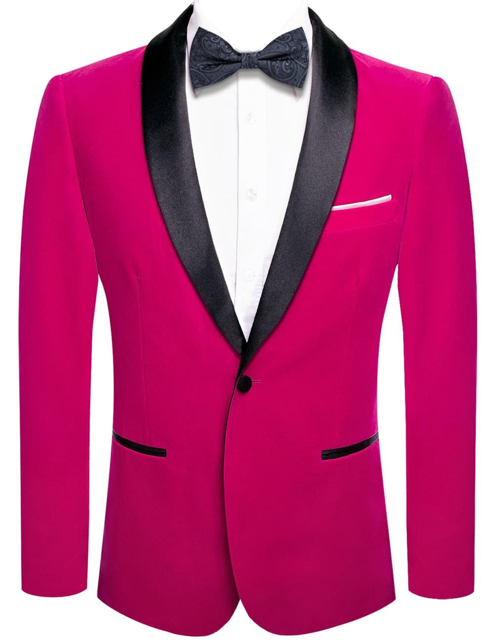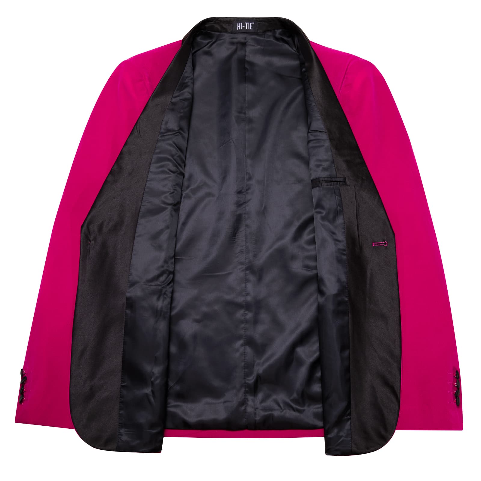 Hi-Tie Deep Pink Flannel Suit Black Shawl Lapel Men's Wedding Blazer