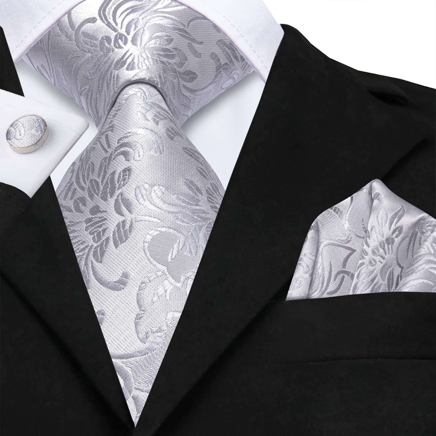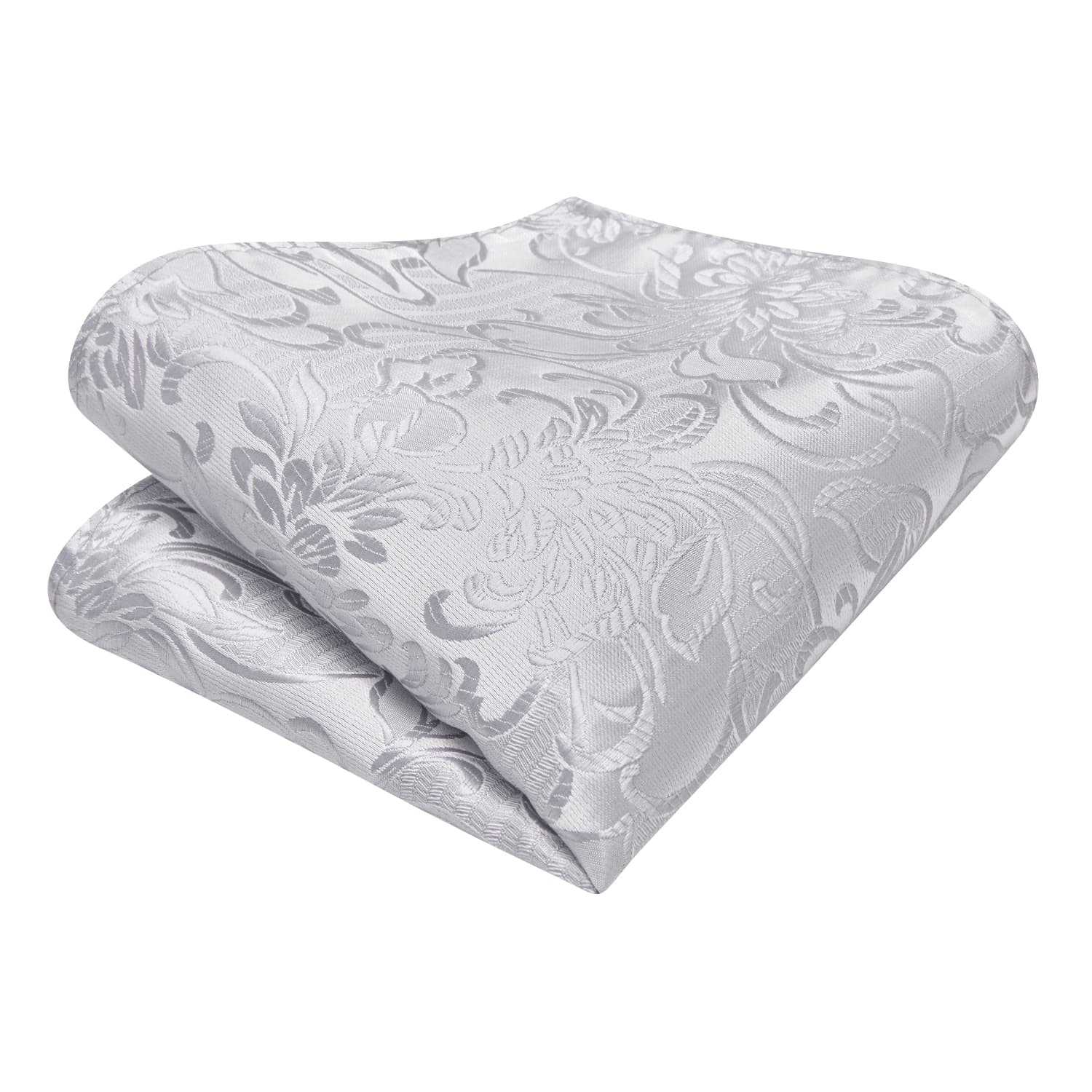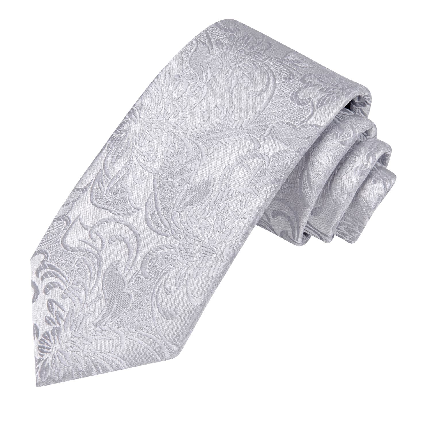 Hi-Tie Floral Silver Grey Tie Jacquard Silk Necktie Set for Men