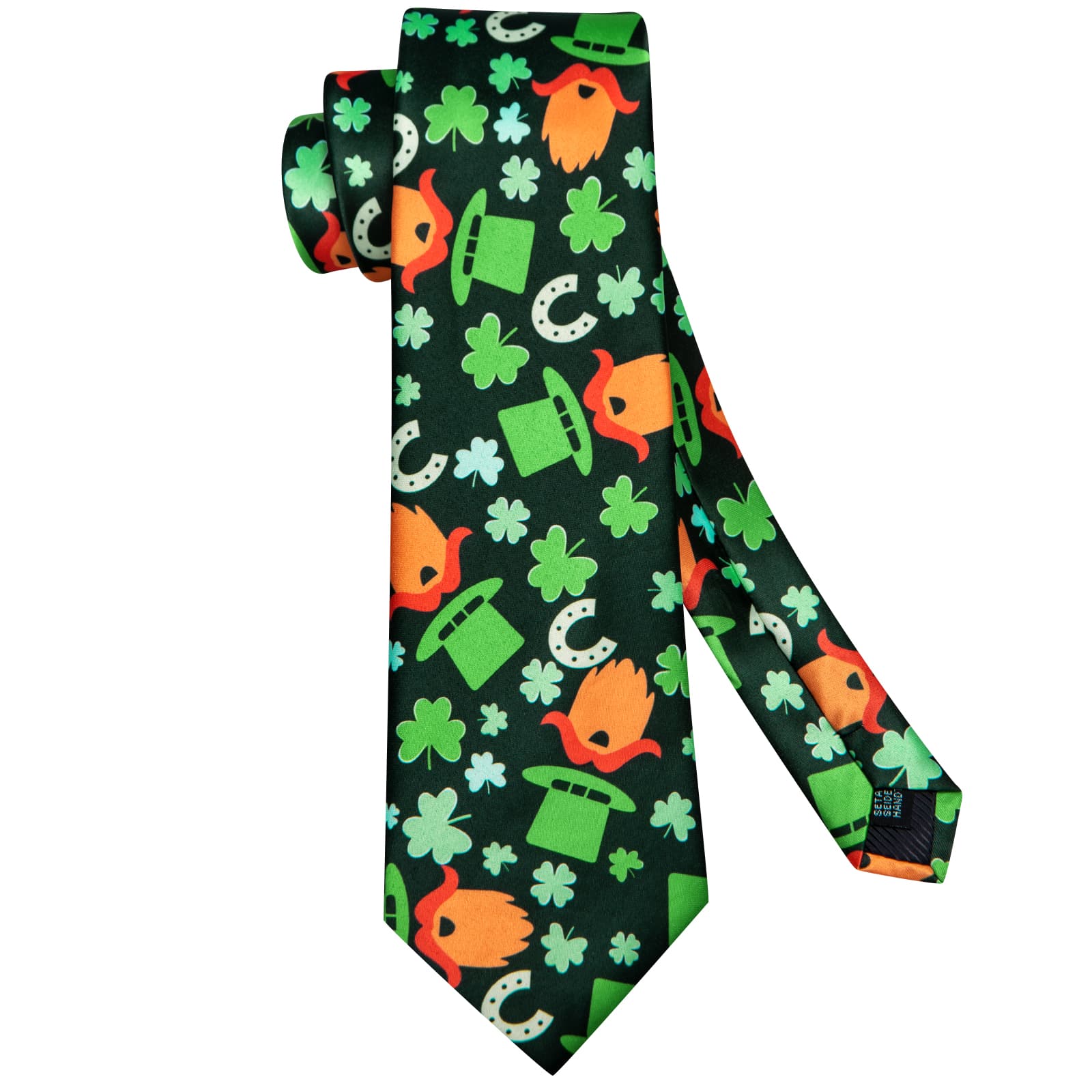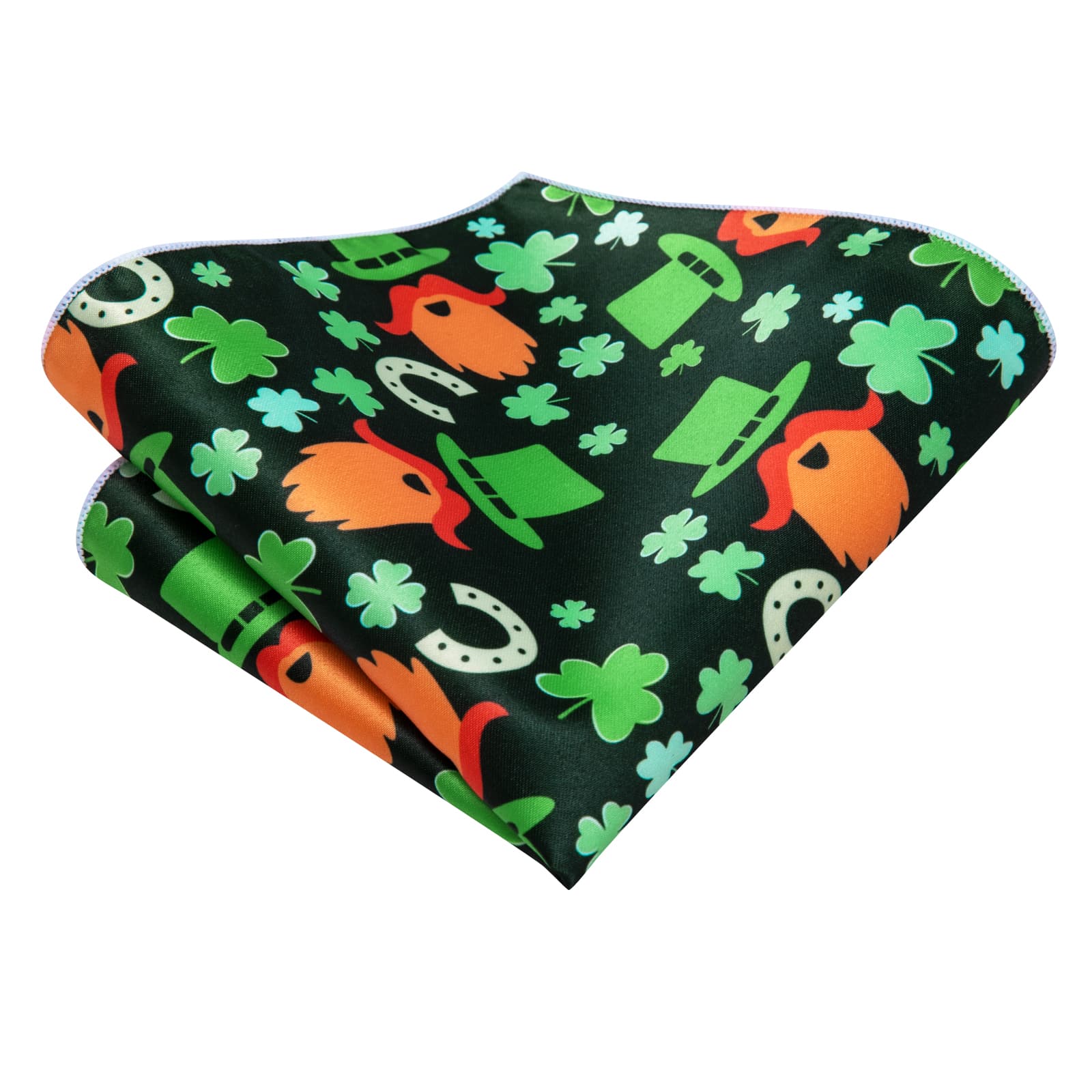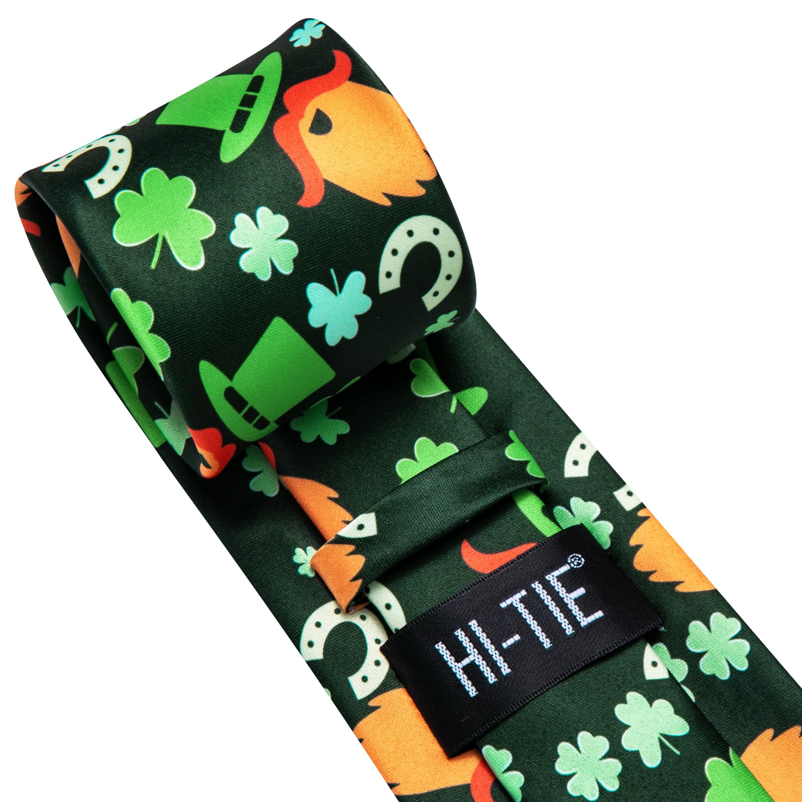 Hi-Tie Green Fun Novelty Green Hat Pattern Silk Mens Tie Handkerchief Cufflinks Set