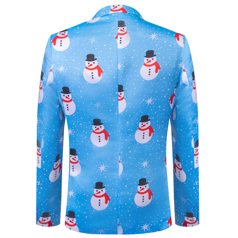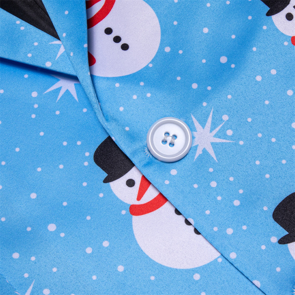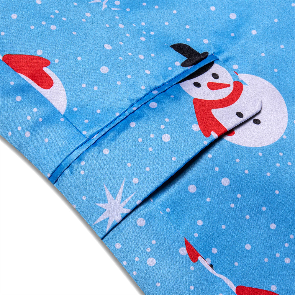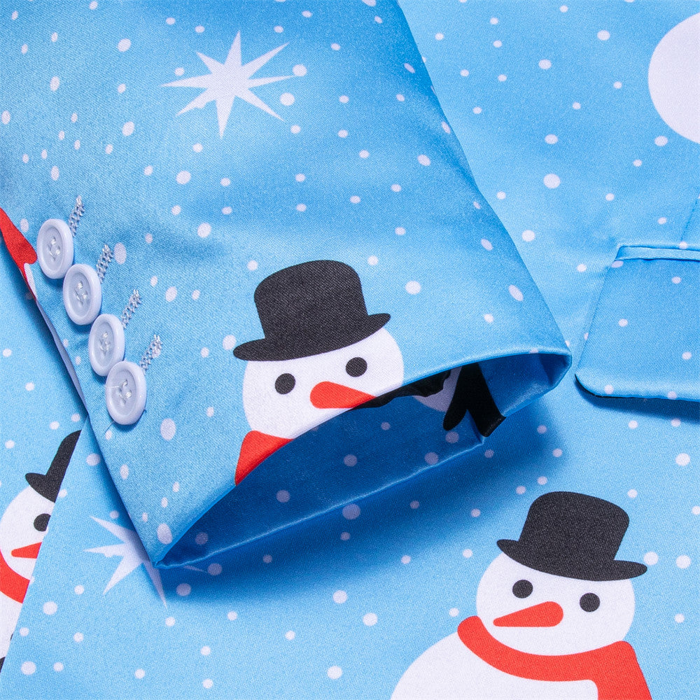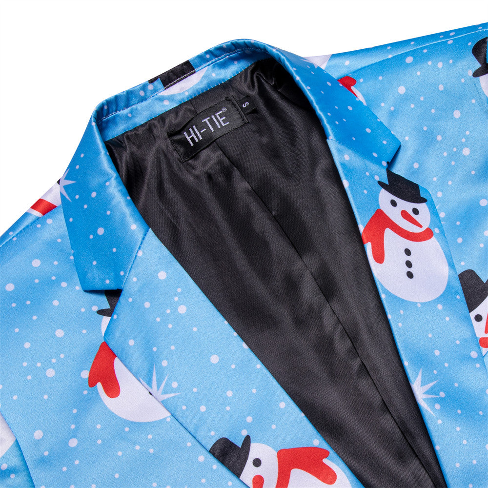 Hi-Tie Maya Blue Christmas Snowman Designer Silk Suit for Men