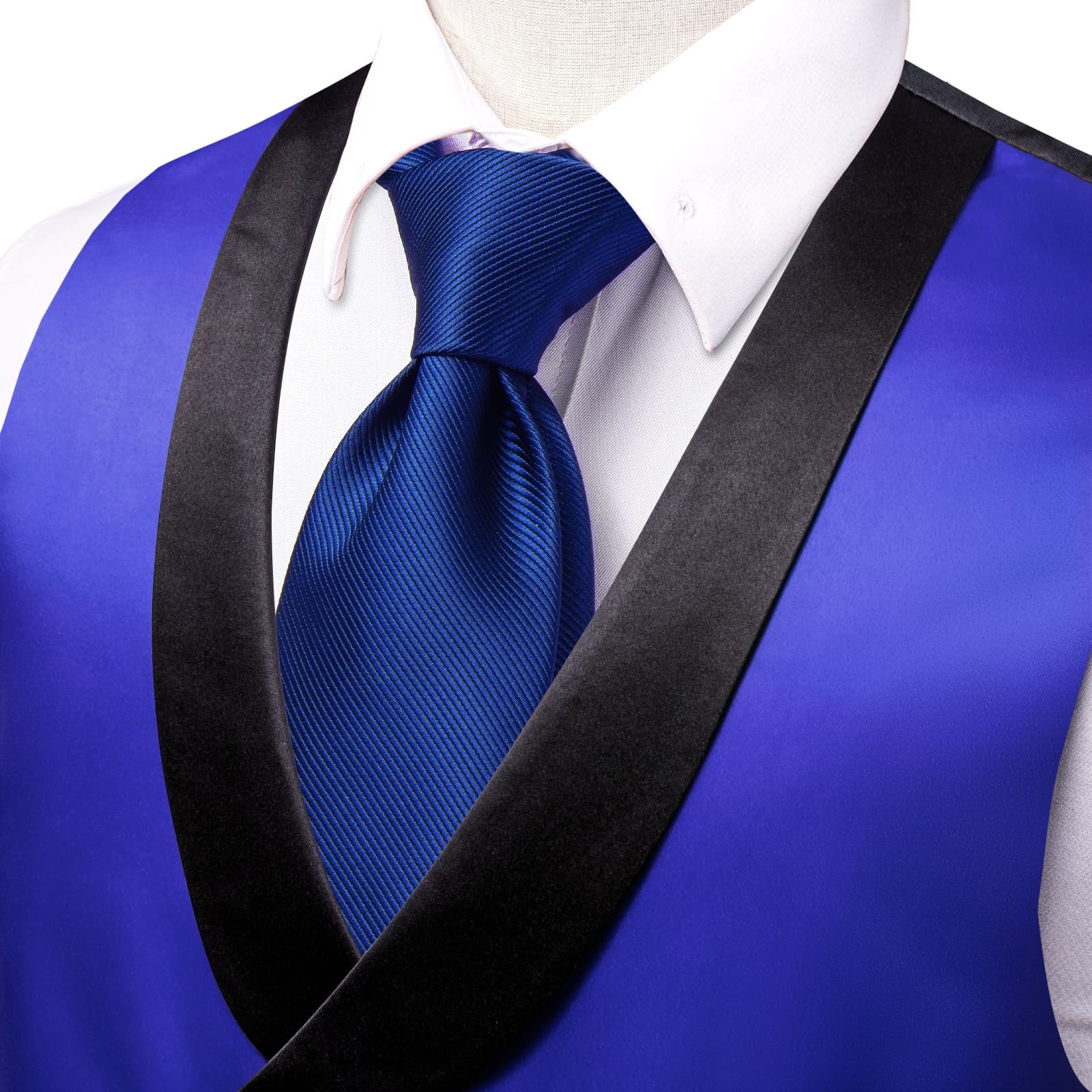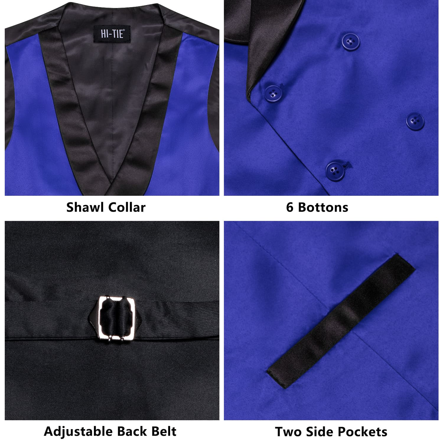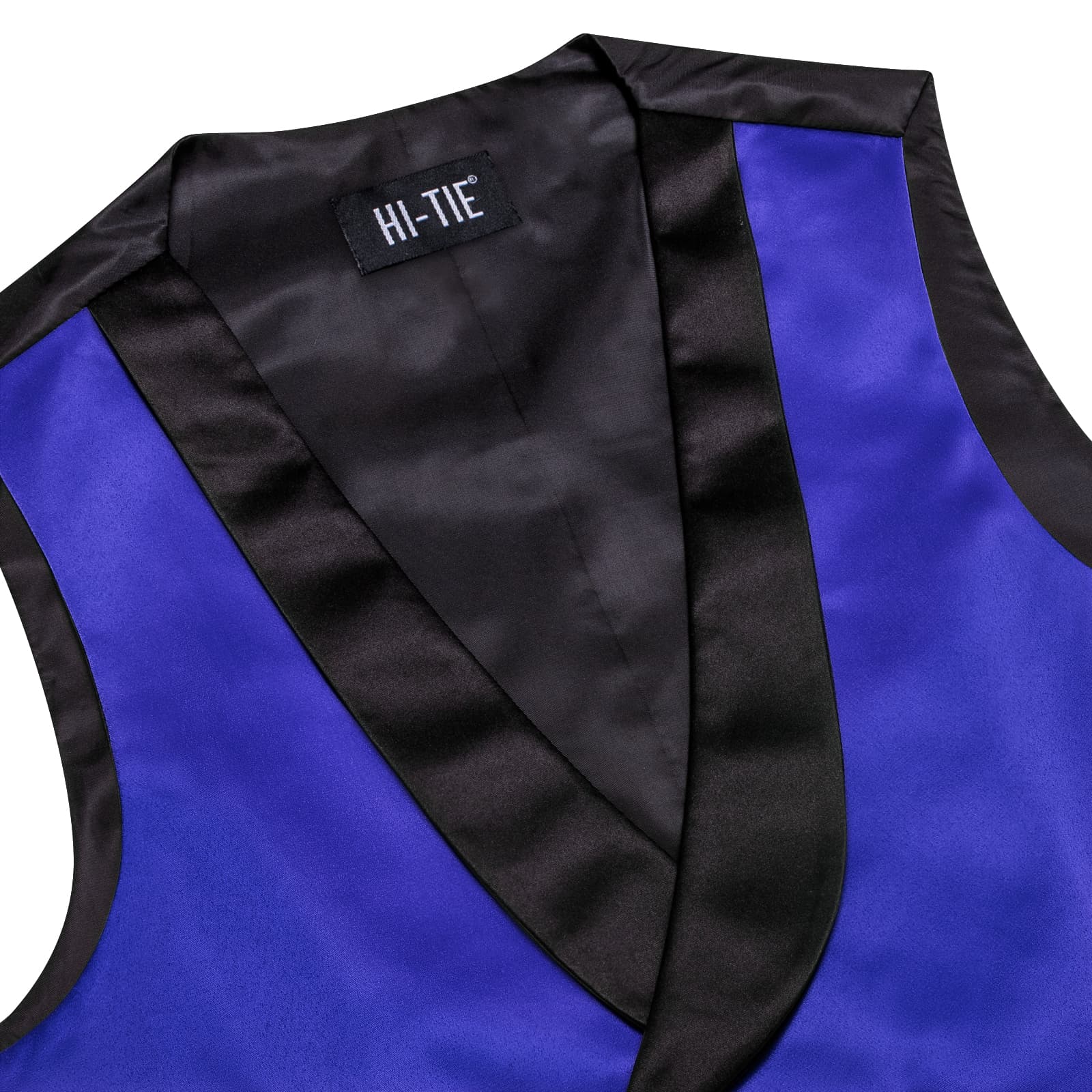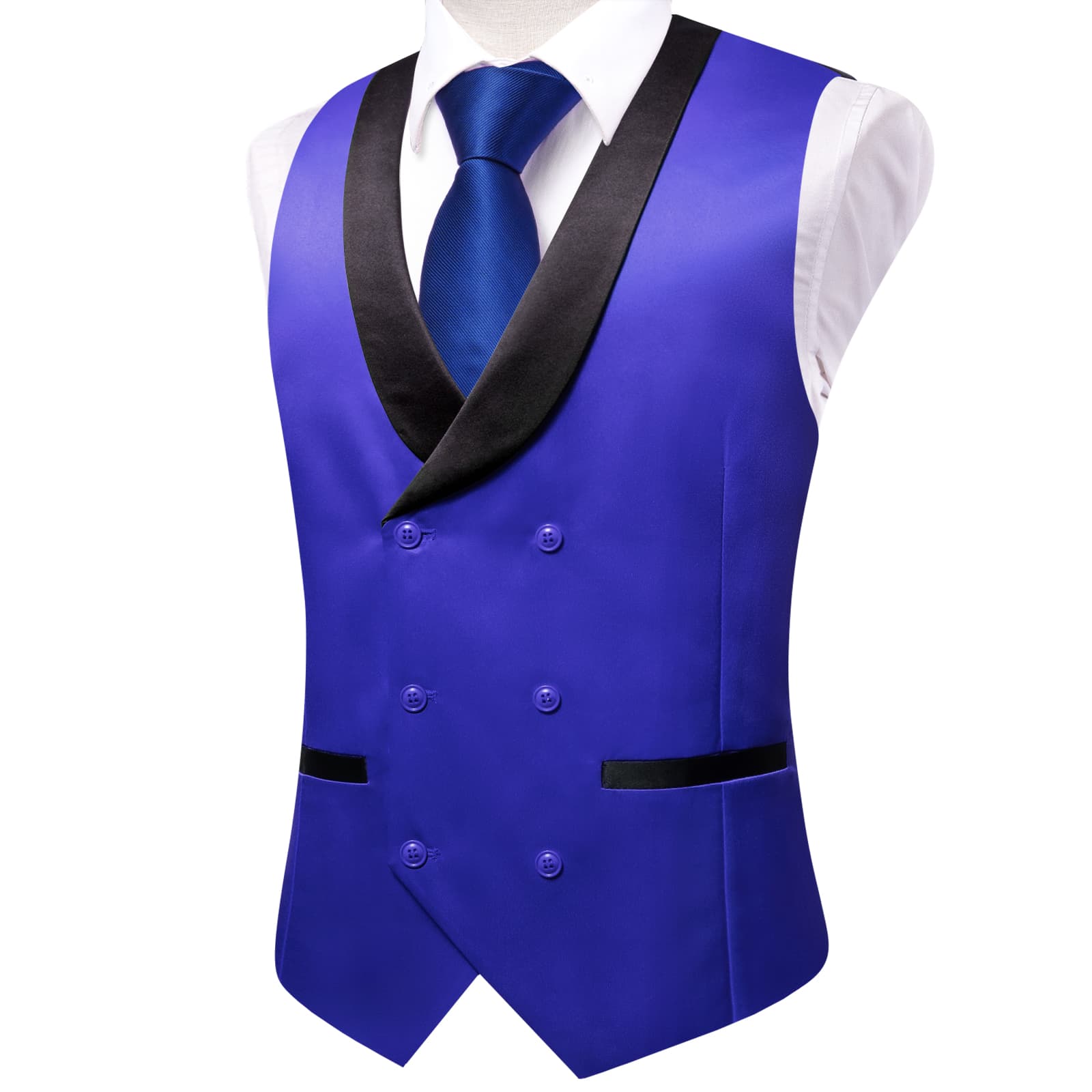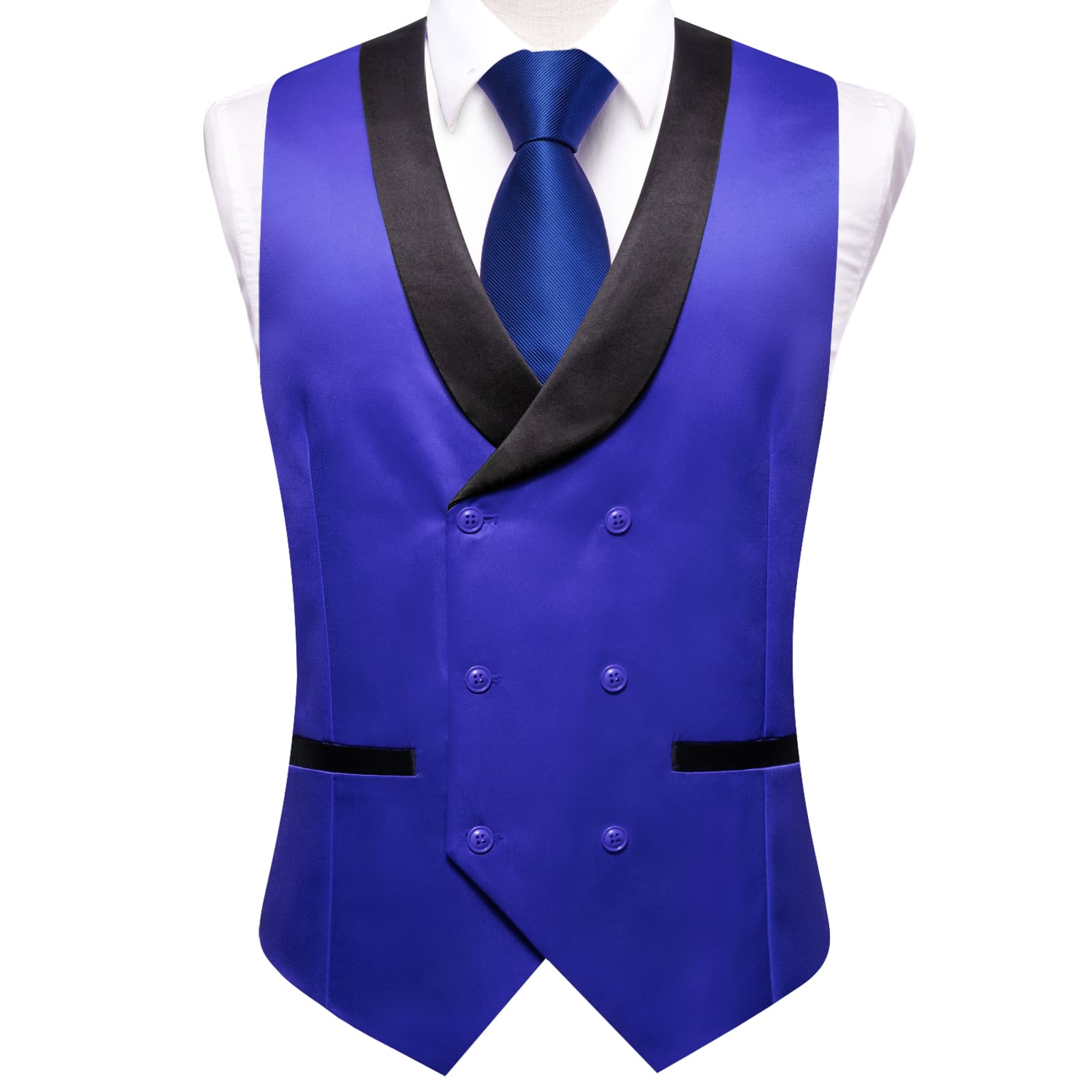 Hi-Tie Men Vest Klein Blue Double Breasted Black Shawl Lapel Waistcoat