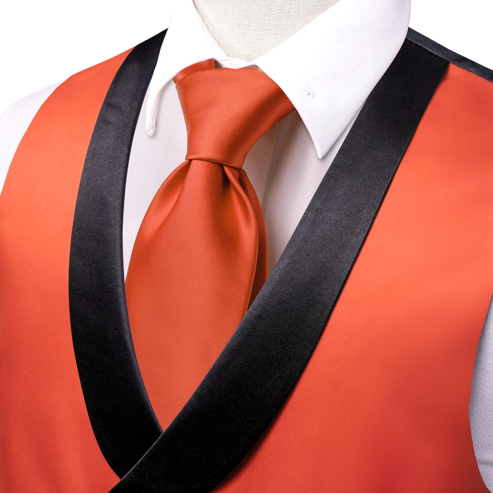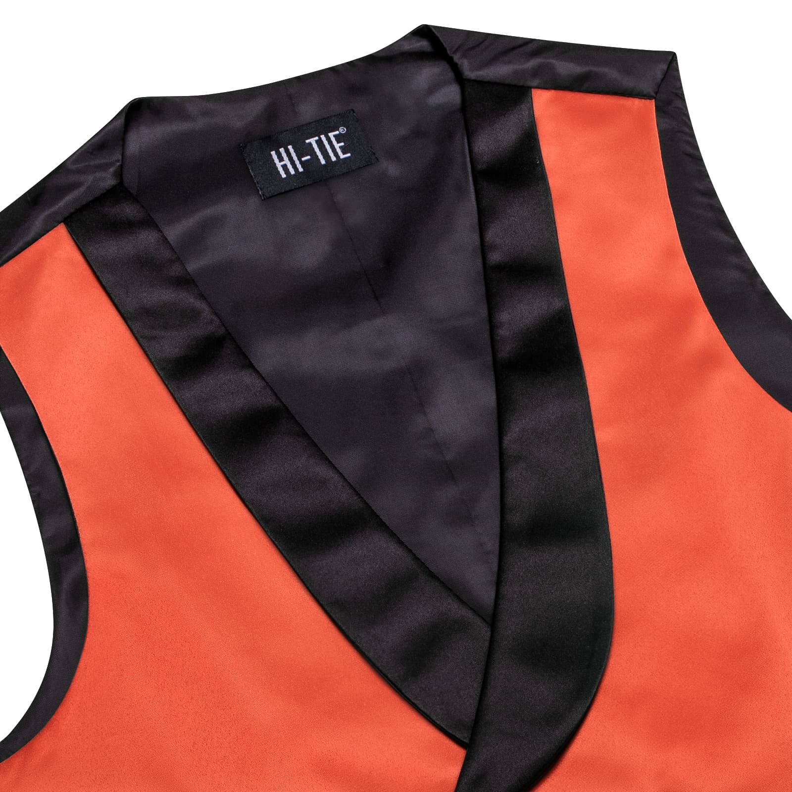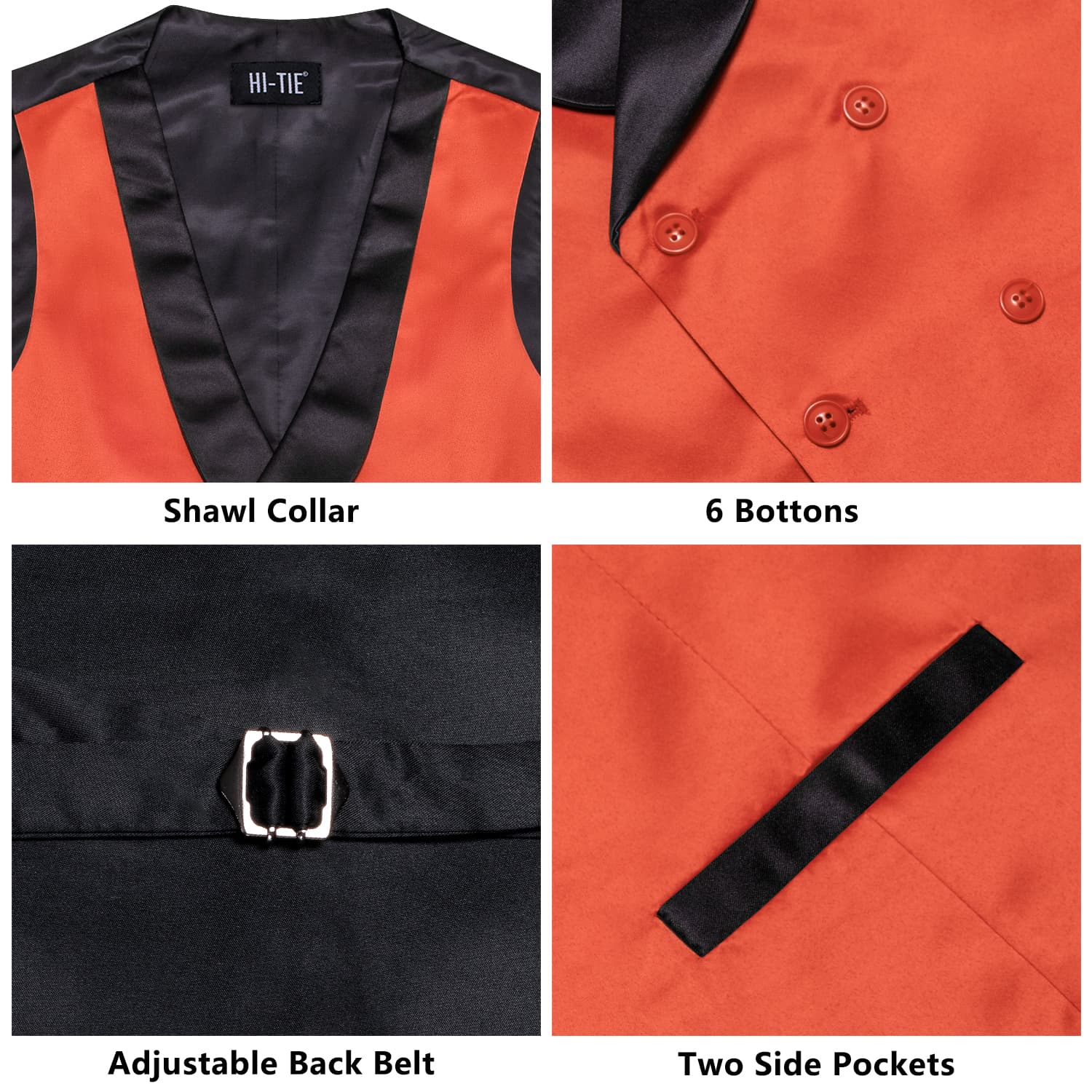 Hi-Tie Men Vest Red Orange Double Breasted Black Shawl Lapel Waistcoat