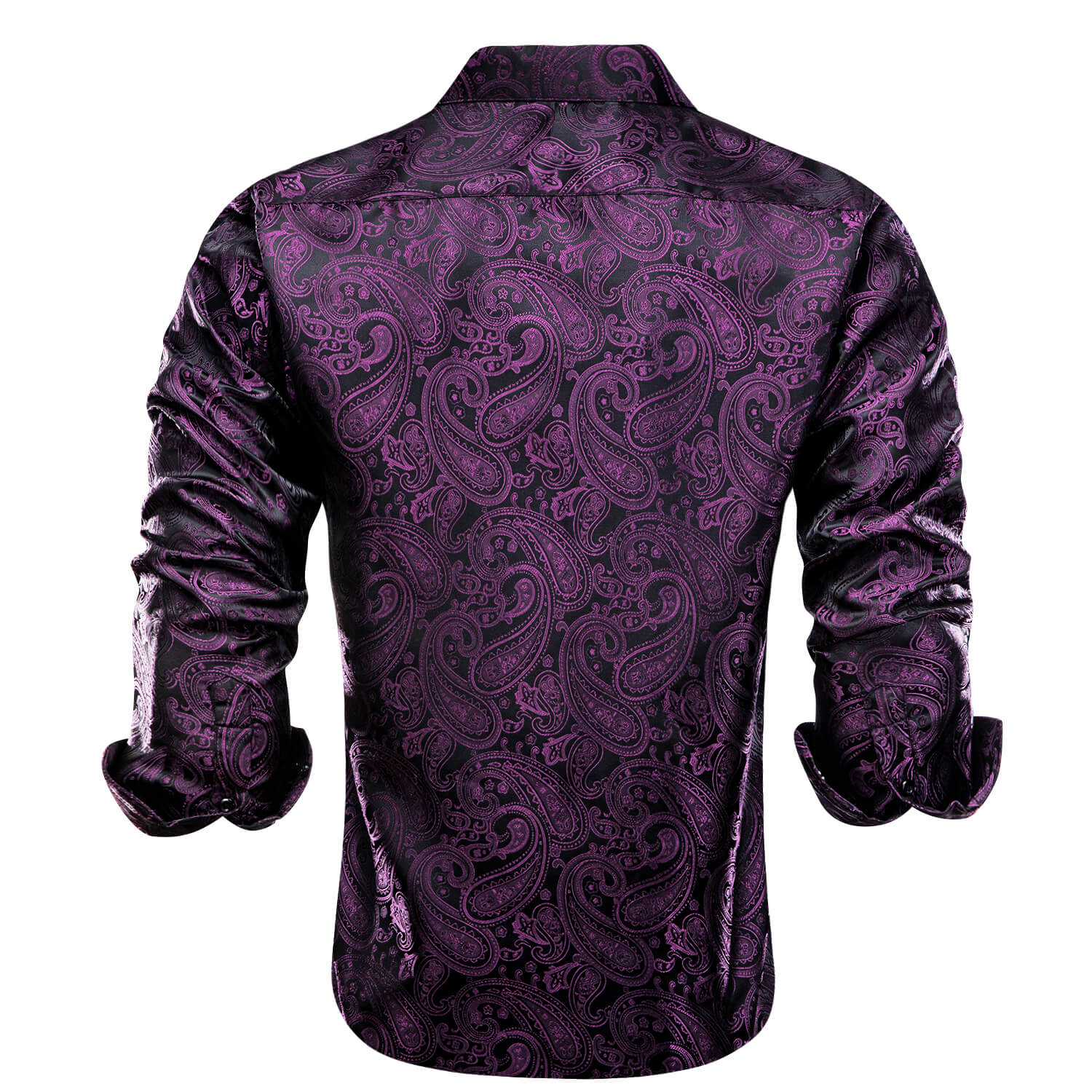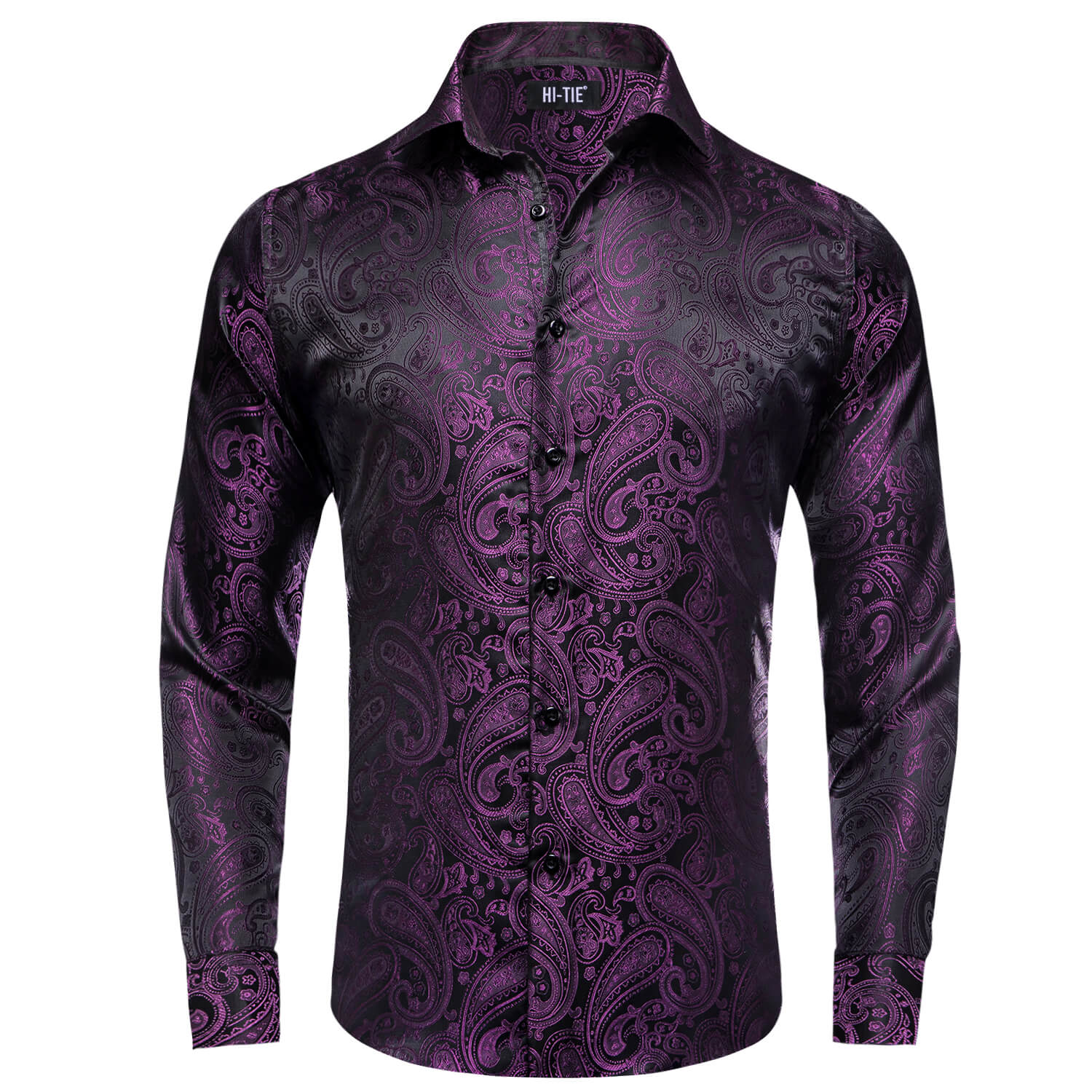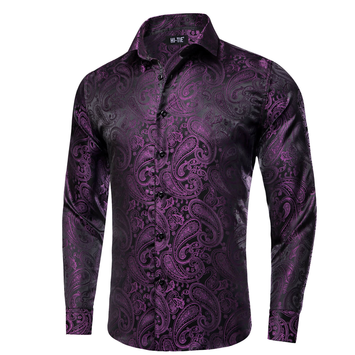 Hi-Tie Men's Shirt Dark Purple Jacquard Paisley Silk Long Sleeve Shirt