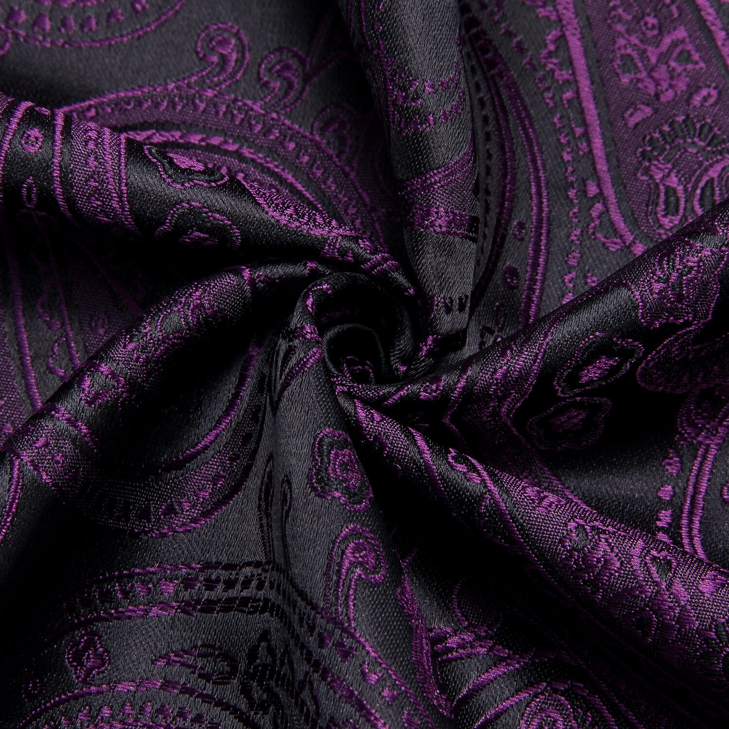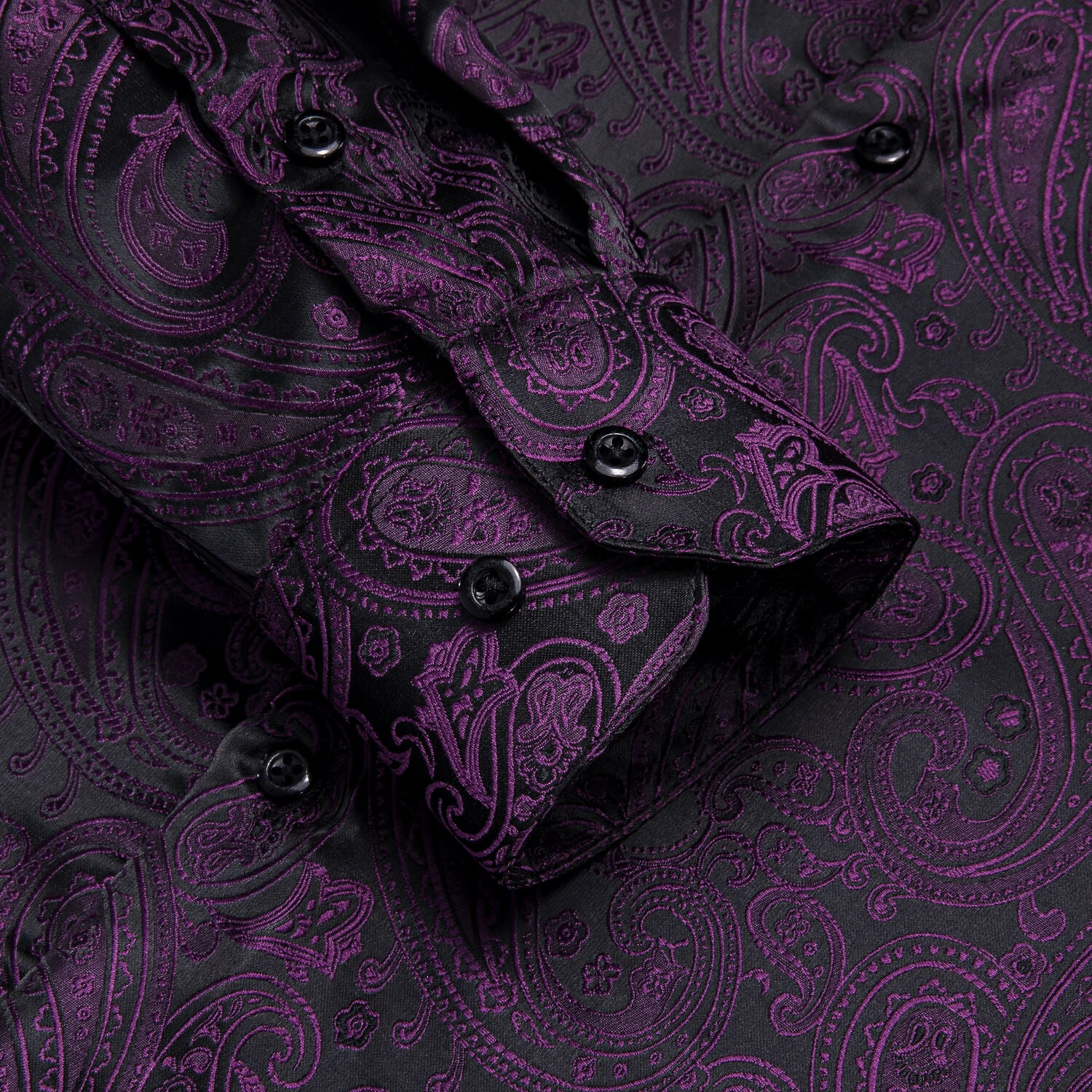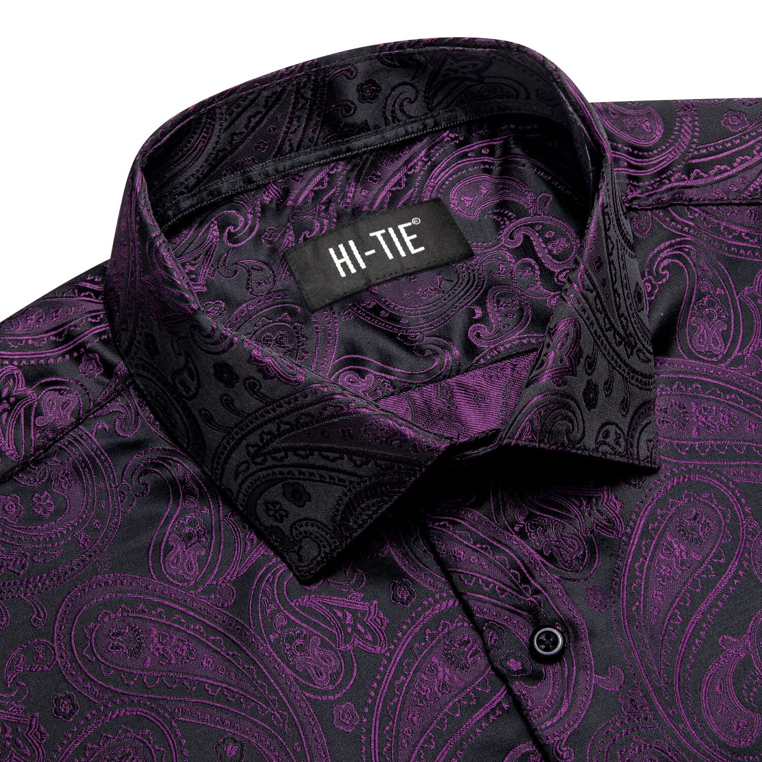 Hi-Tie Men's Shirt Dark Purple Jacquard Paisley Silk Long Sleeve Shirt
