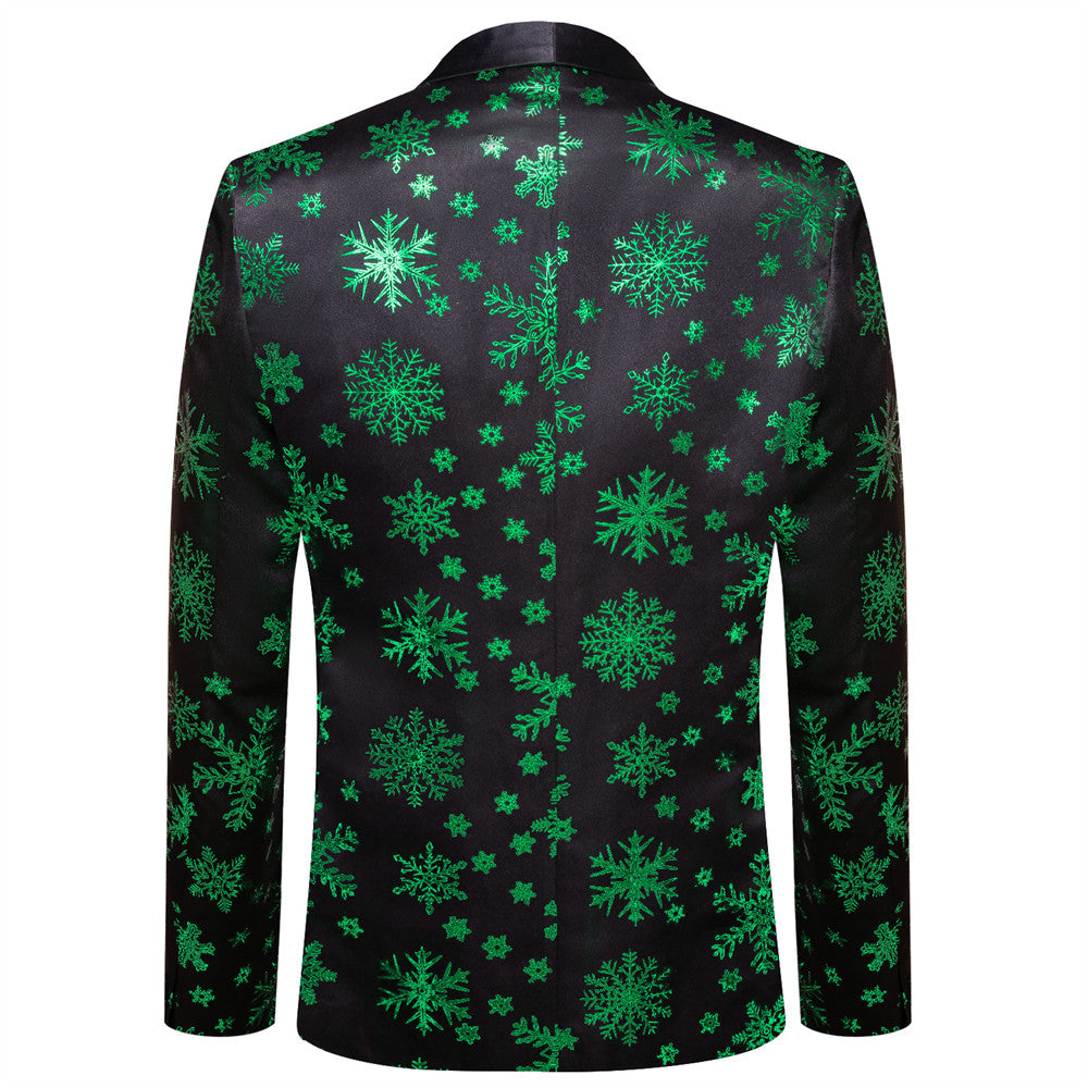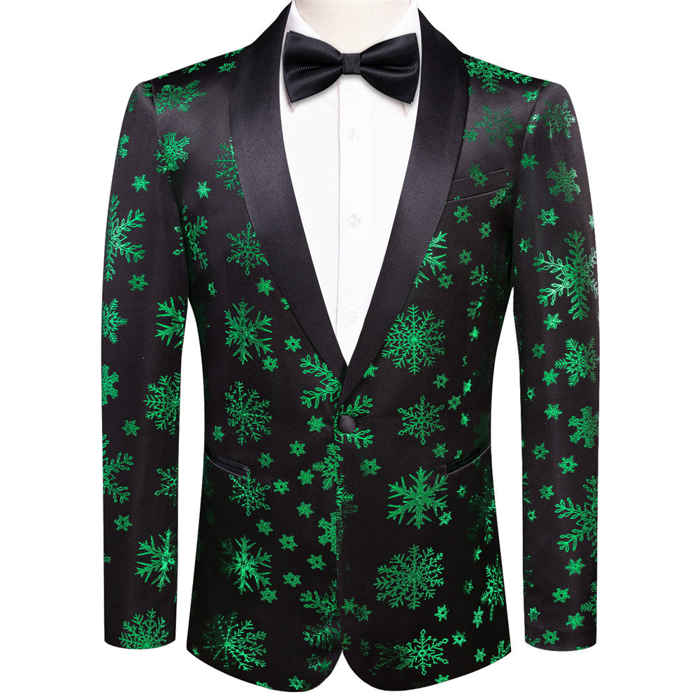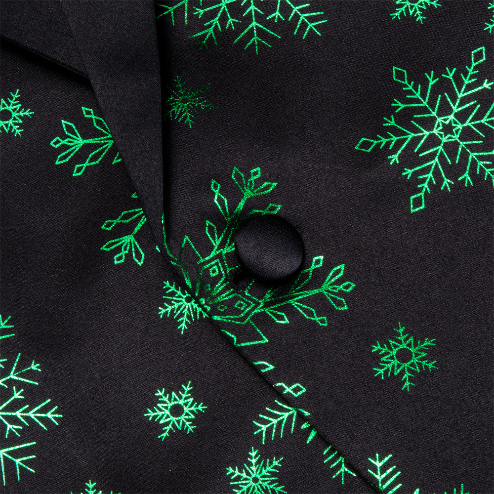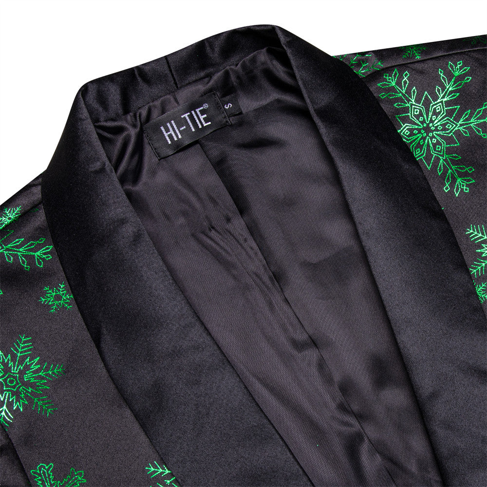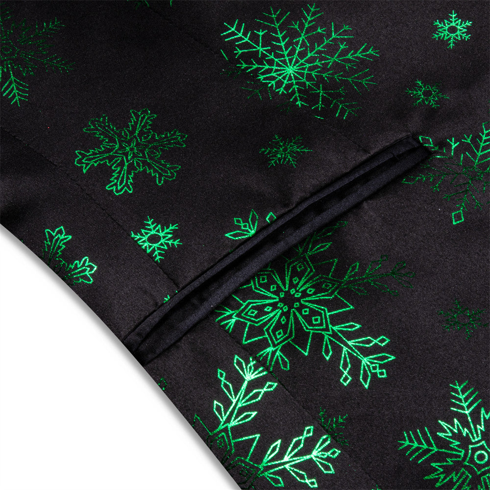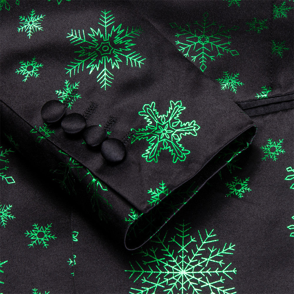 Hi-Tie Mens Silk Suit Black Green Snow Christmas Festival Suit for Men