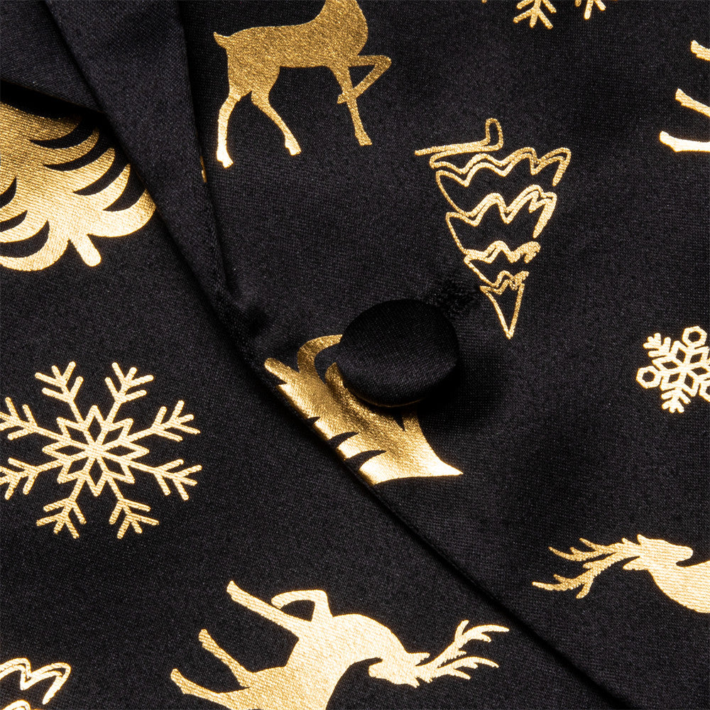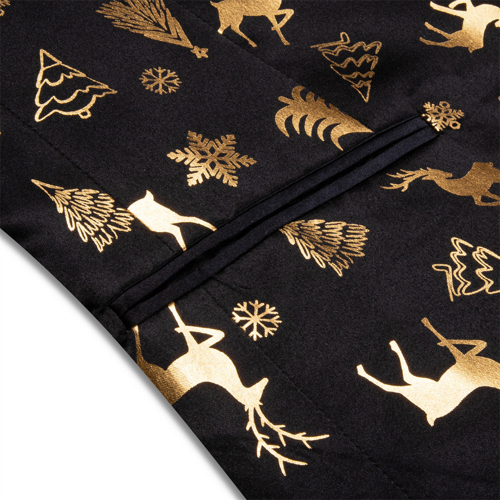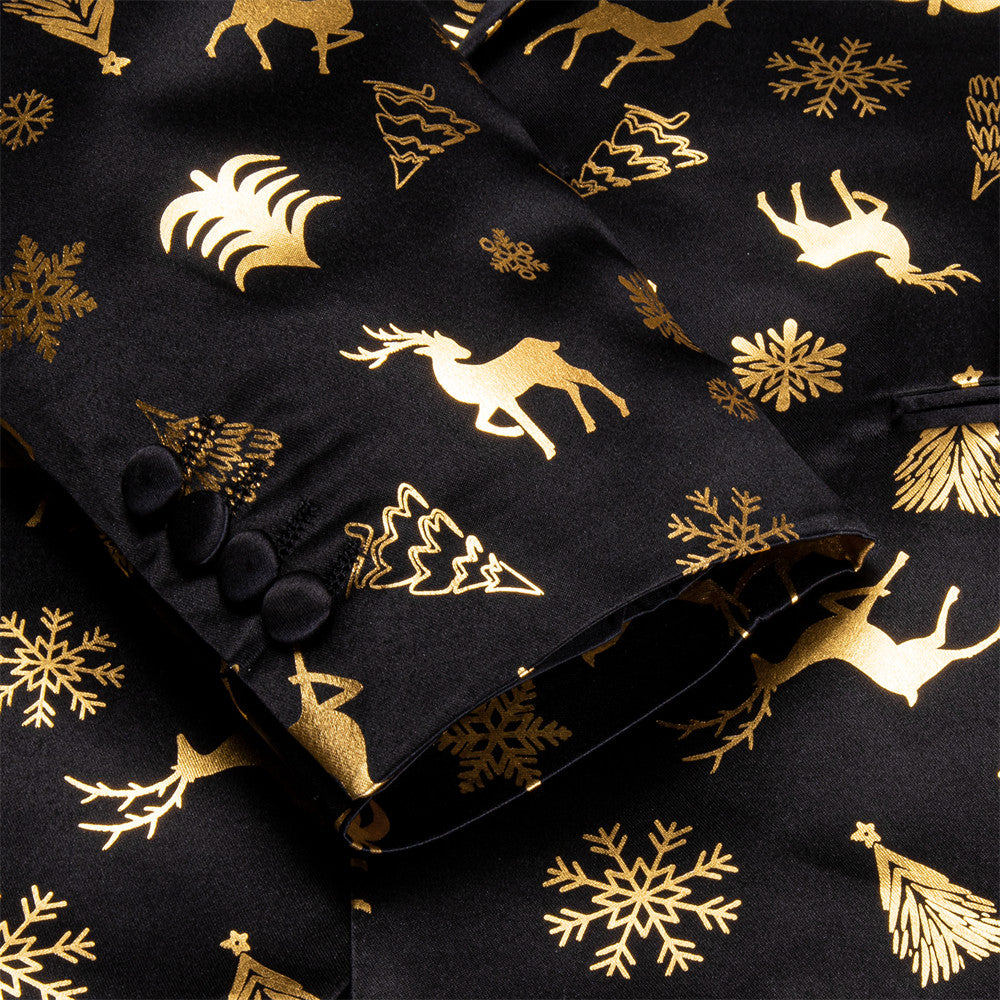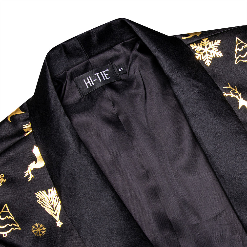 Hi-Tie Mens Silk Suit Black Gold Christmas Snow Tree Festival Suit for Men