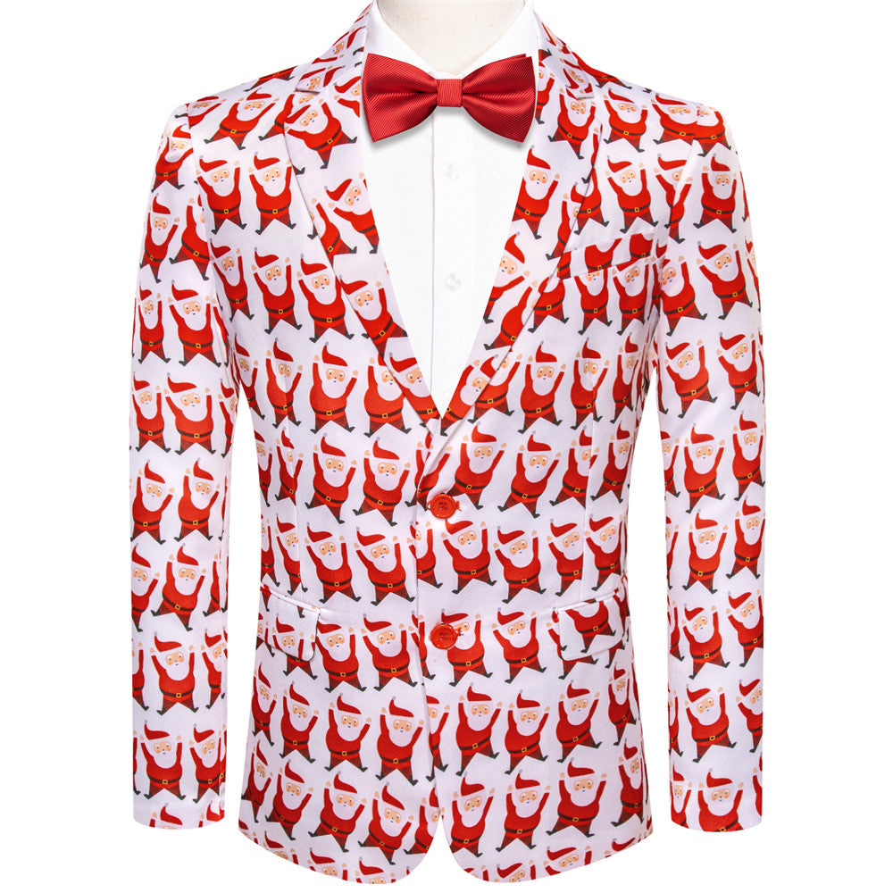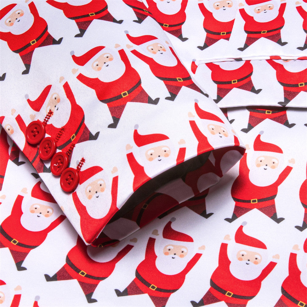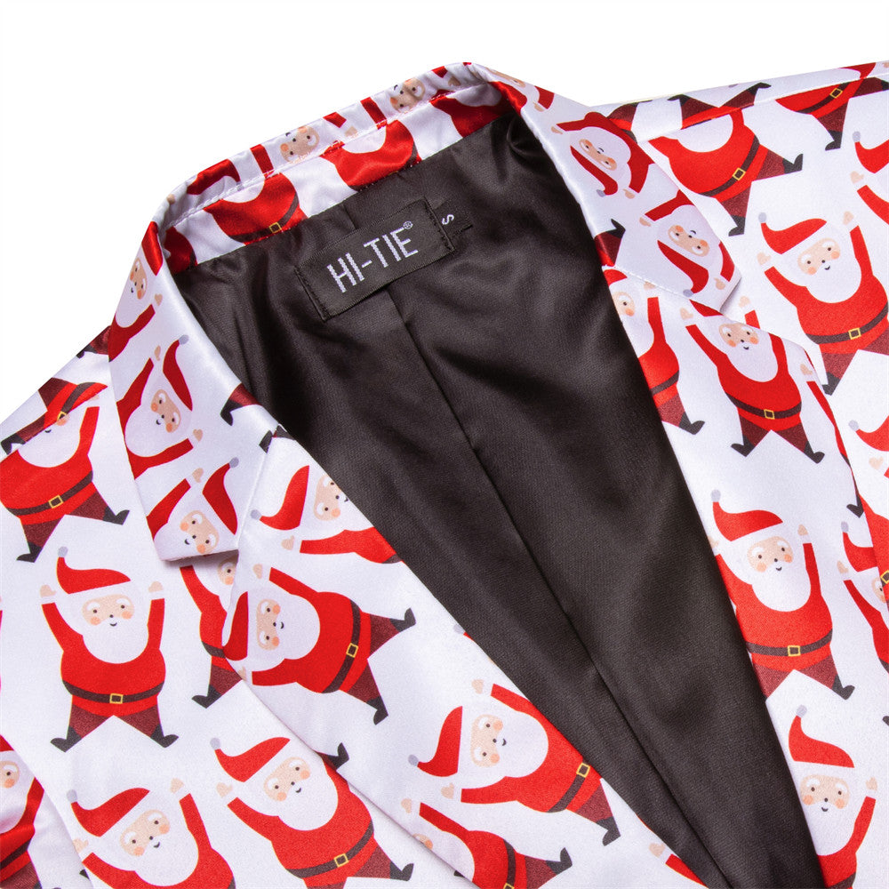 Hi-Tie Mens Silk Suit Red Santa Christmas Festival Suit for Men
