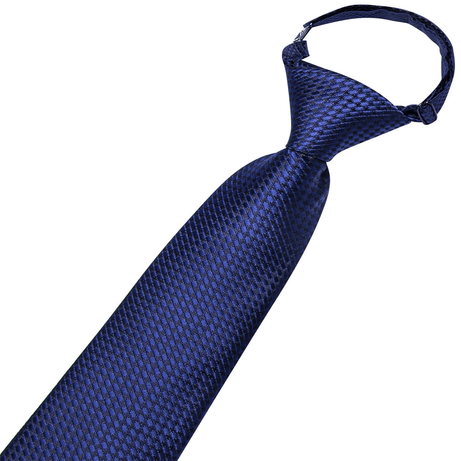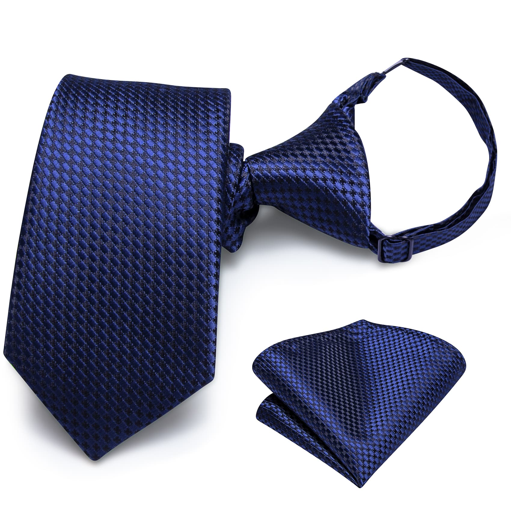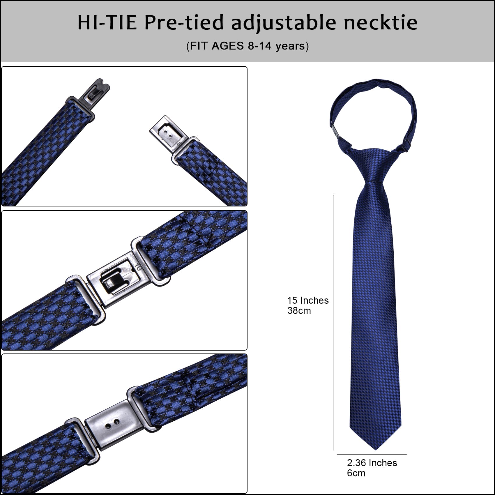 Hi-Tie Navy Blue Plaid Boys Pre-tied Adjustable Tie Pocket Square