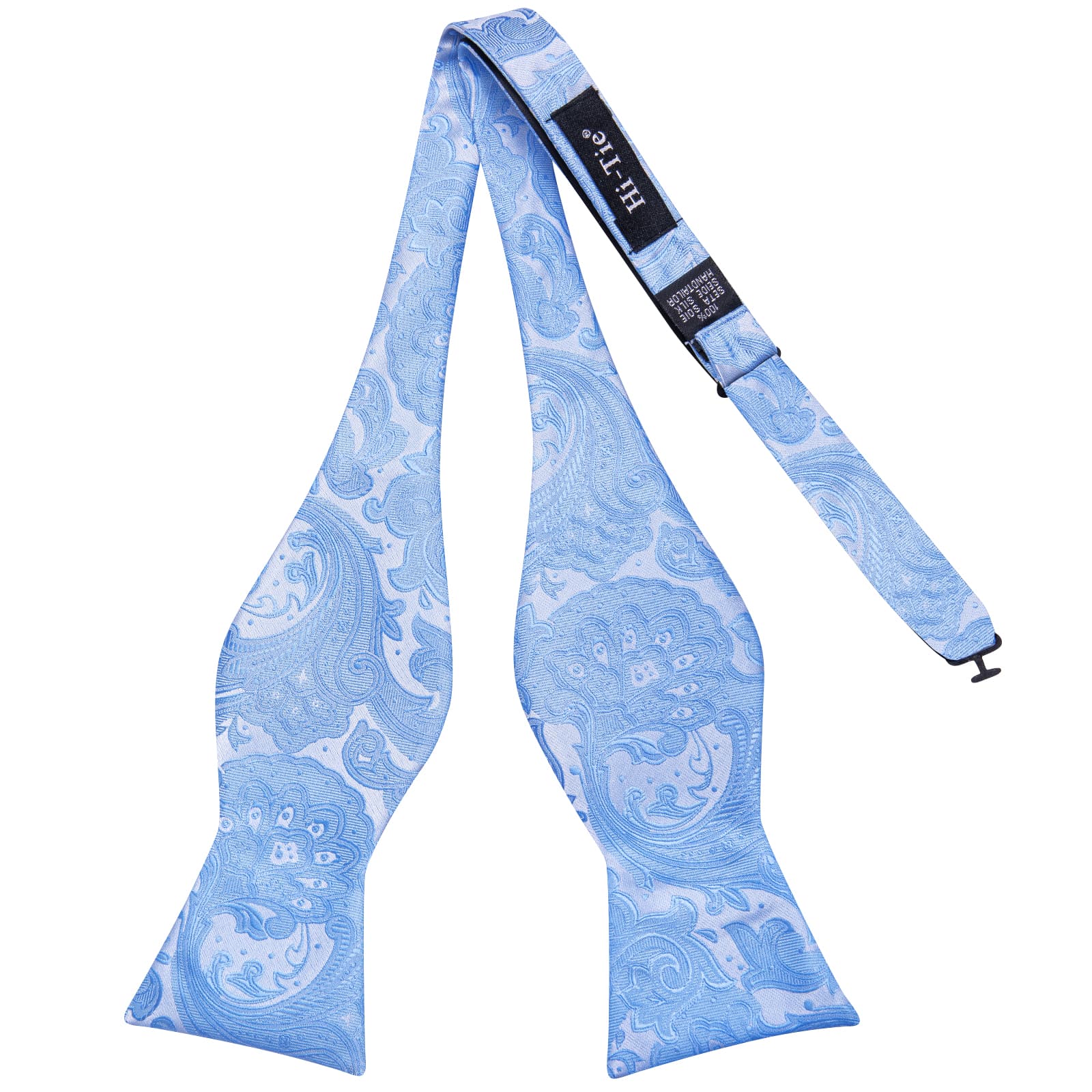 Hi-Tie Paisley Bowtie Self-Tied Sky Blue Men's Tie Hanky Cufflinks Set