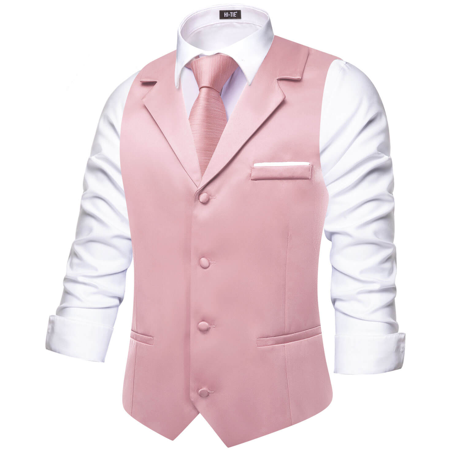 Hi-Tie Lighgt Pink Waistcoat Solid Notch lapels Men's Vest