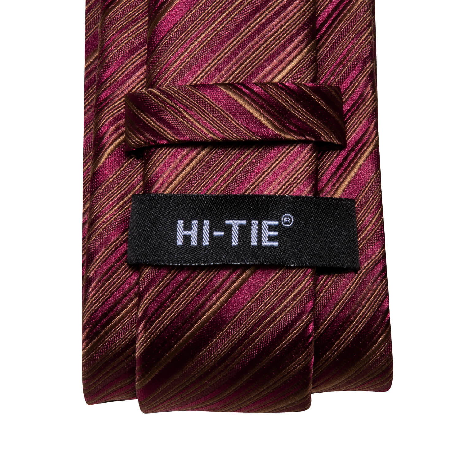 Hi-Tie Striped Wine Red Tie with Pocket Square and Cufflinks