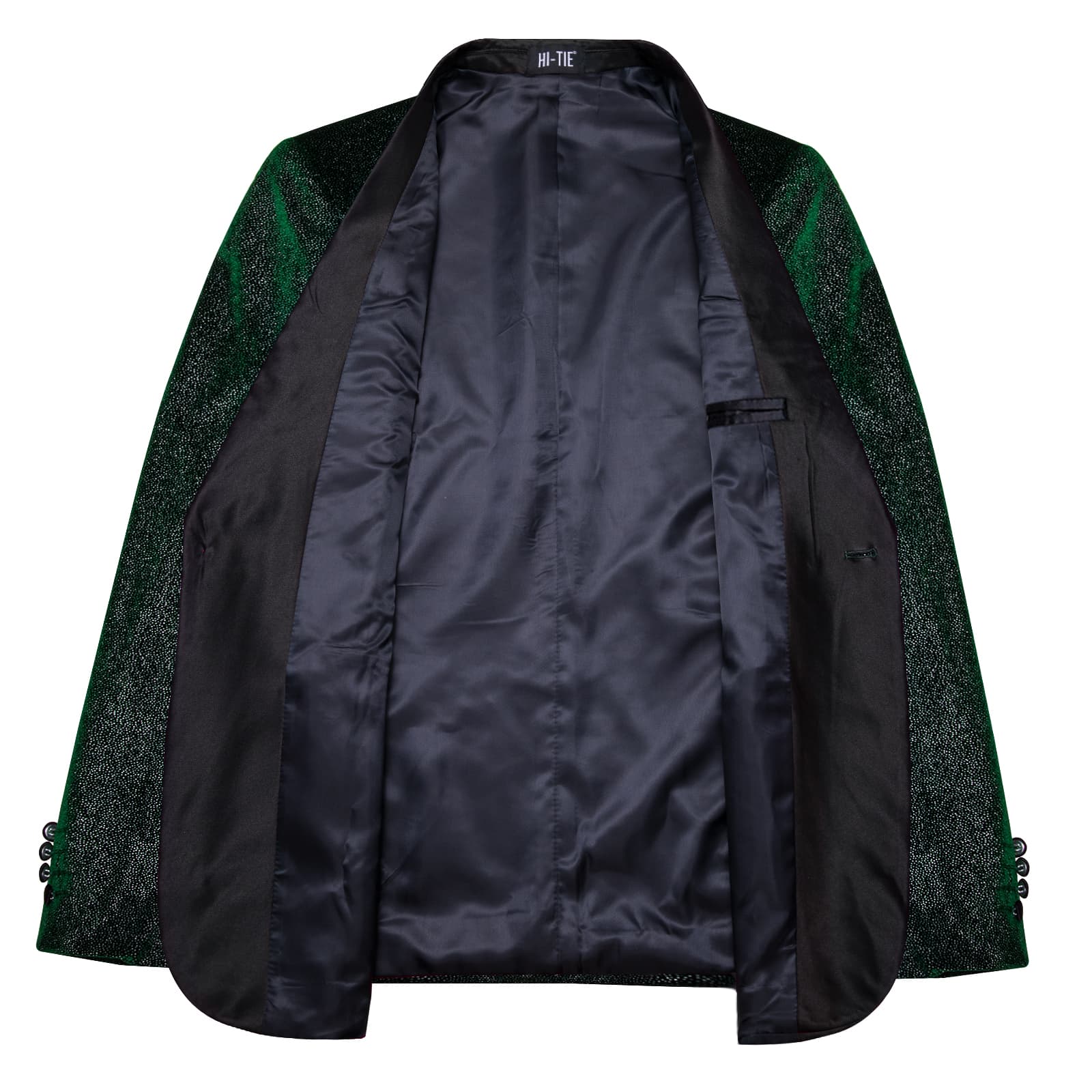 Hi-Tie Velvet Blazer Green Formal Wedding Suit Shawl Lapel Men's Top