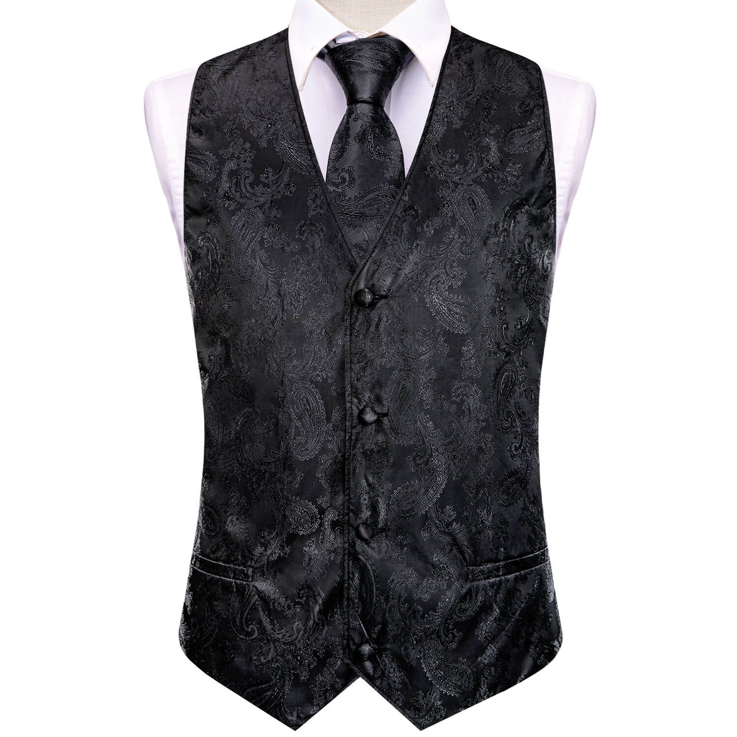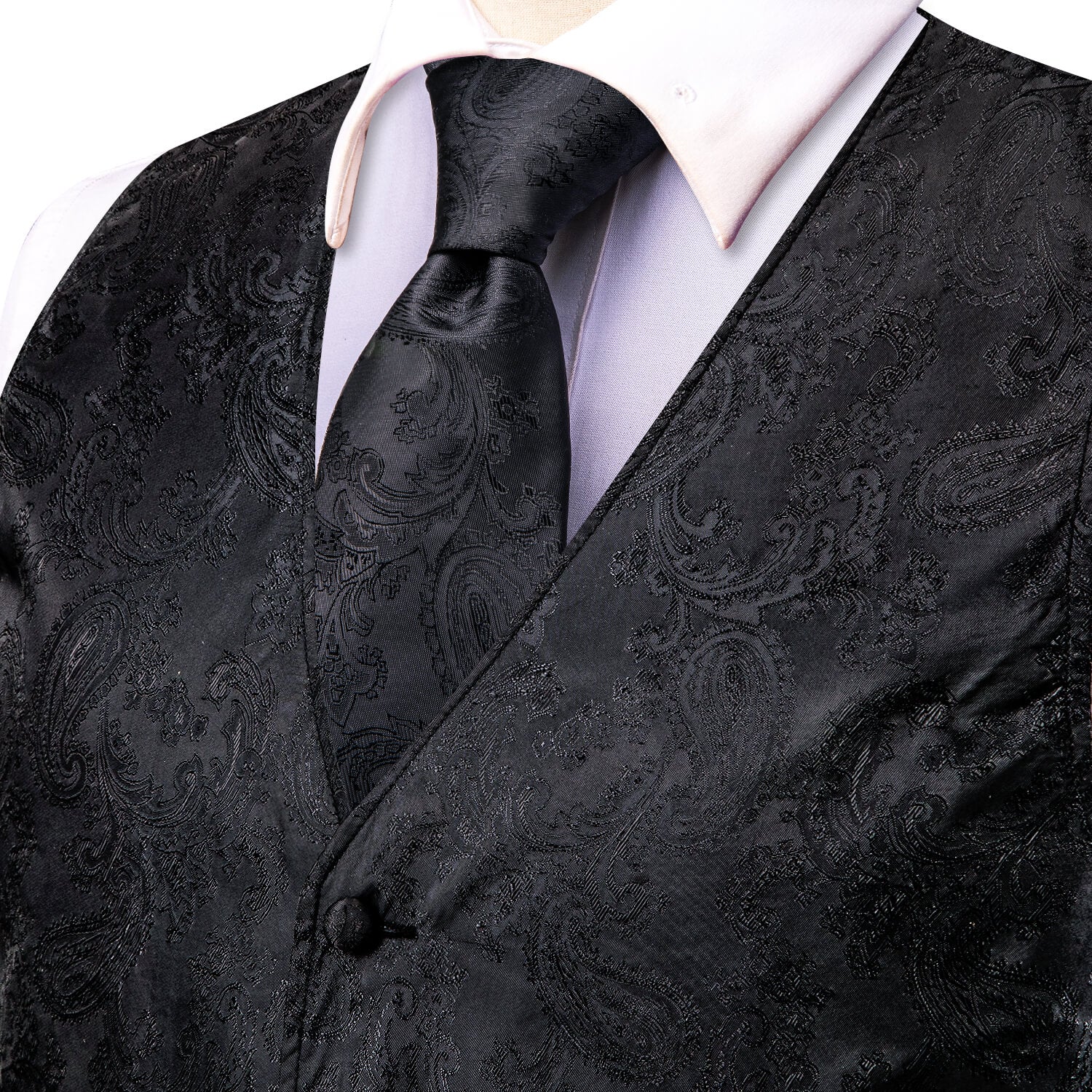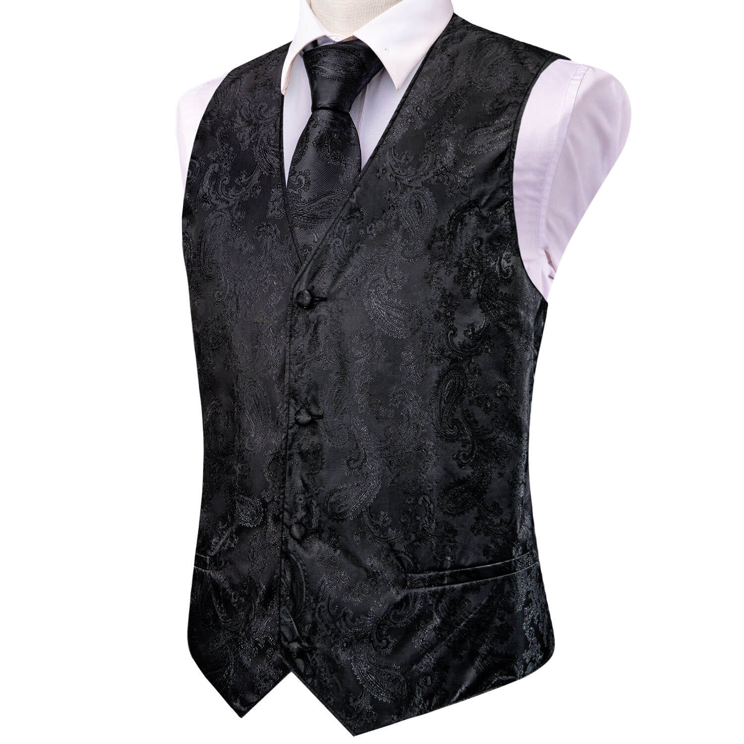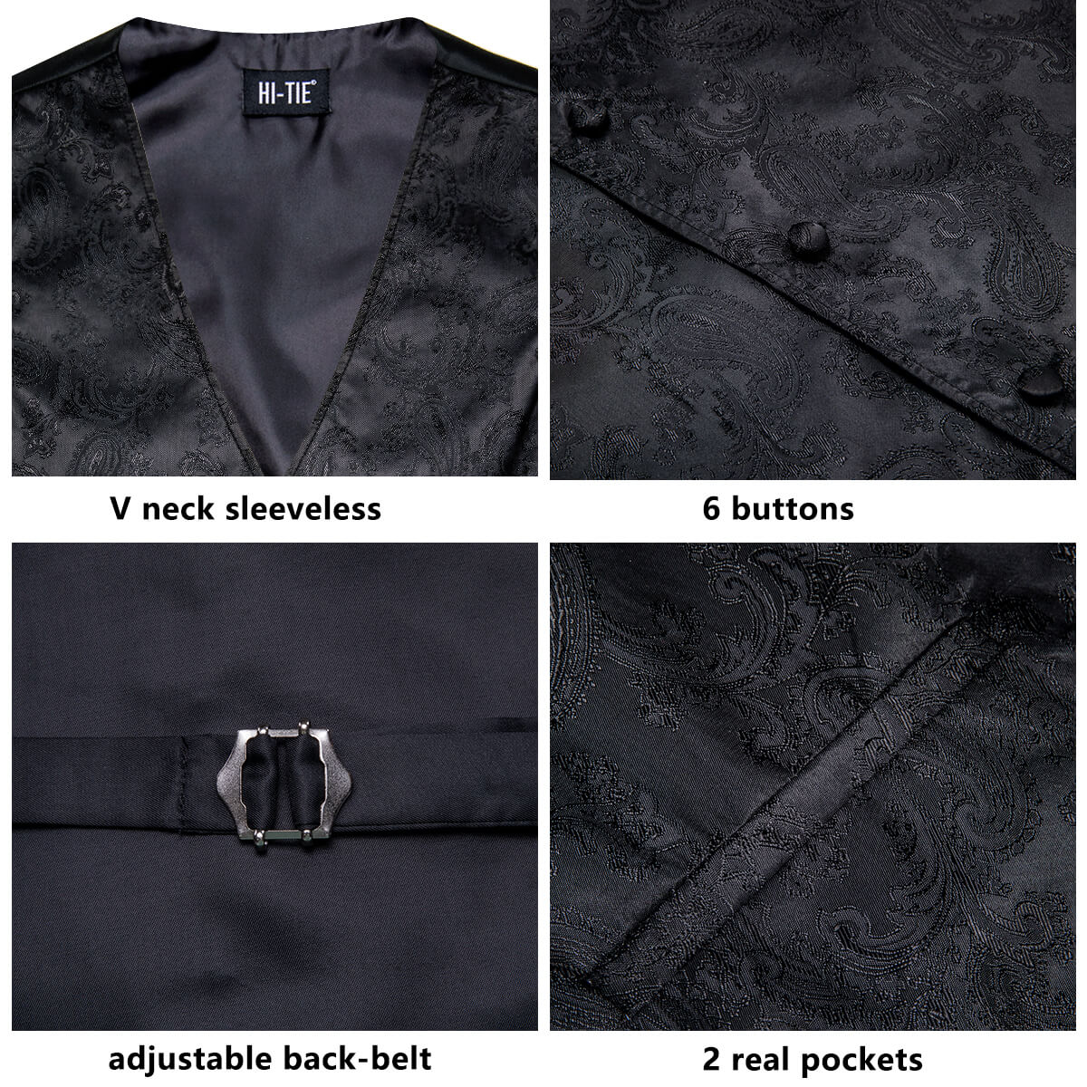 Hi-Tie Waistcoat Black Jacquard Paisley Mens Vest and Tie Set
