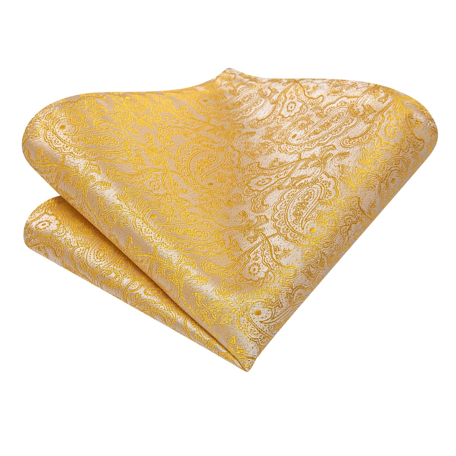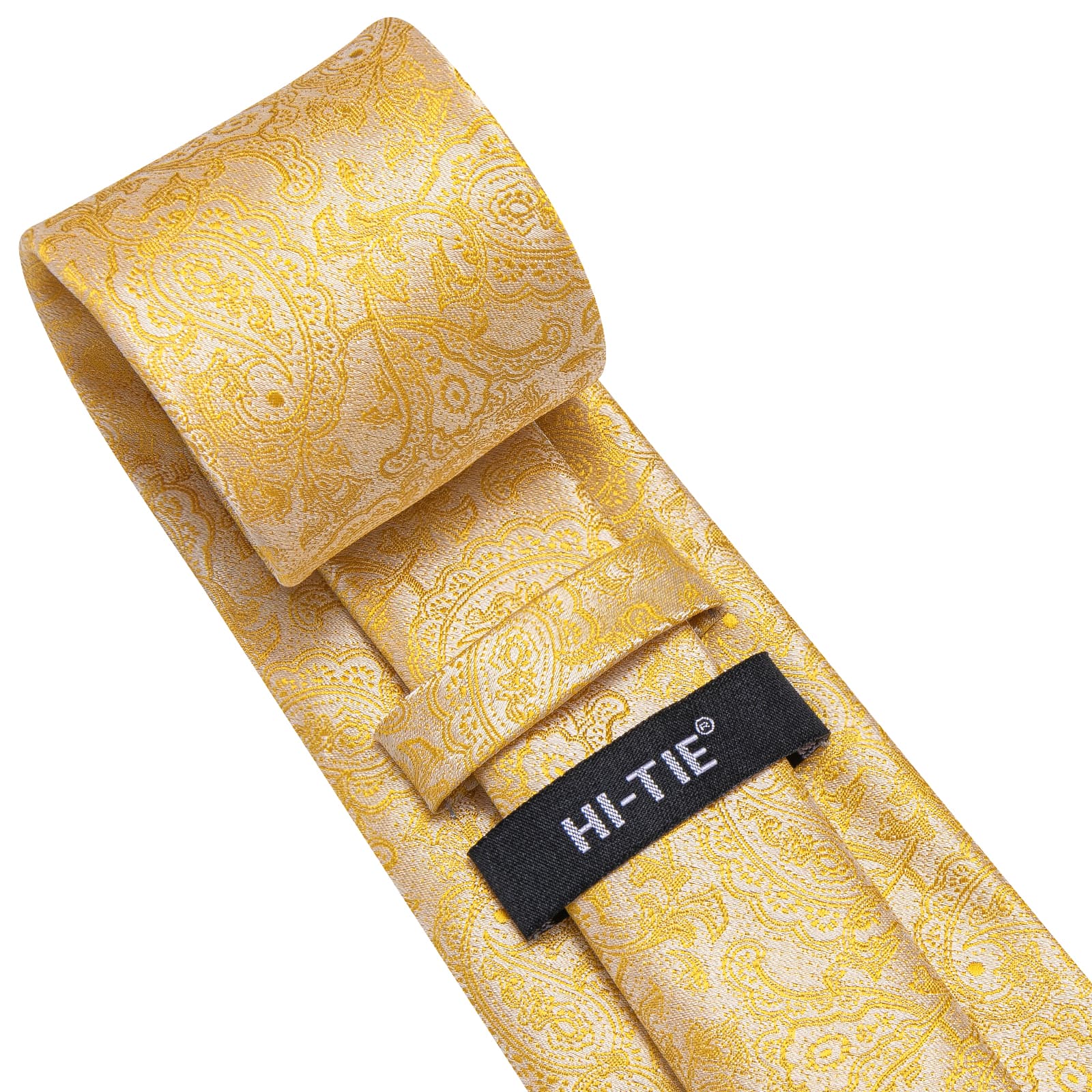 Hi-Tie Yellow Paisley Silk Mens Tie Handkerchief Cufflinks Set