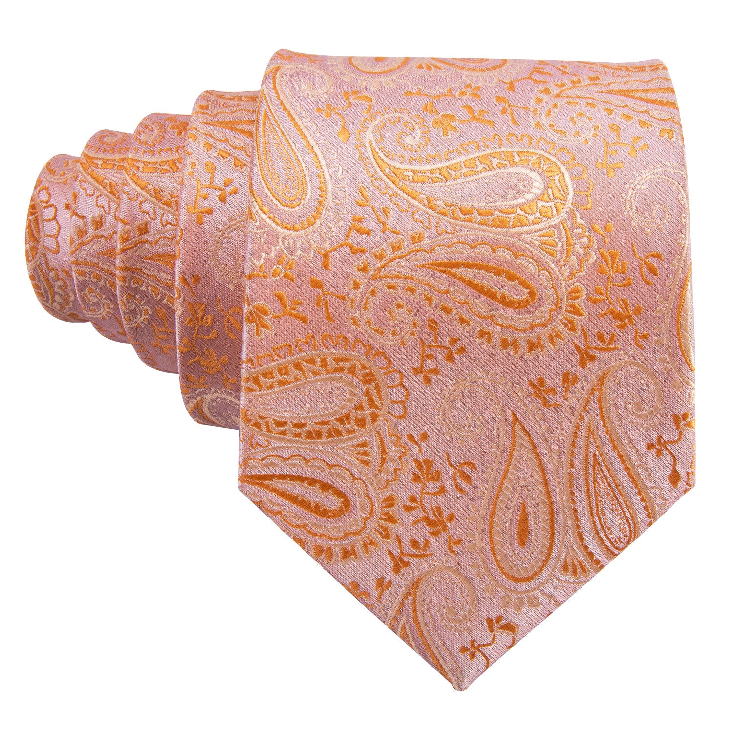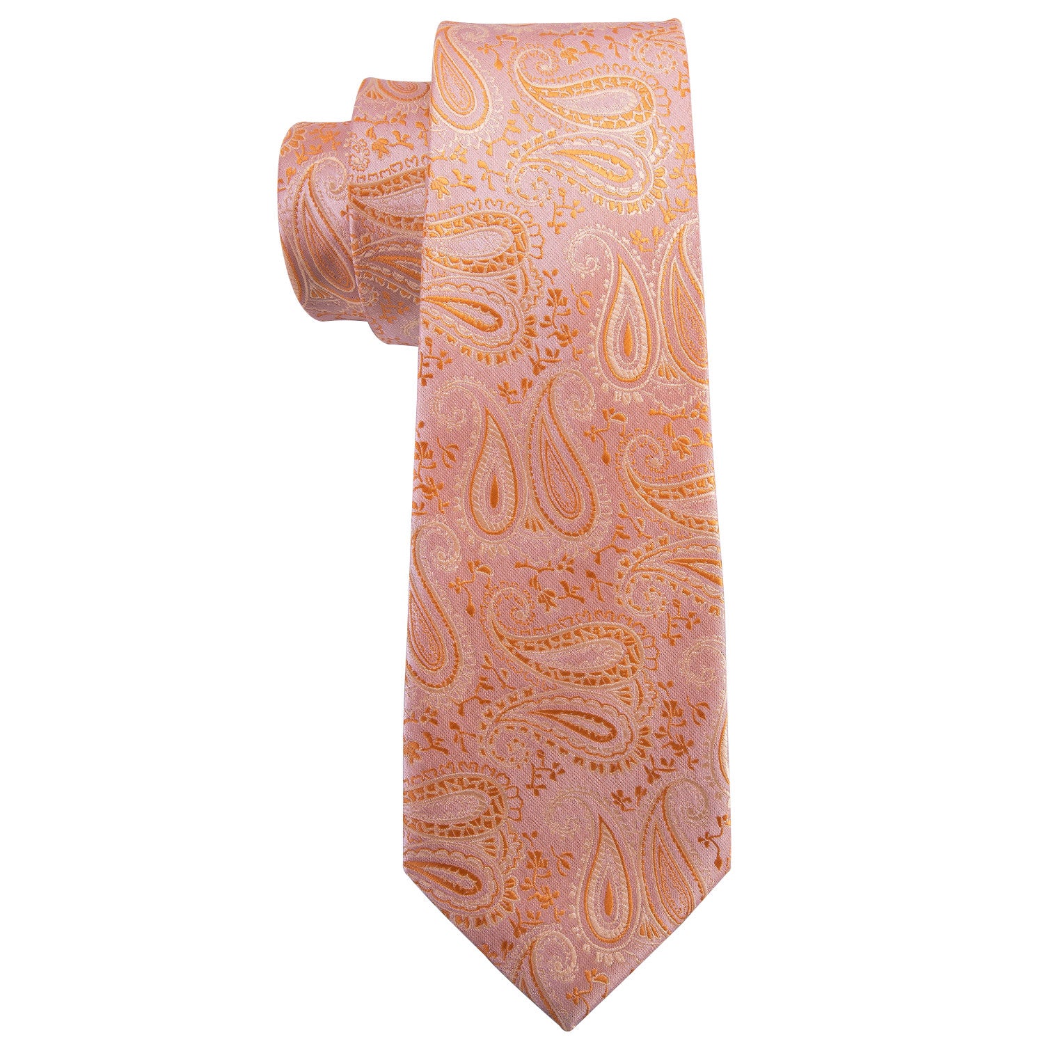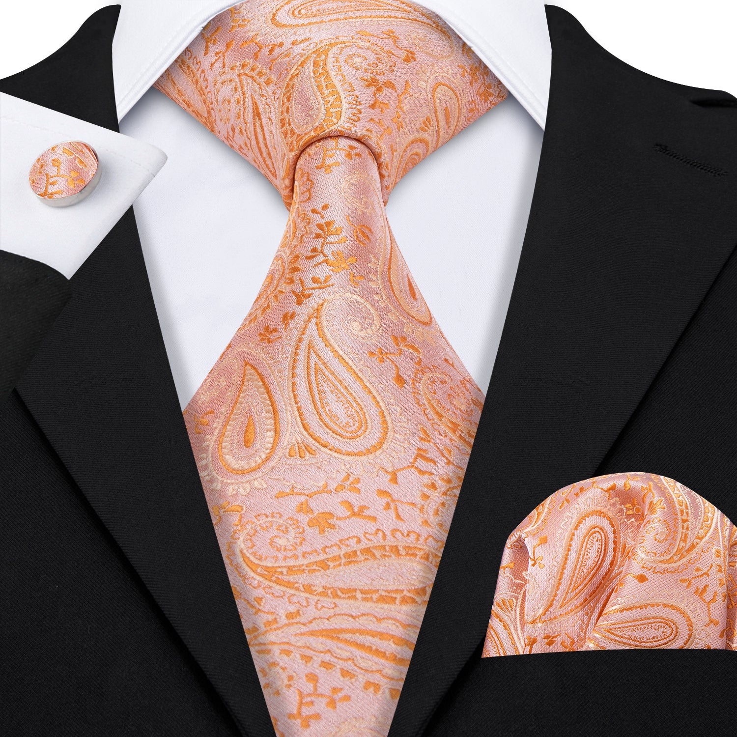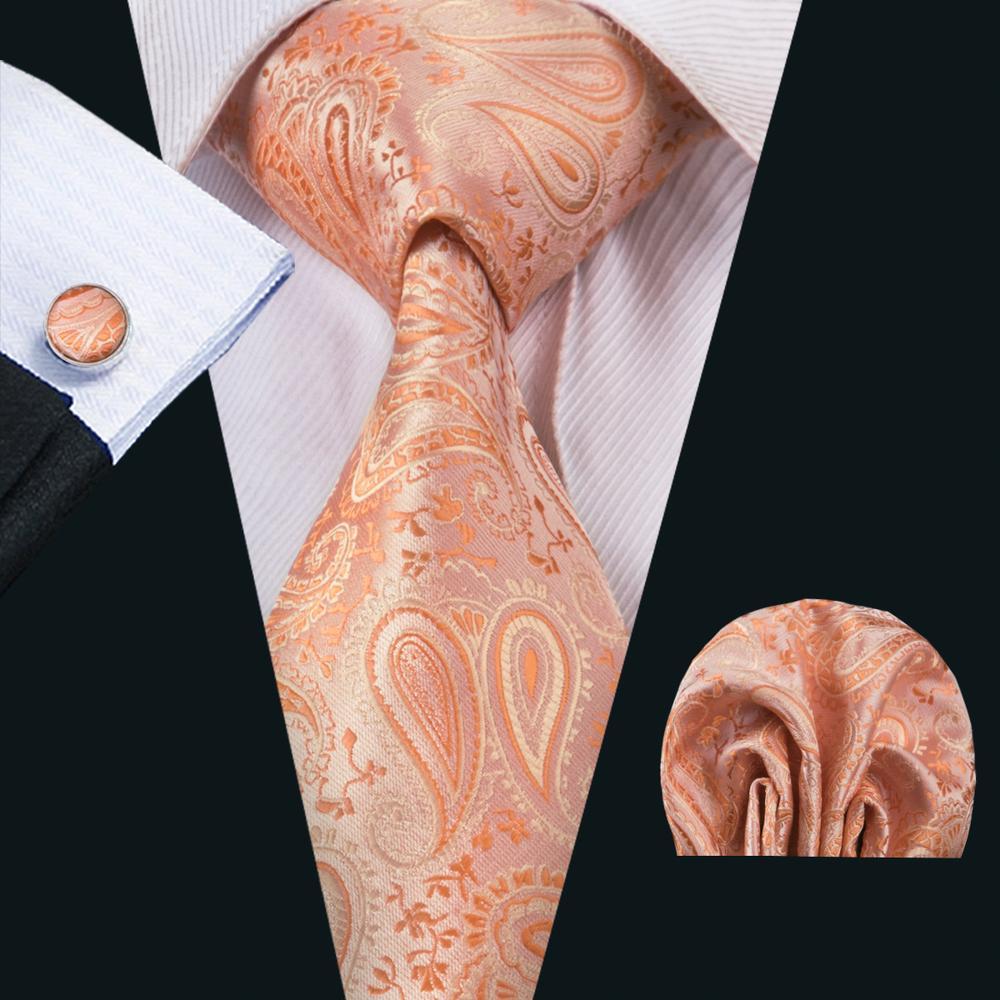 Hi-Tie Light Orange Paisley Silk Men's Tie Pocket Square Cufflinks Set