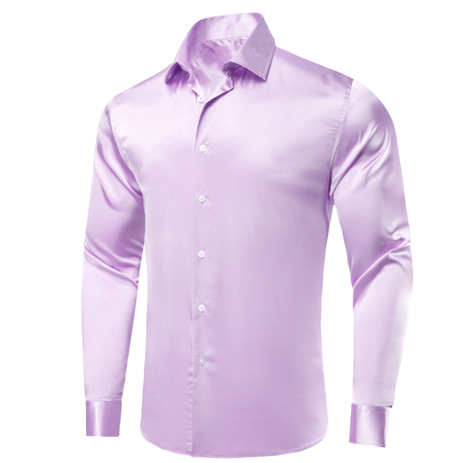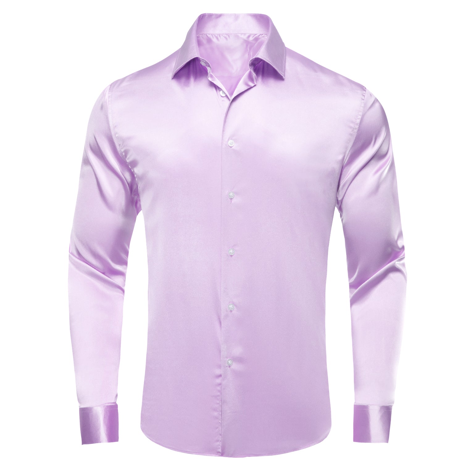 Hi-Tie Lilac Purple Solid Satin Men's Long Sleeve Dress Shirt