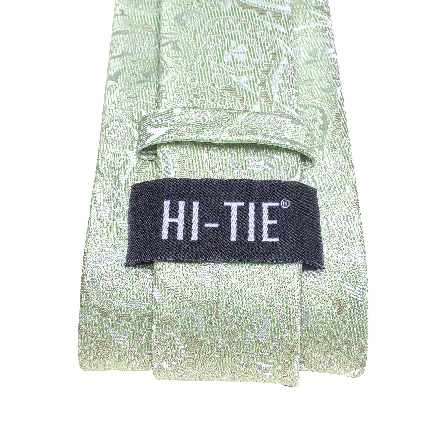 Hi-Tie Mint Green Paisley Silk Men Necktie Pocket Square Cufflinks Set
