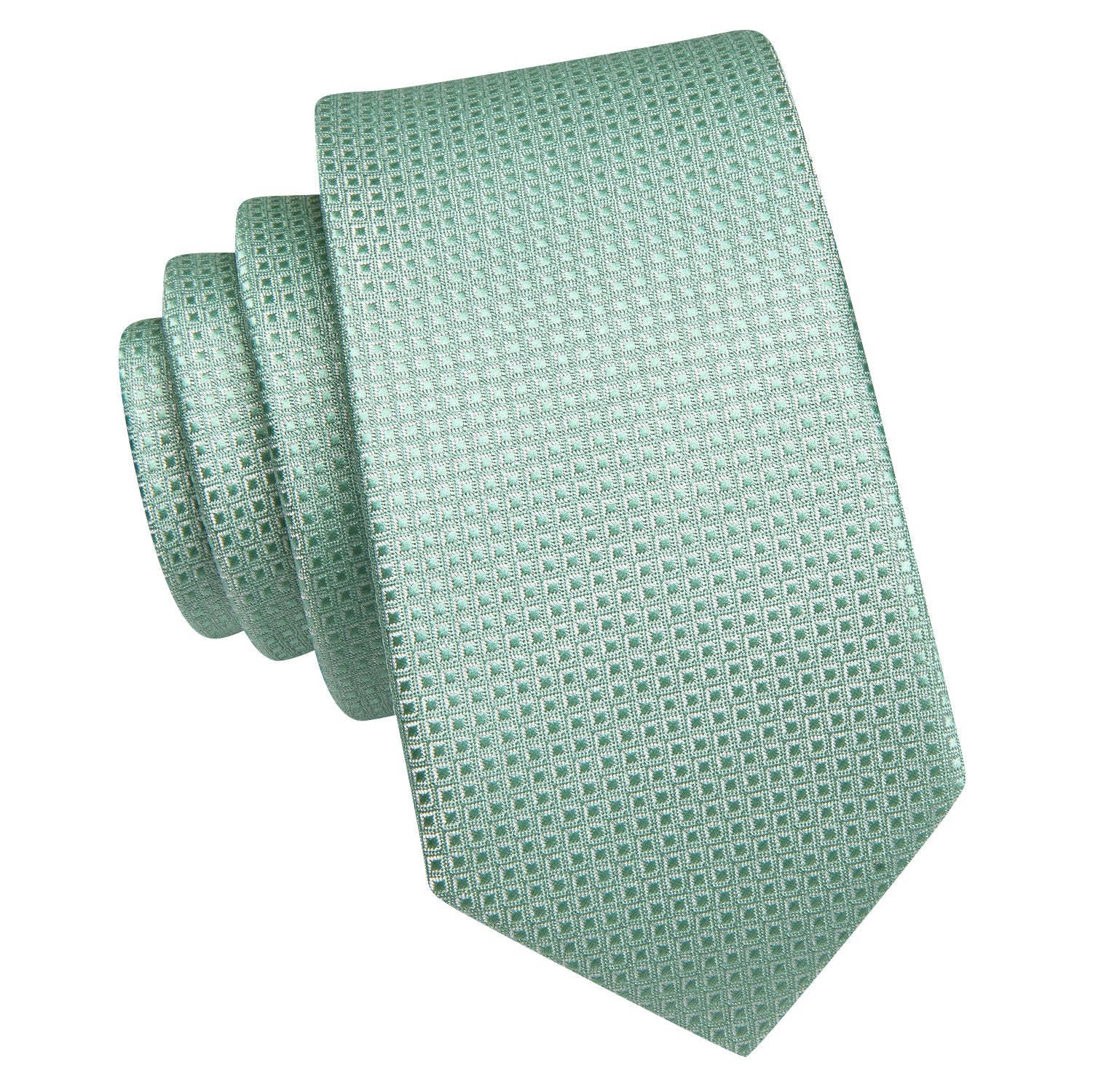 Mint Green Plaid Boys Tie Pocket Square 6cm