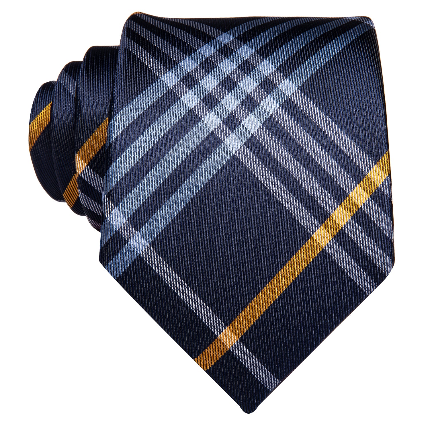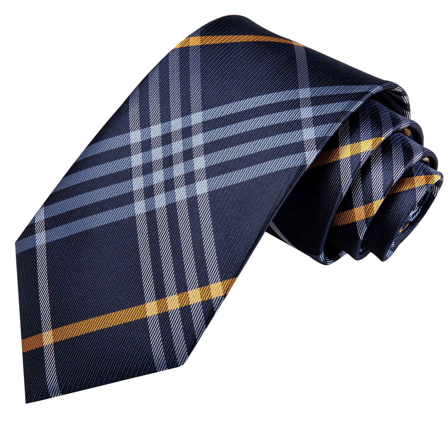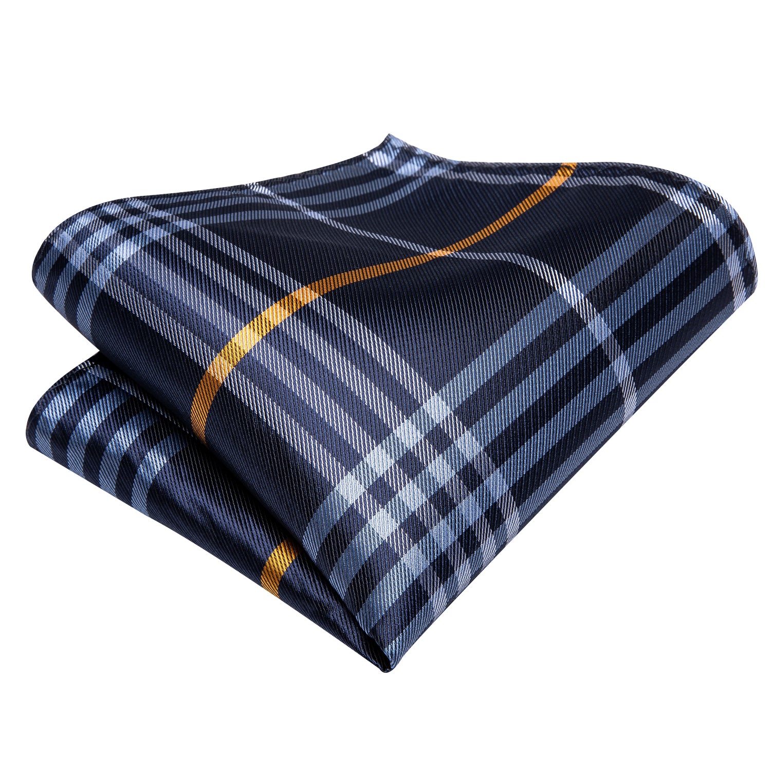 Hi-Tie Navy Blue Necktie Yellow Plaid Tie Pocket Square Cufflinks Set