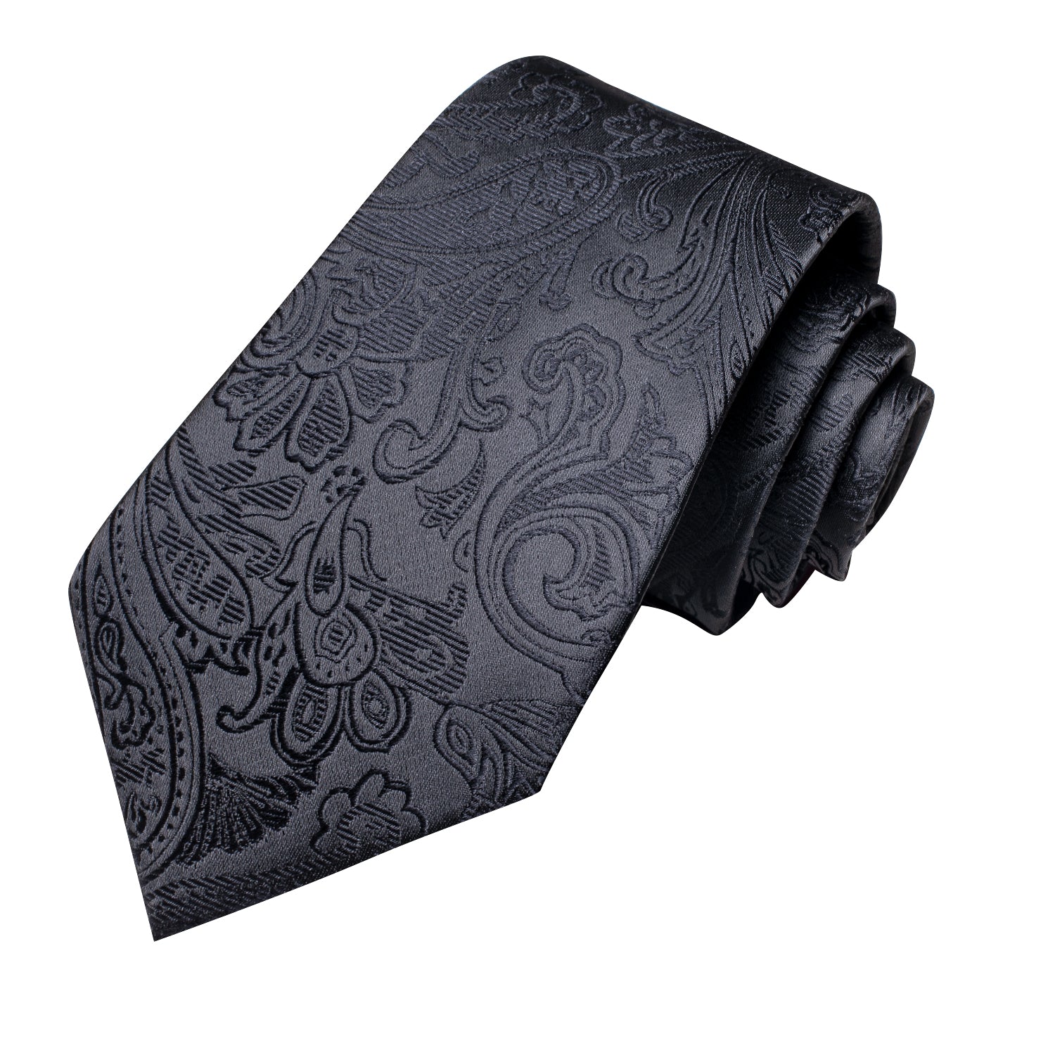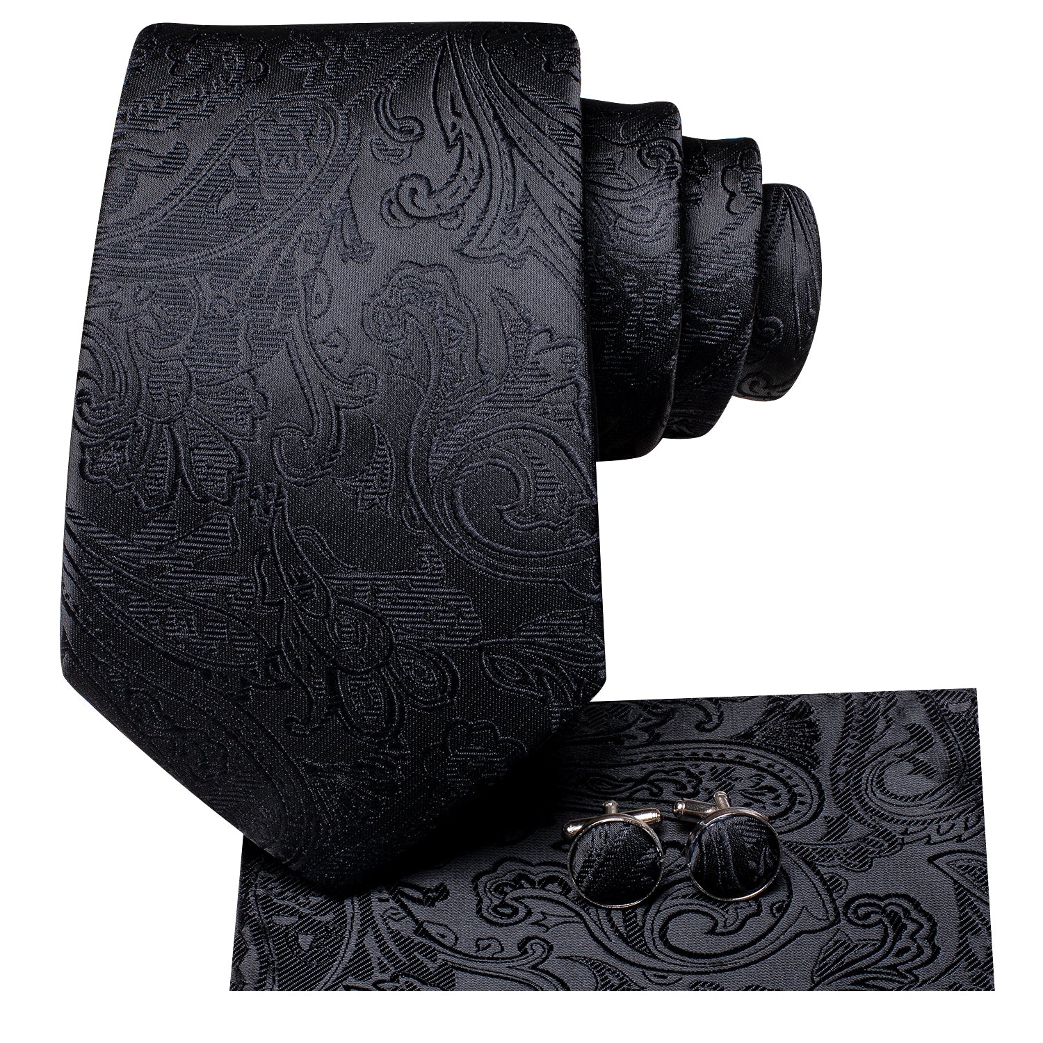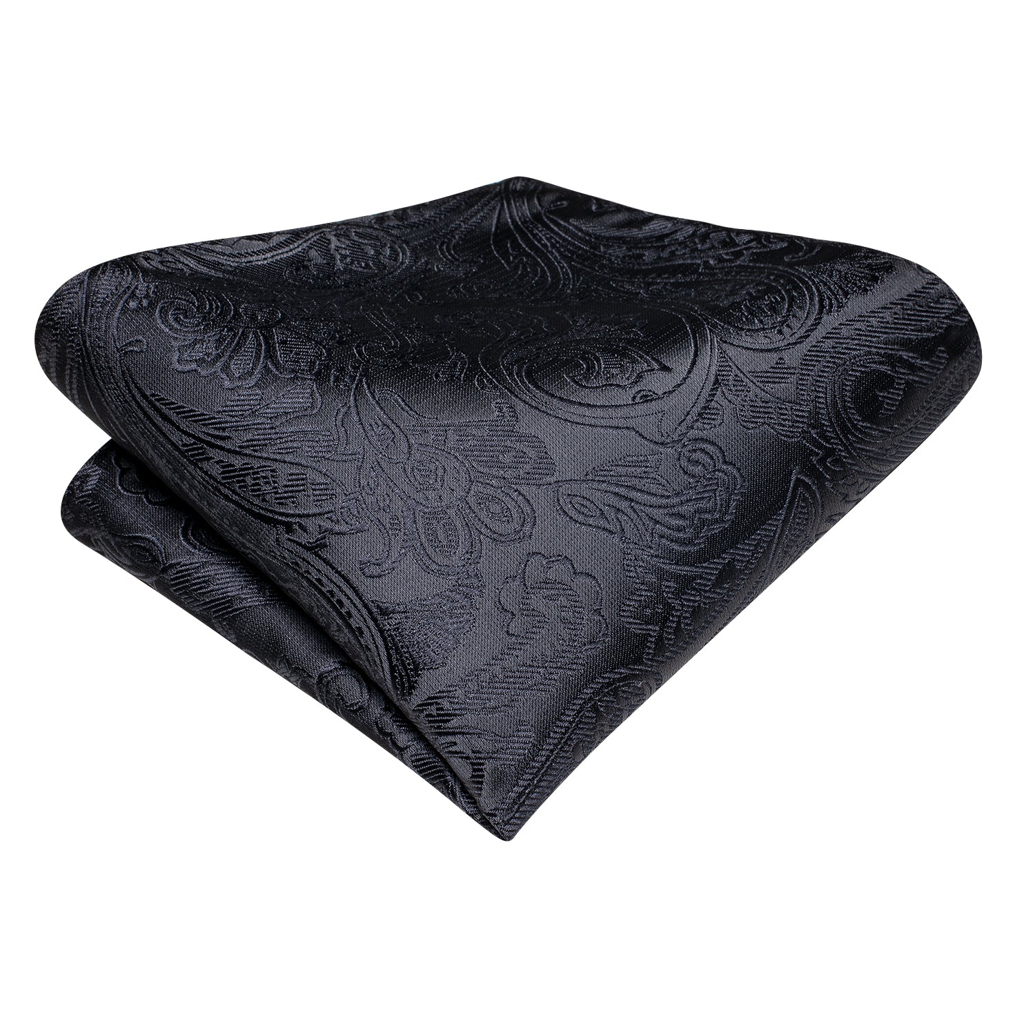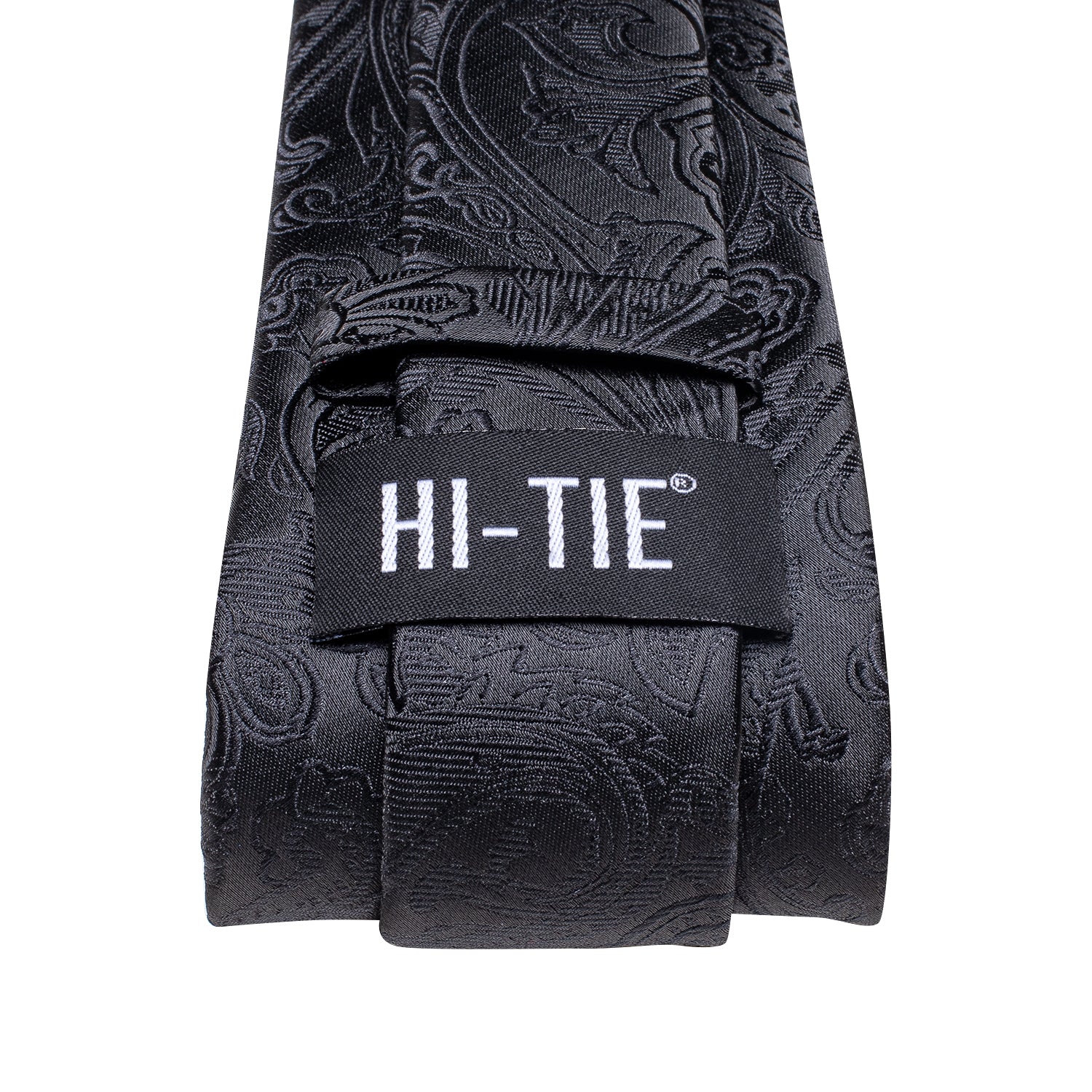 Hi-Tie Black Paisley Silk Men's Necktie Pocket Square Cufflinks Set