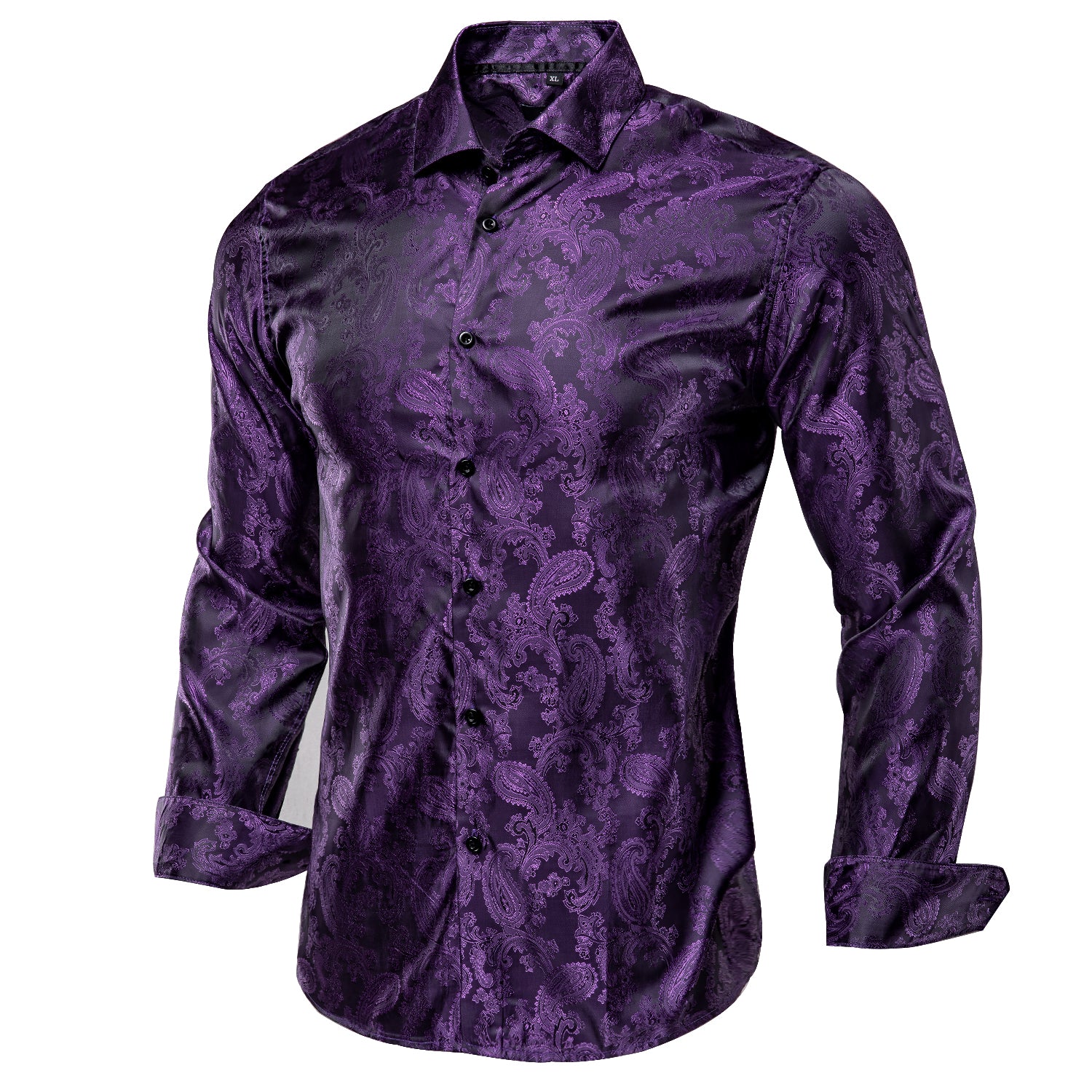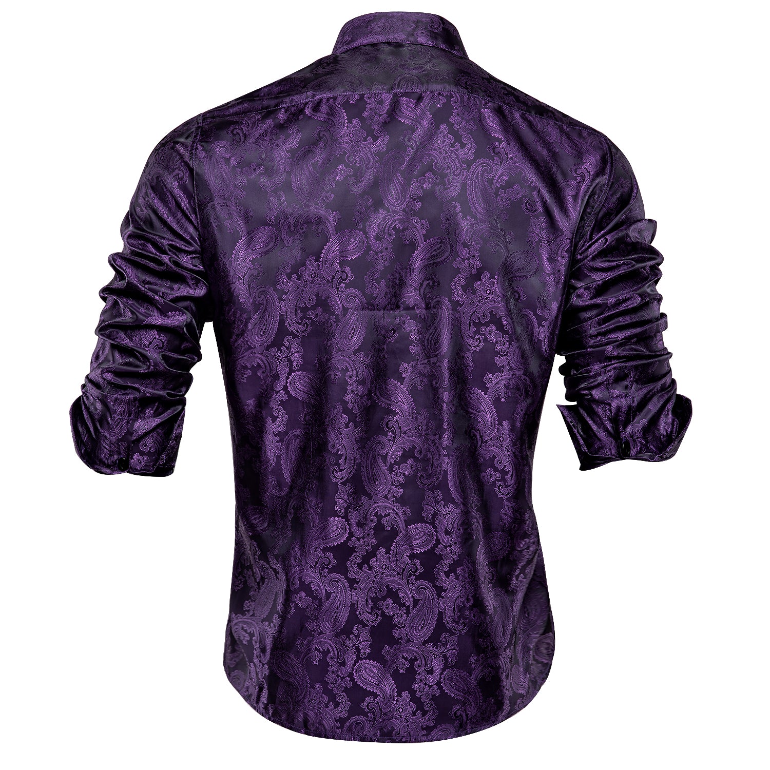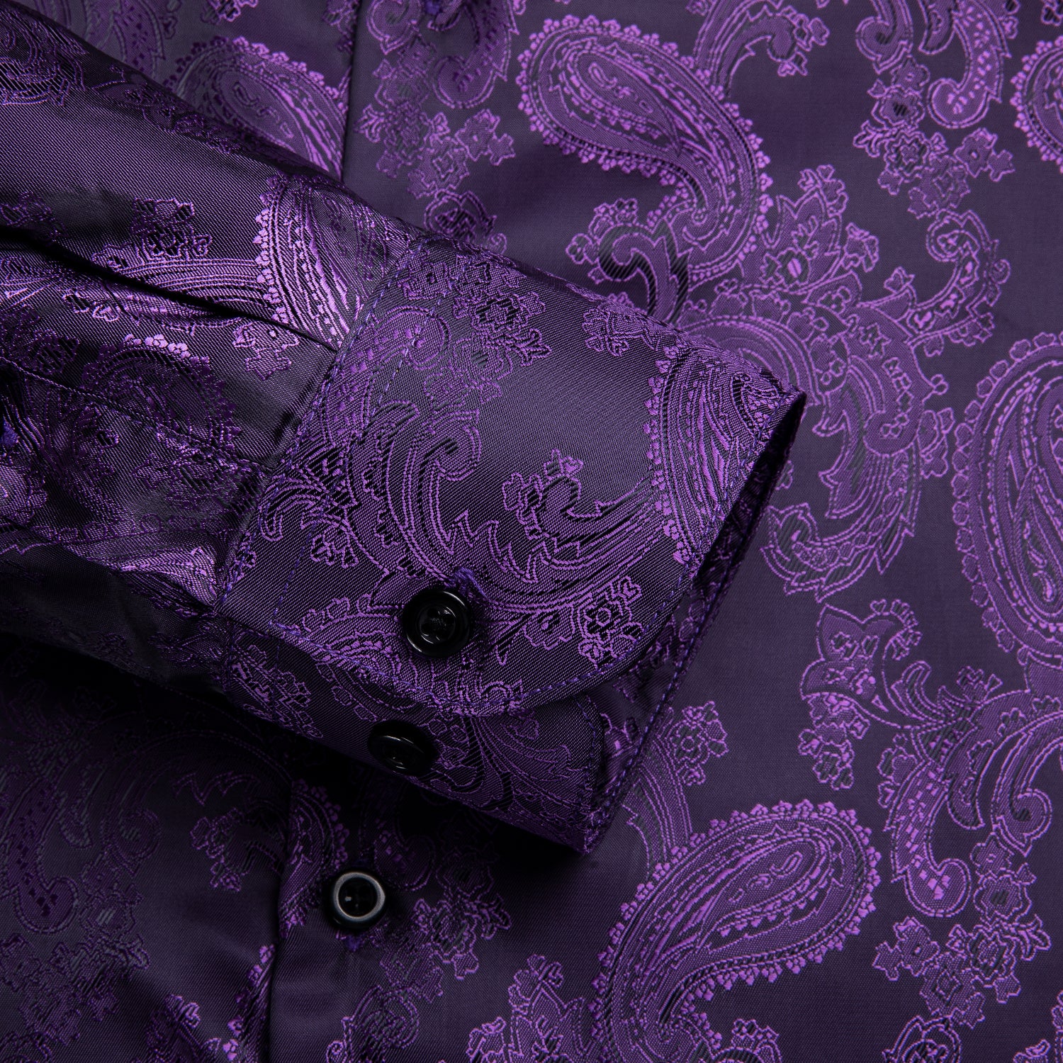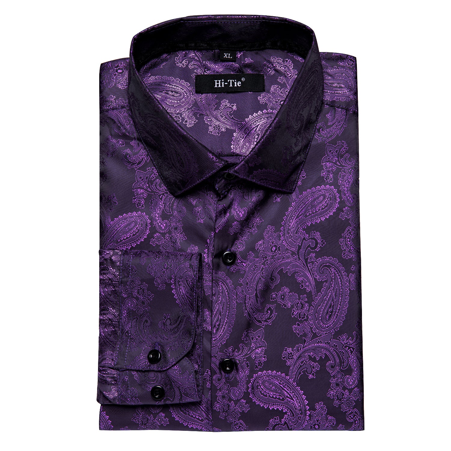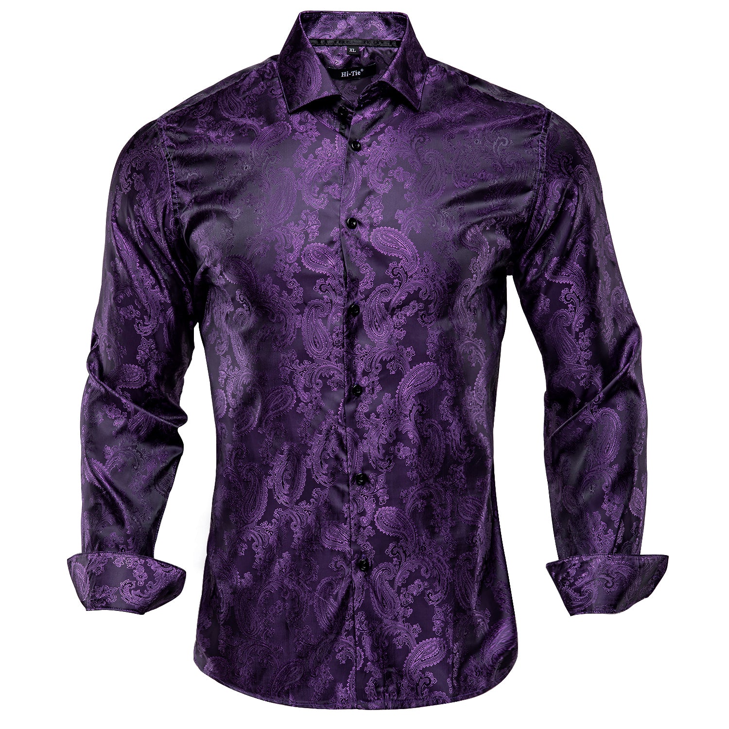 Hi-Tie Purple Top Black Purple Paisley Silk Men's Long Sleeve Shirt