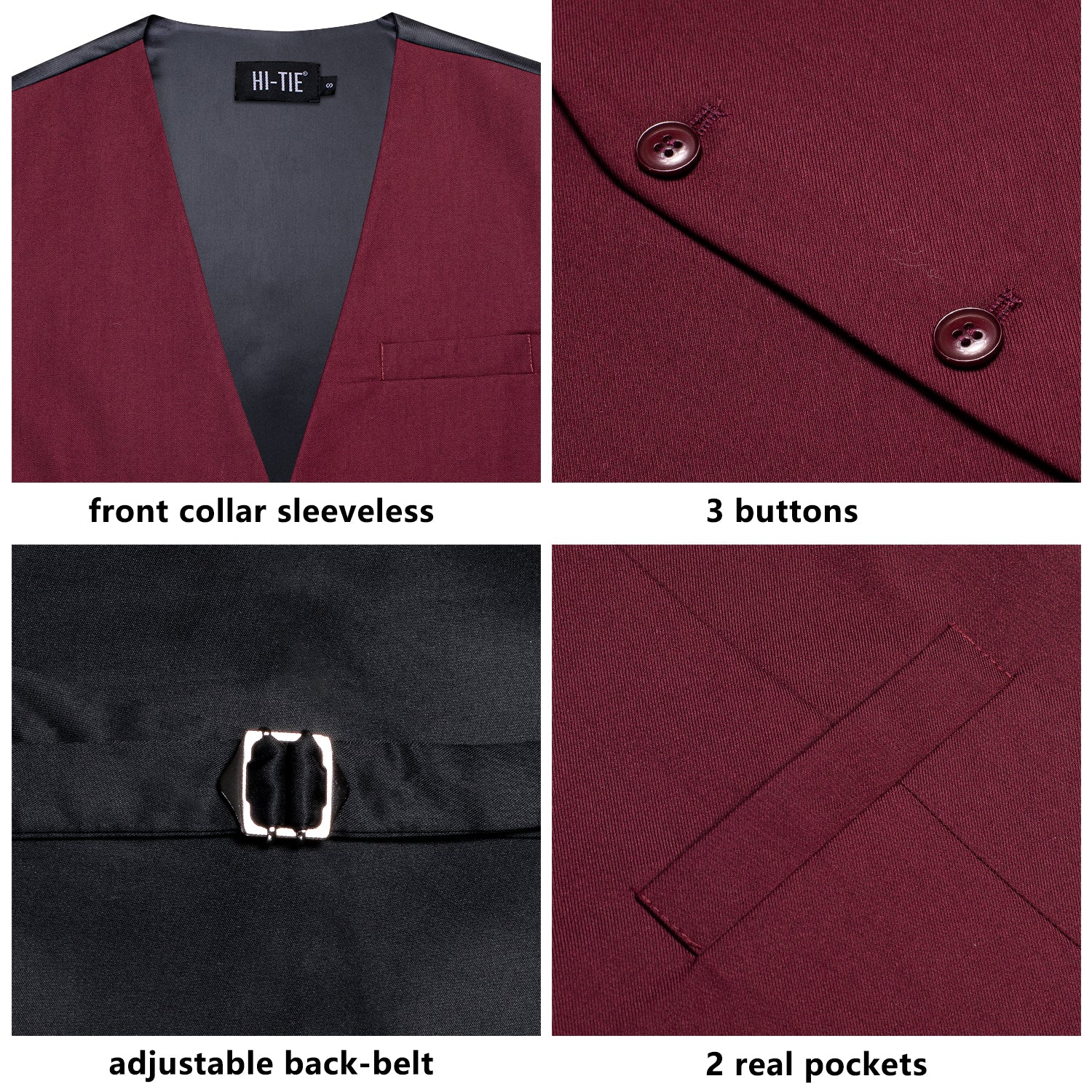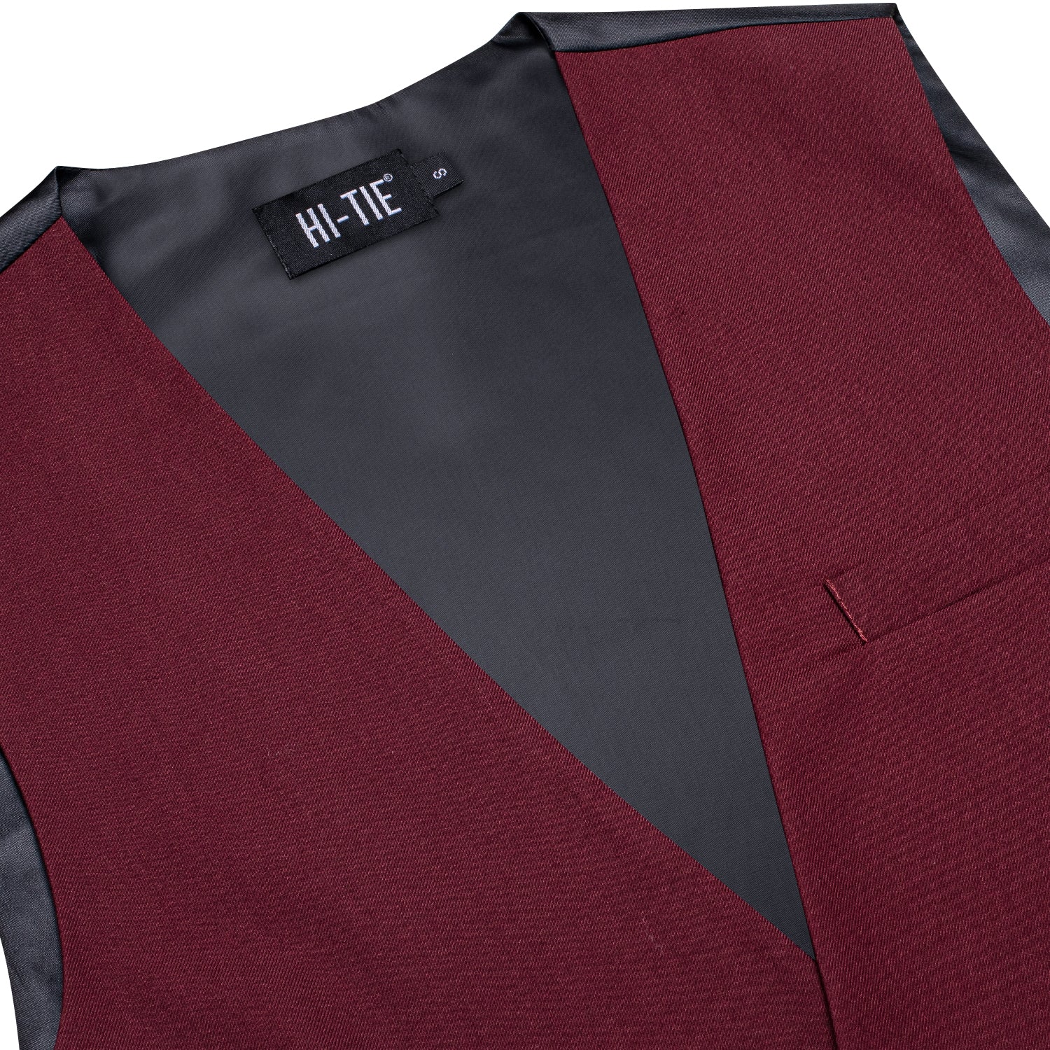 Burgundy Red Solid Silk Men's Single Vest Waistcoat
