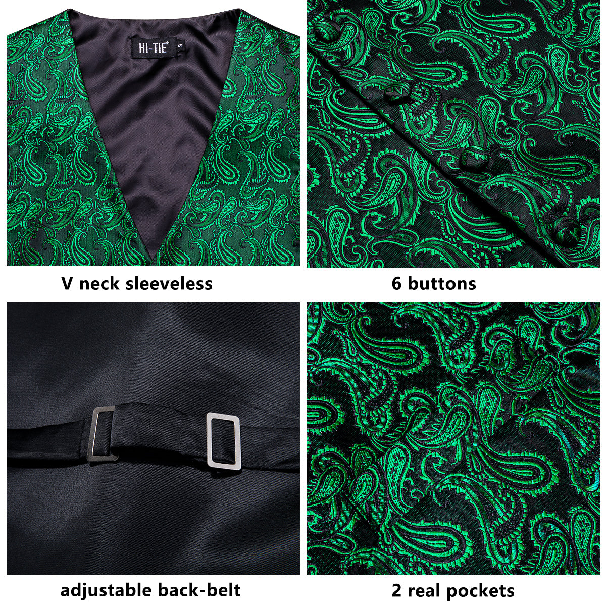 Emerald Green Paisley Silk Men's Vest Hanky Cufflinks Tie Set Waistcoat Suit Set