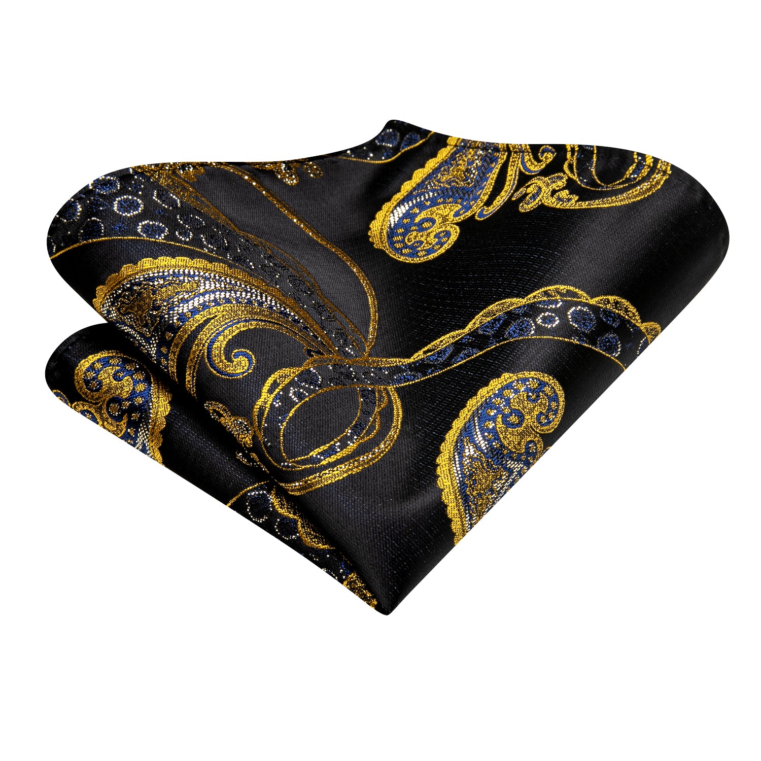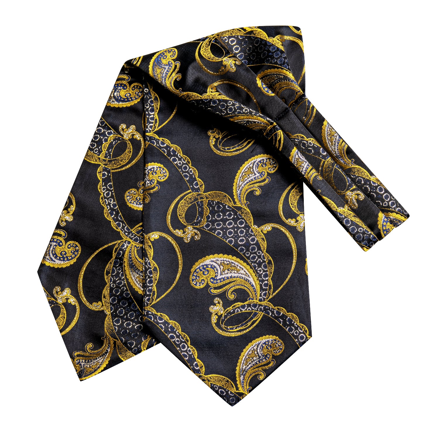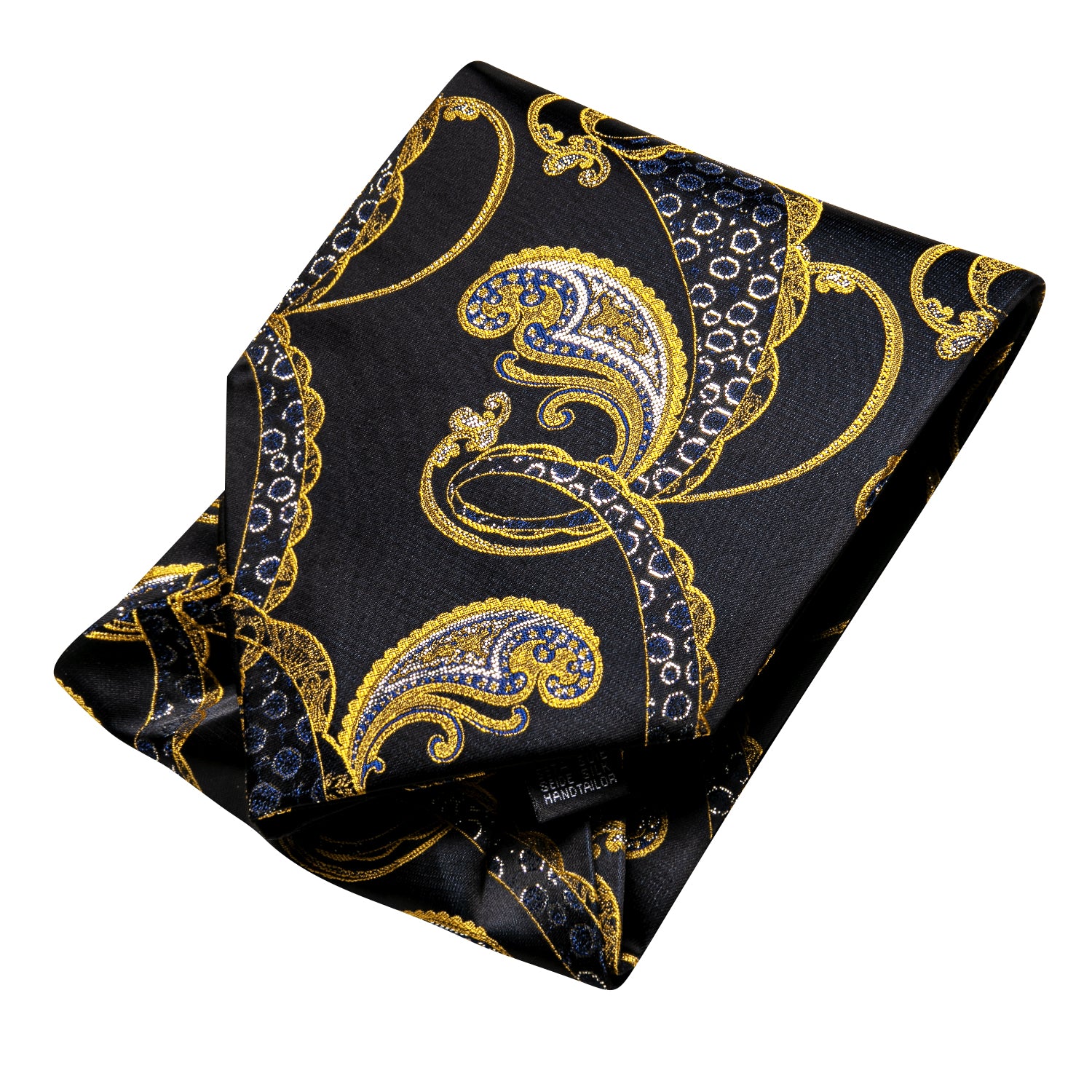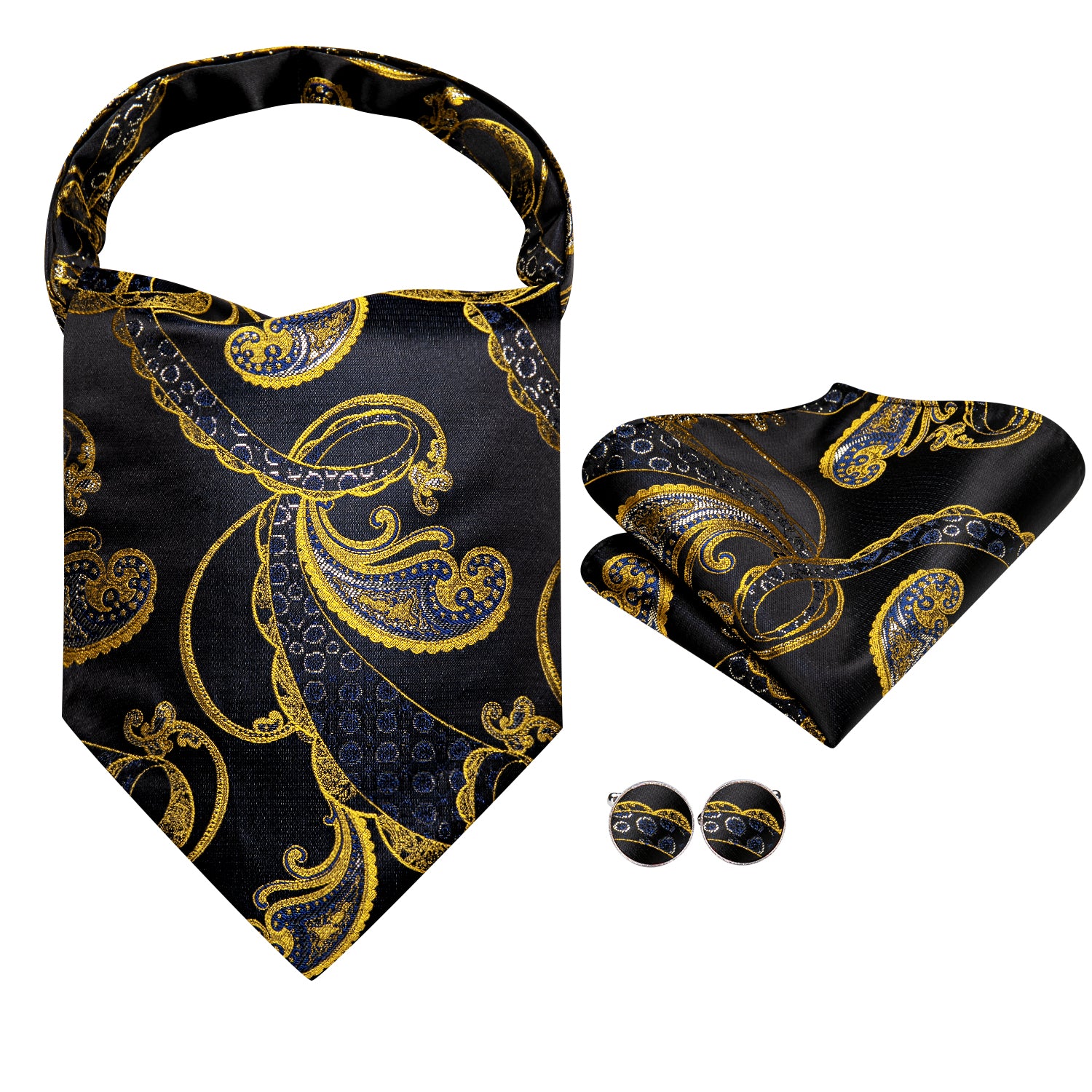 Golden Paisley Ascot Pocket Square Cufflinks Set