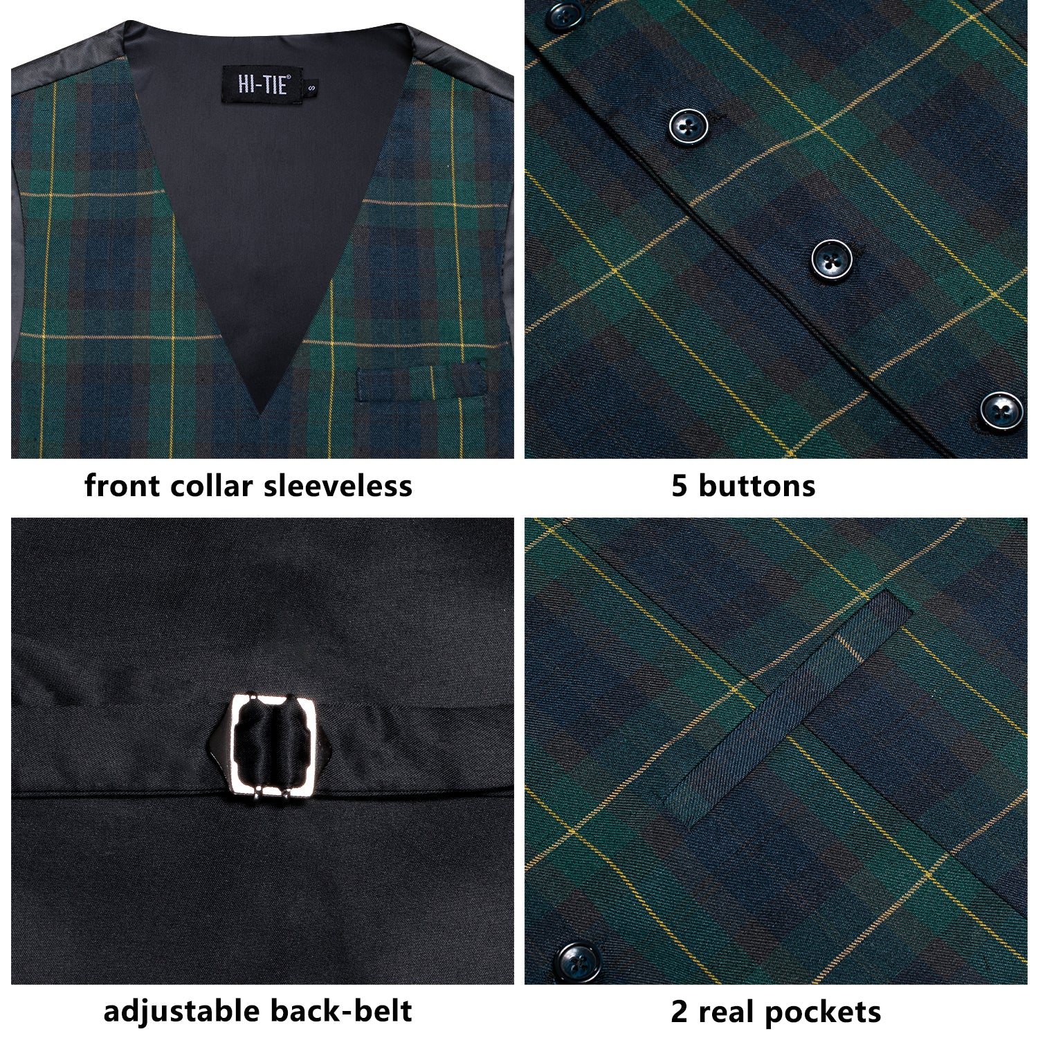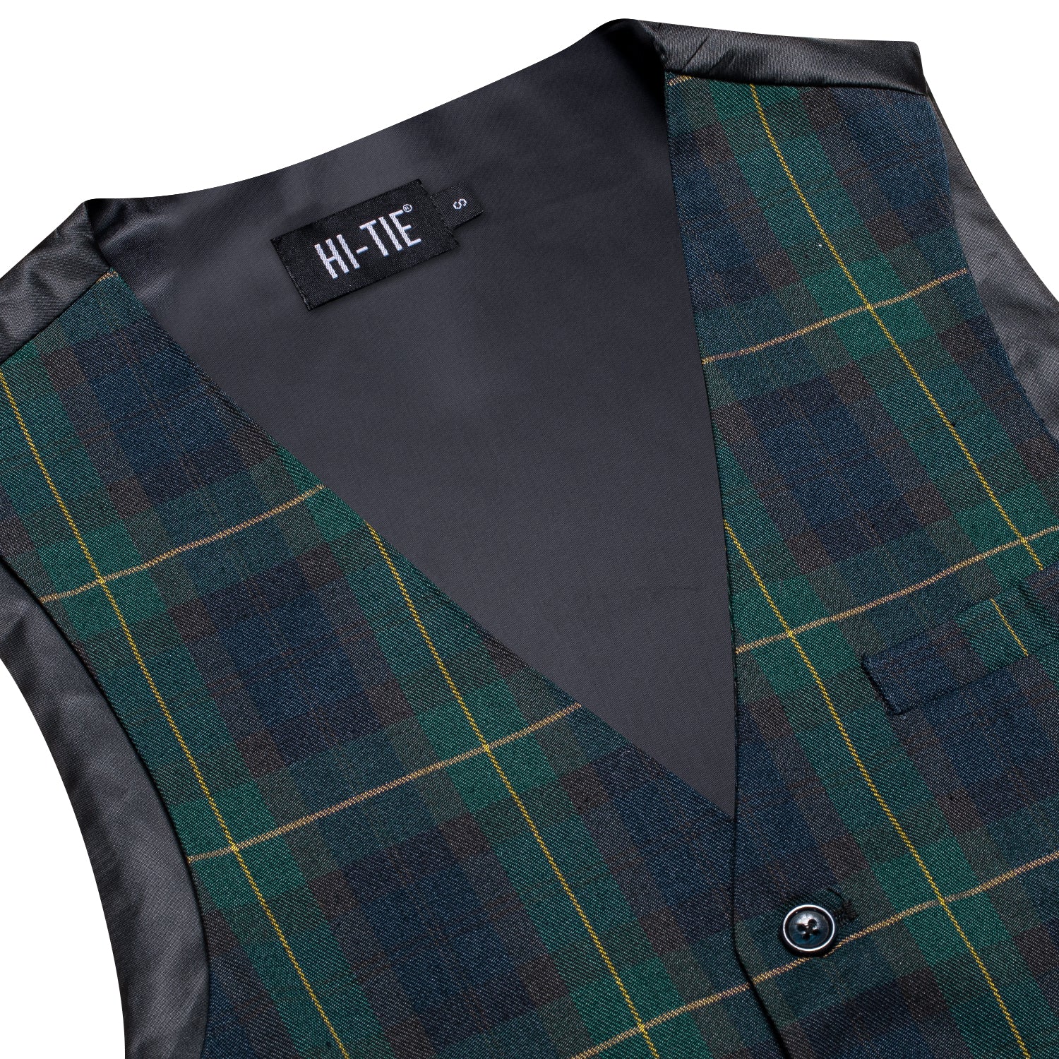 Green Blue Yellow Plaid Silk England Style Men's Single Vest Waistcoat