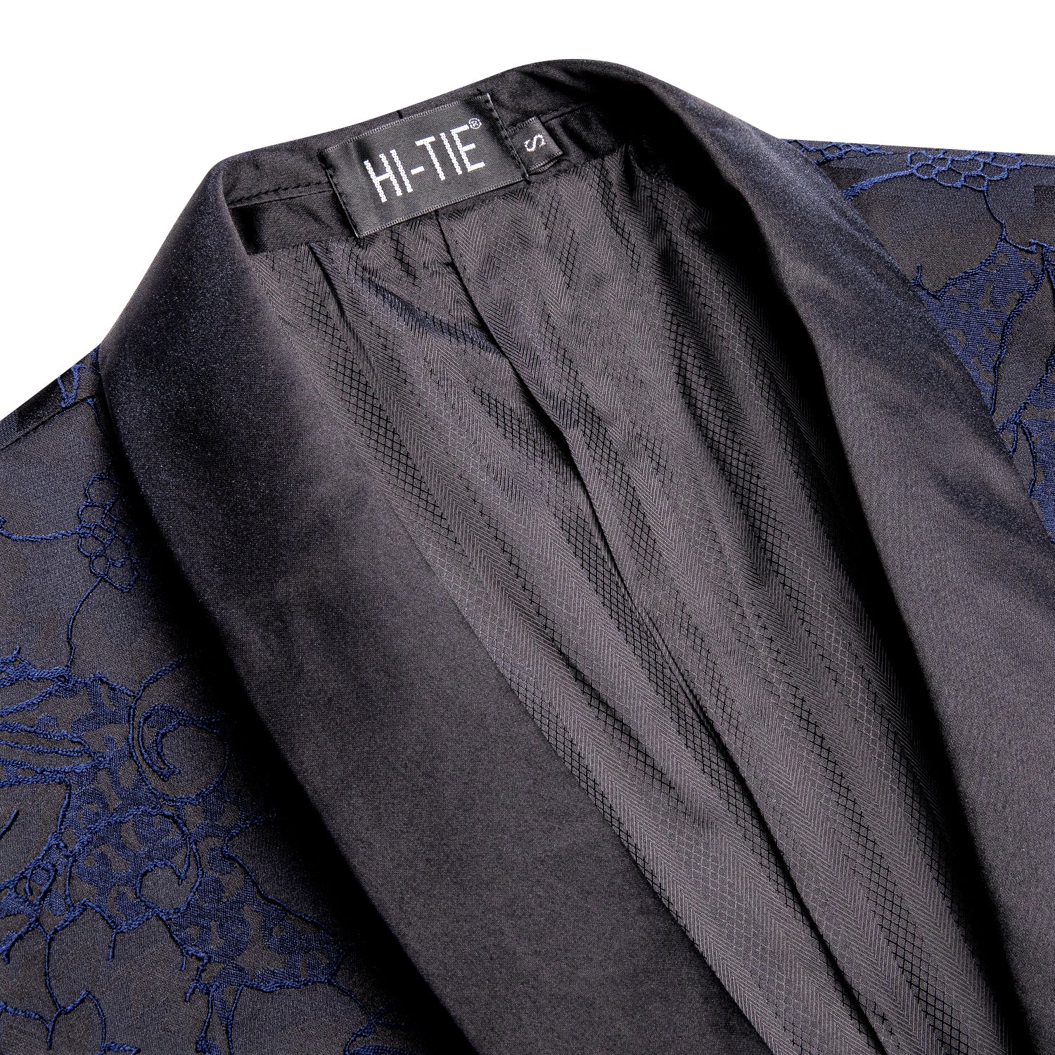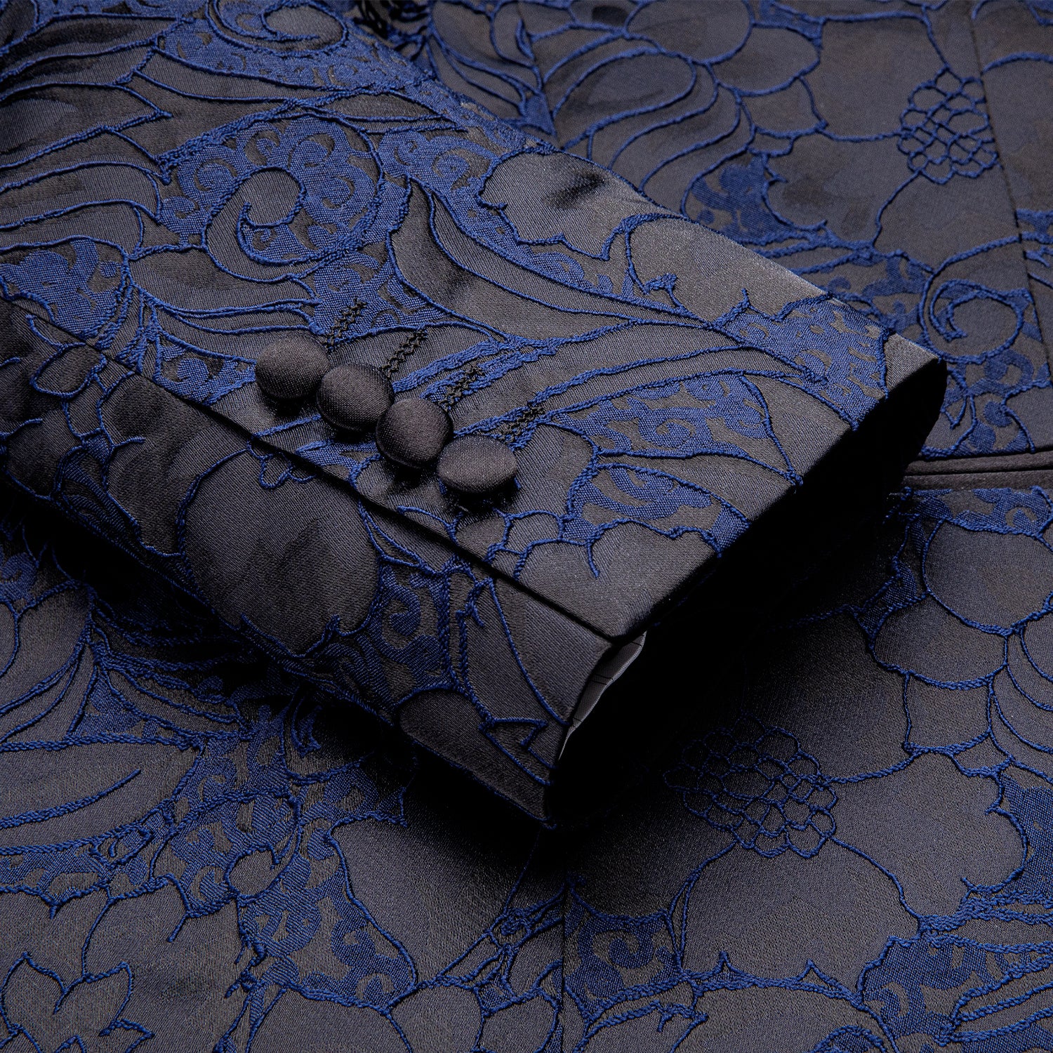 Hi-Tie Black Shawl Lapel Suit Luxury Blue Black Floral Men's Suit Set