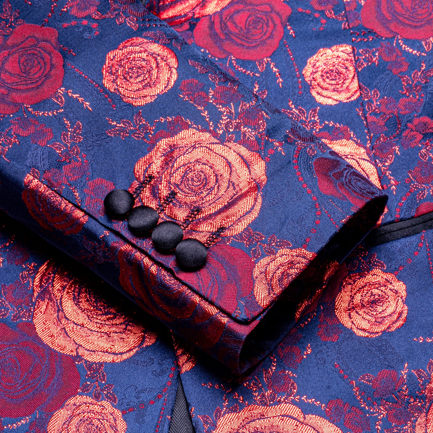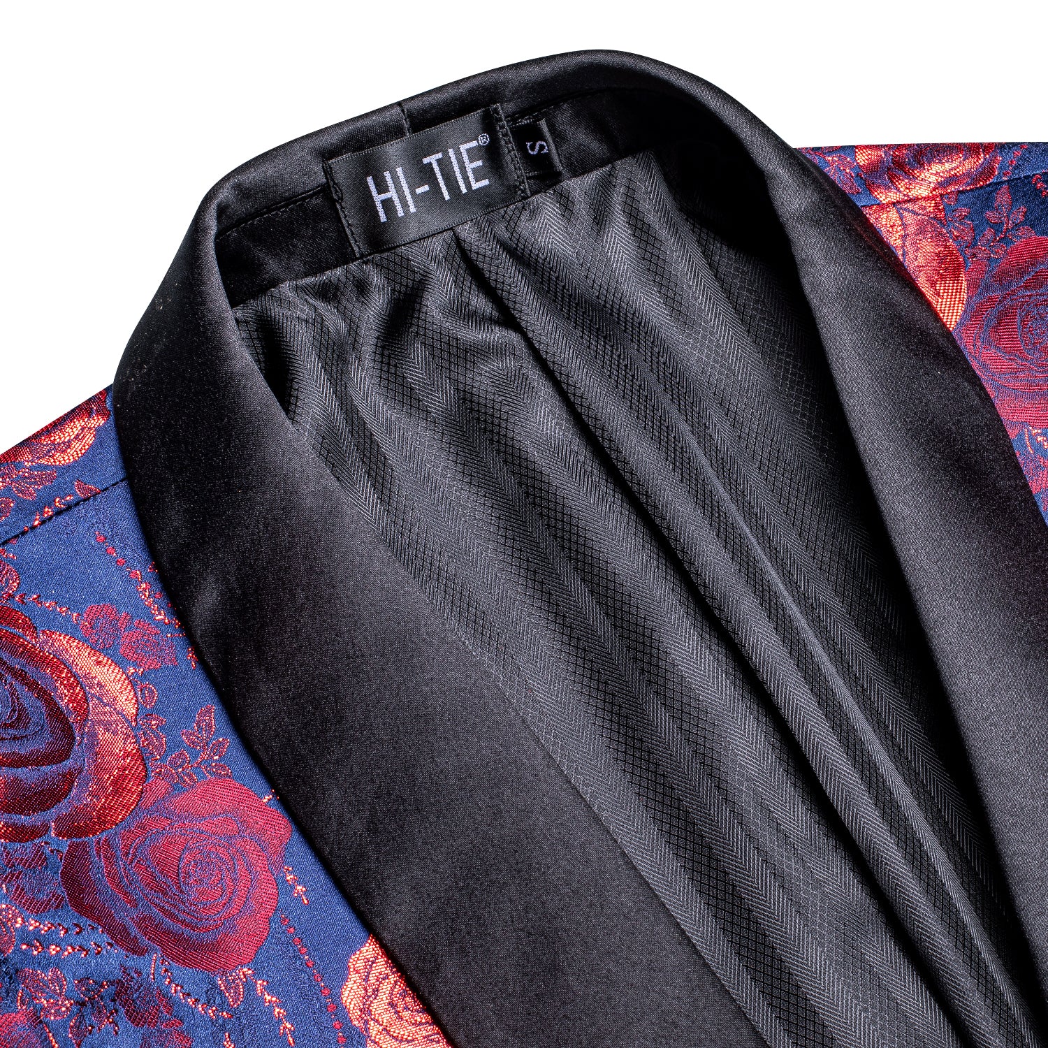 Hi-Tie Black Shawl Lapel Luxury Blue Red Floral Men's Suit Set