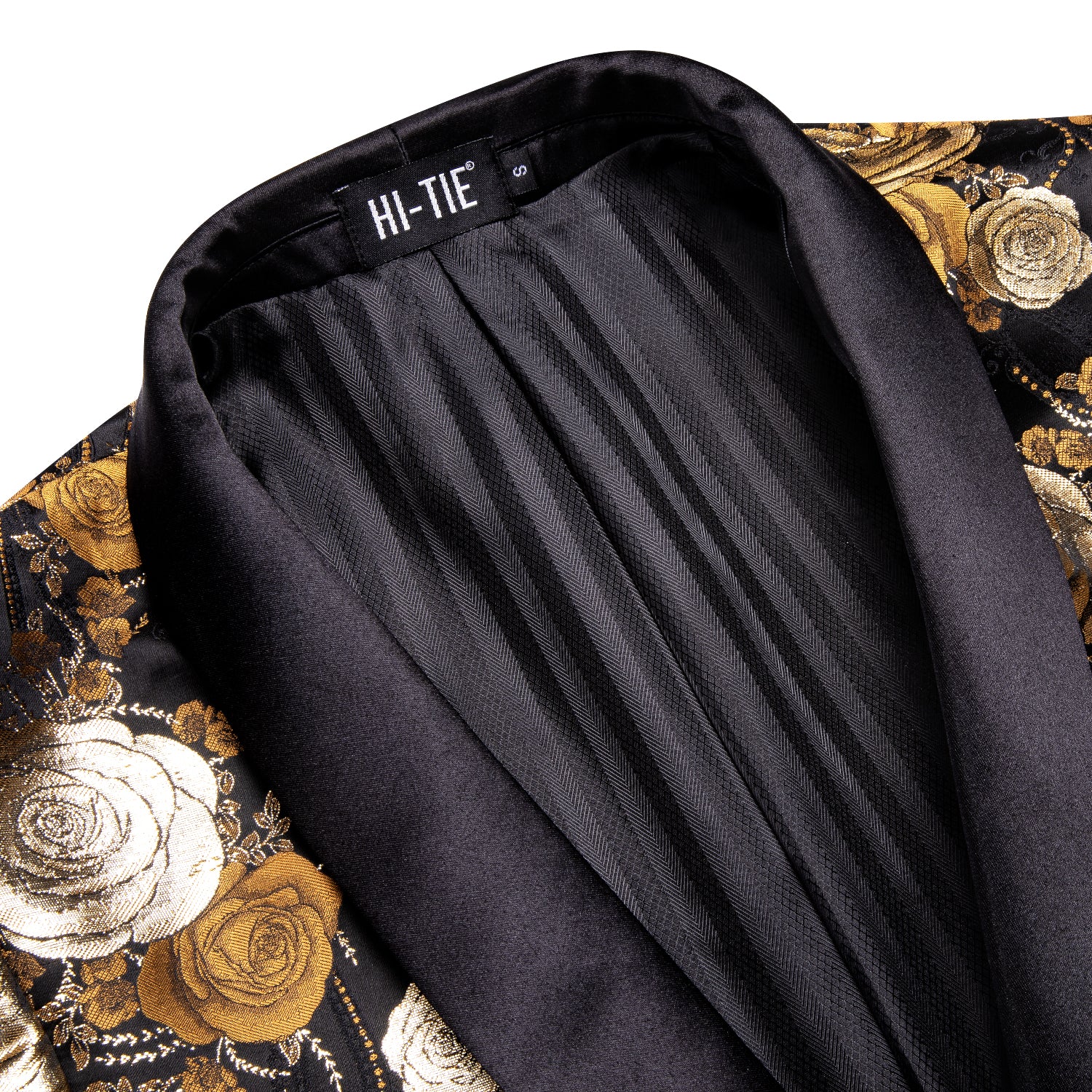 Hi-Tie Black Shawl Lapel Luxury Brown Golden Floral Men's Suit Set