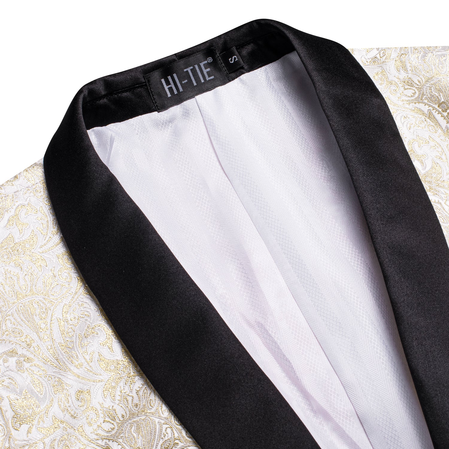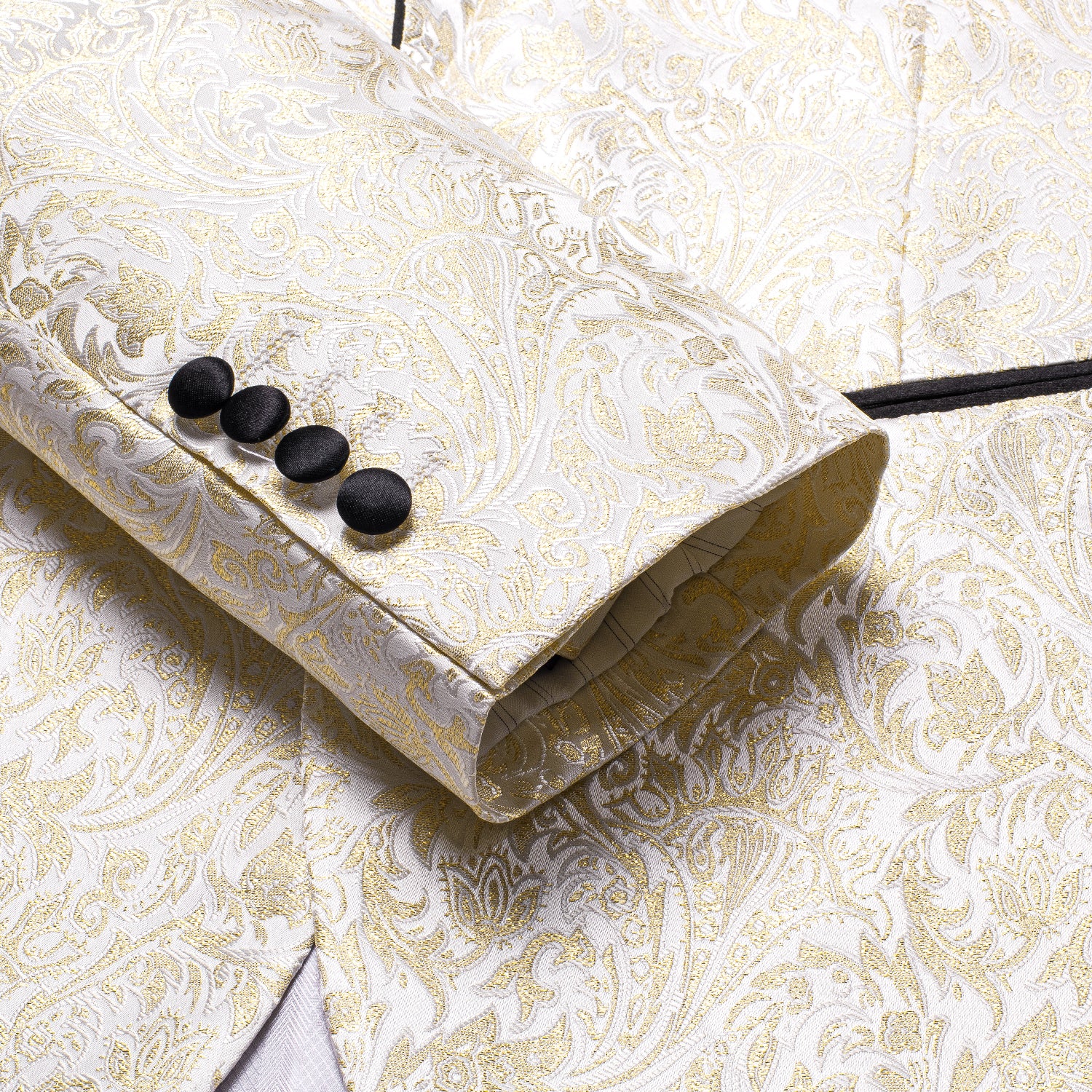 Hi-Tie Wedding Top Luxury Champagne White Paisley Men's Suit Set