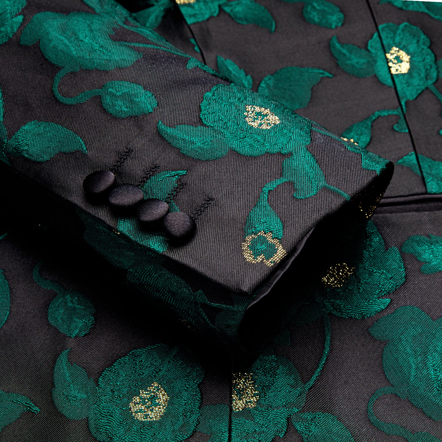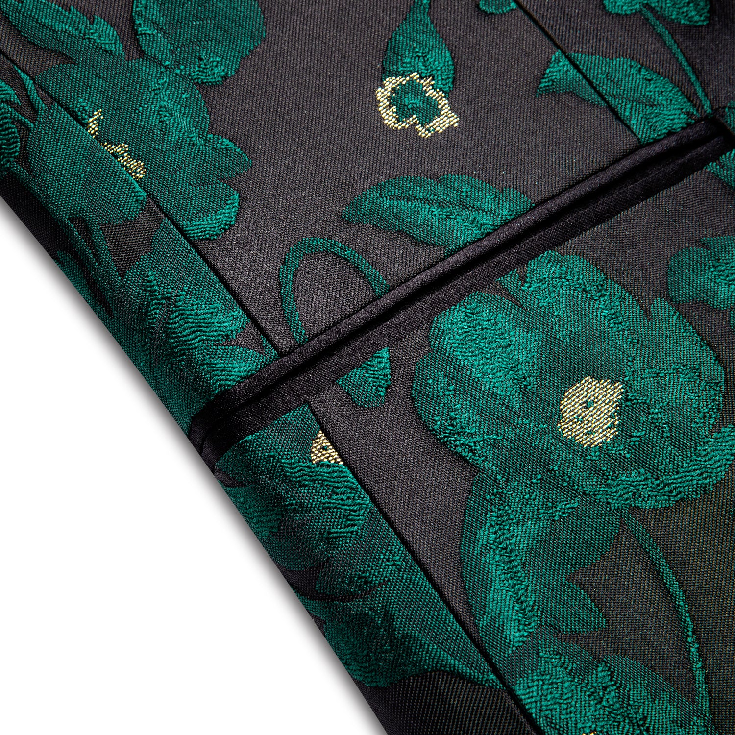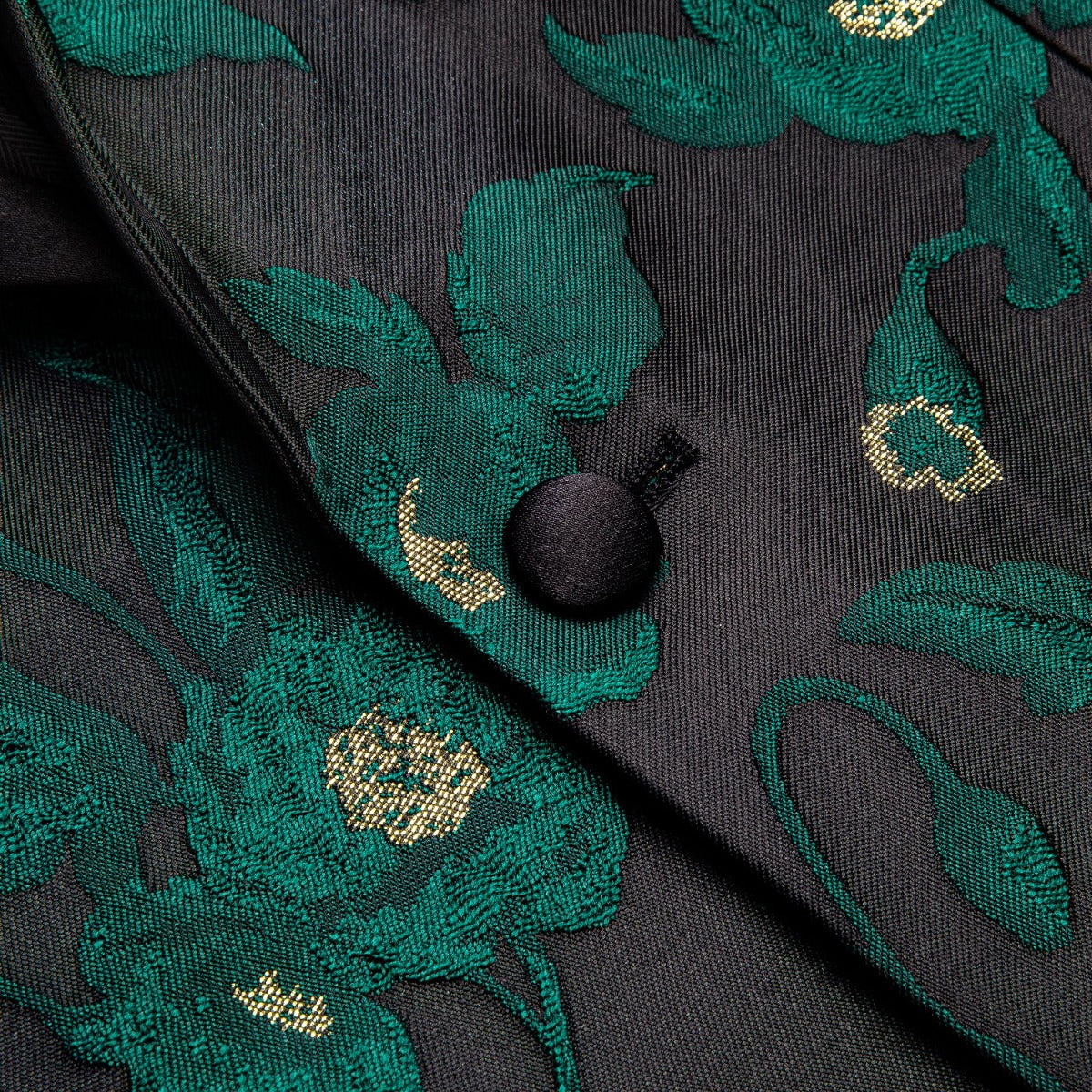 Hi-Tie Black Shawl Lapel Top Luxury Green Yellow Flower Men's Suit Set