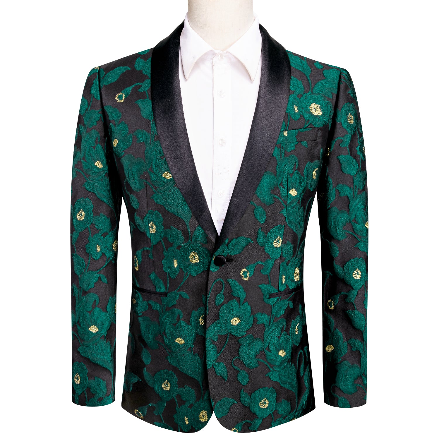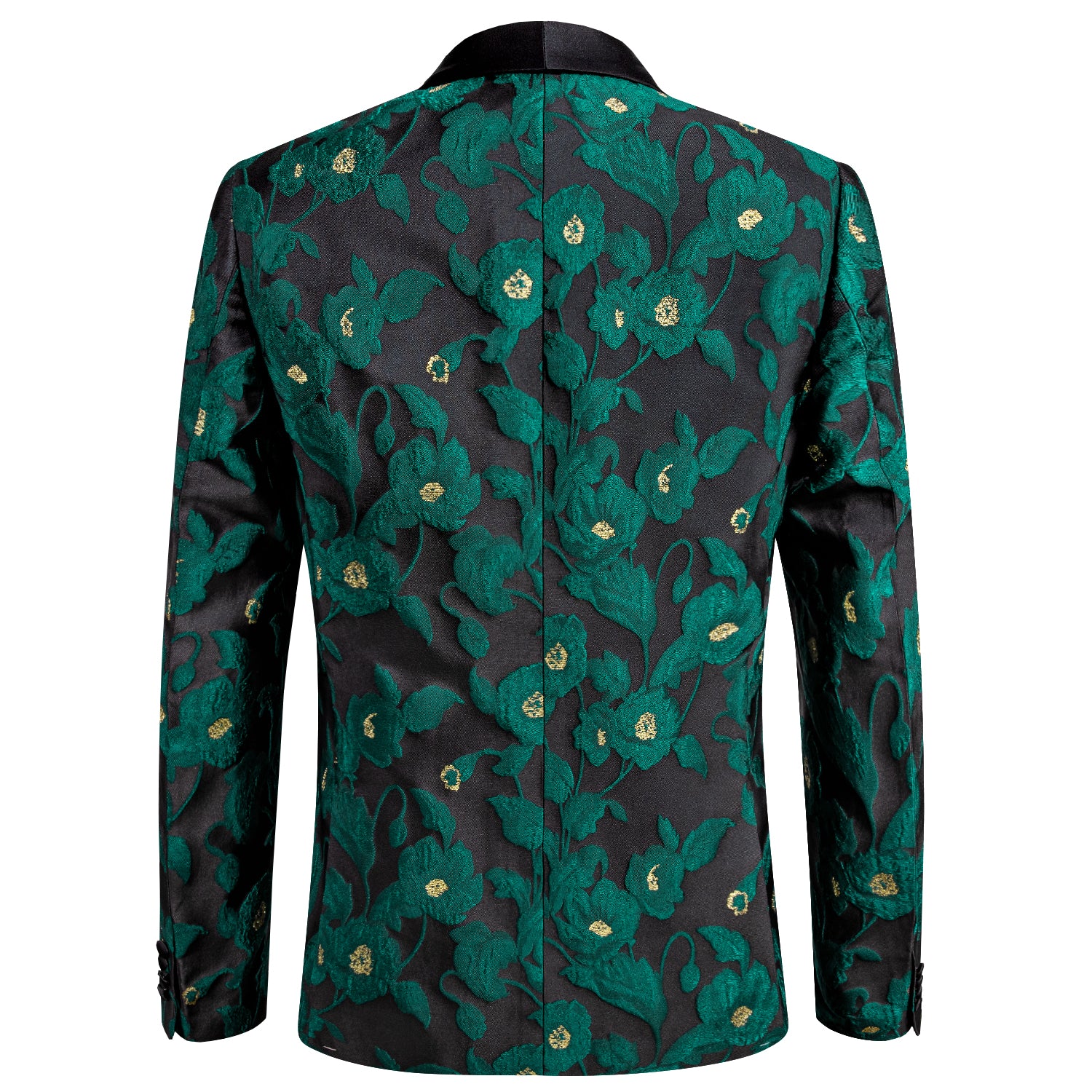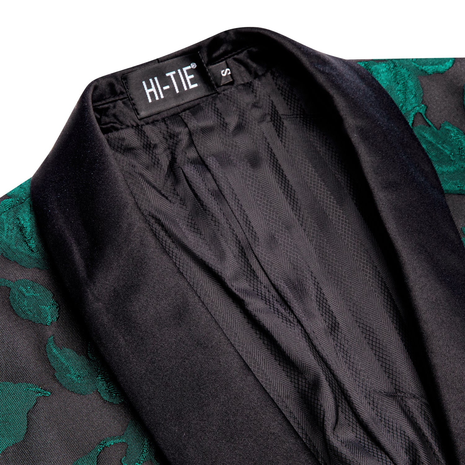 Hi-Tie Black Shawl Lapel Top Luxury Green Yellow Flower Men's Suit Set