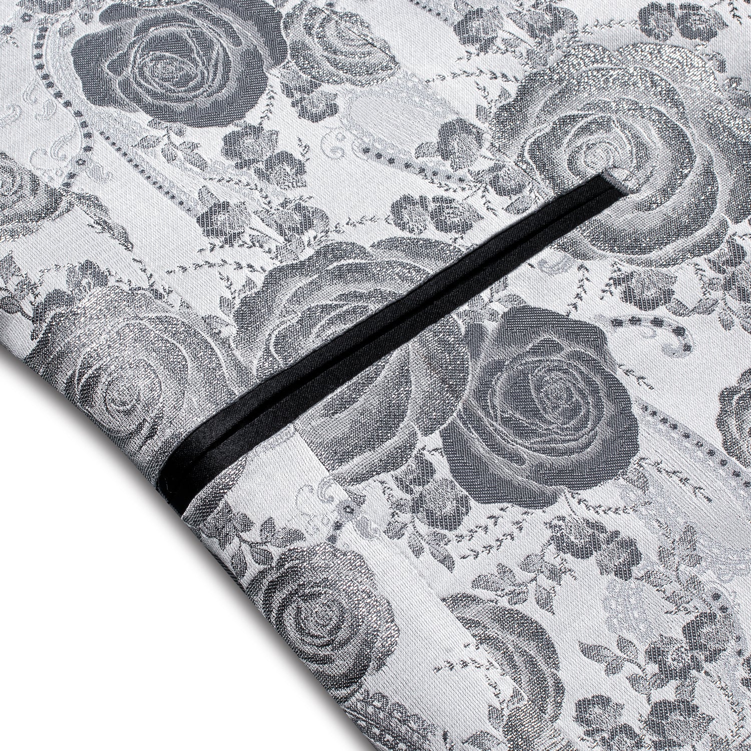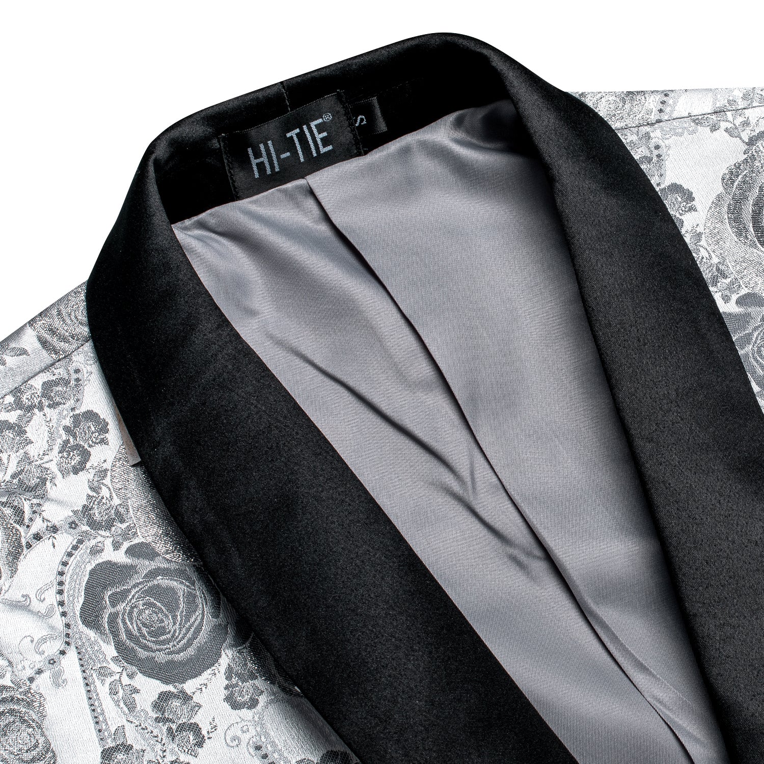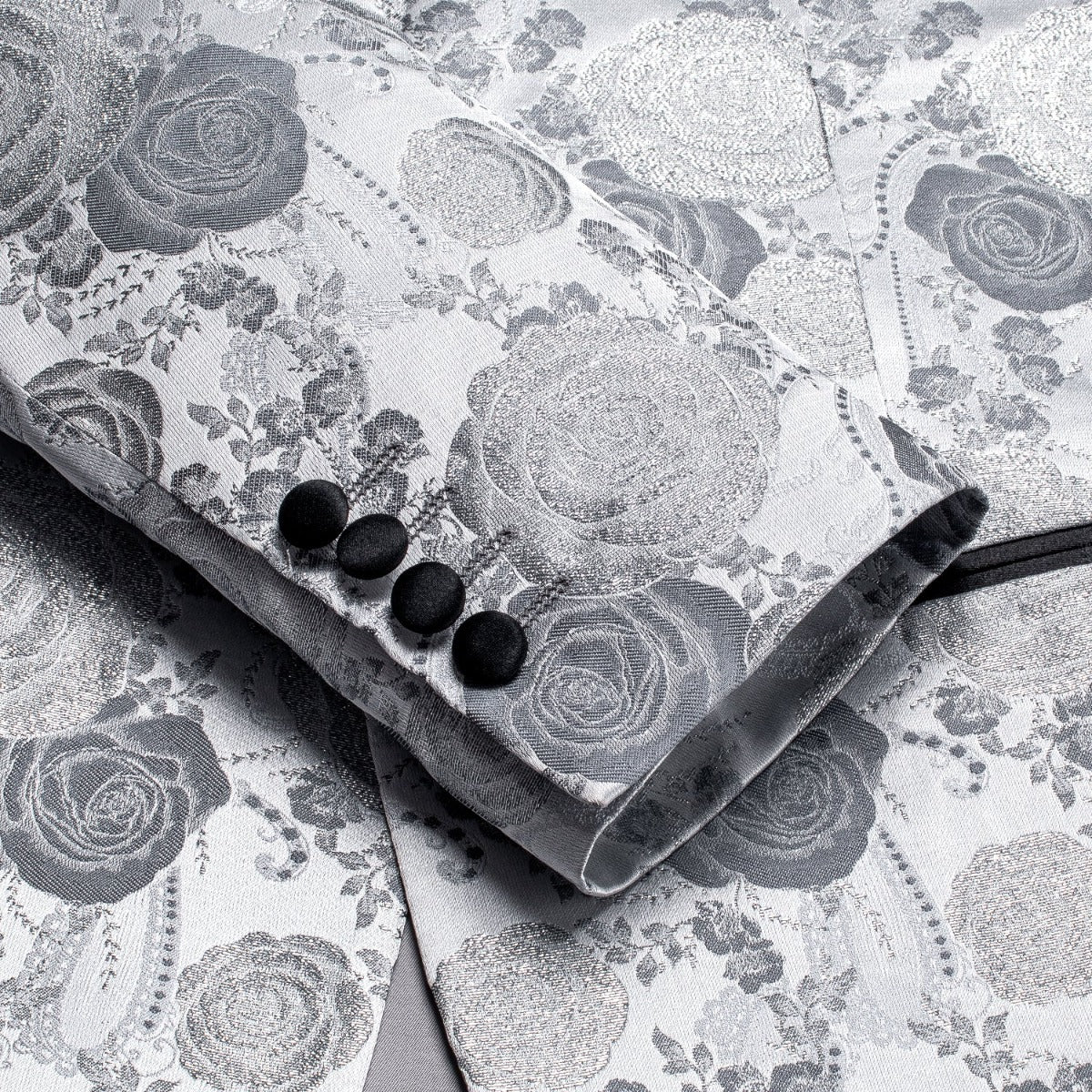 Hi-Tie Wedding Blazer Sliver Grey Roses White Floral Men's Suit Set