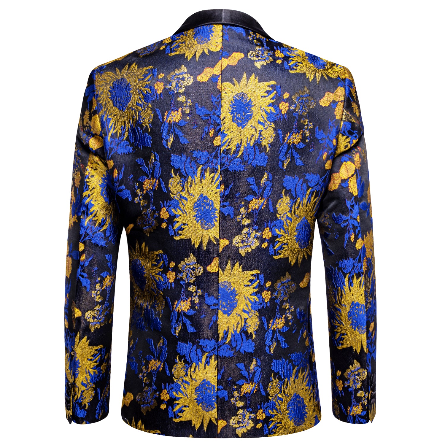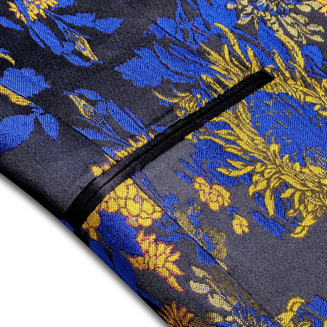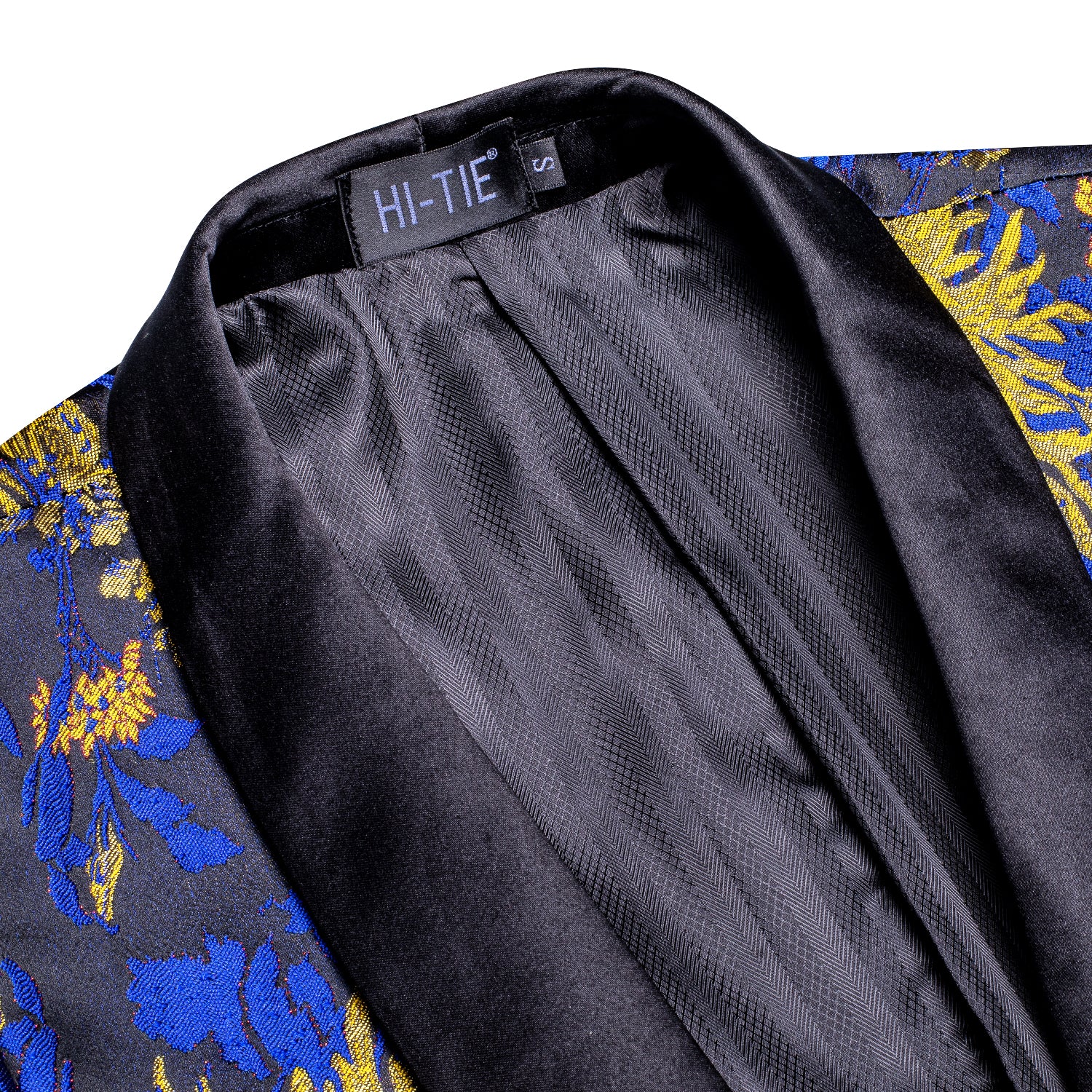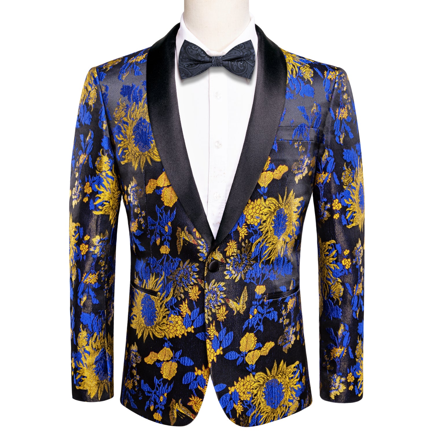 Hi-Tie Black Shawl Lapel Dinner Suit Yellow Blue Floral Men's Blazer
