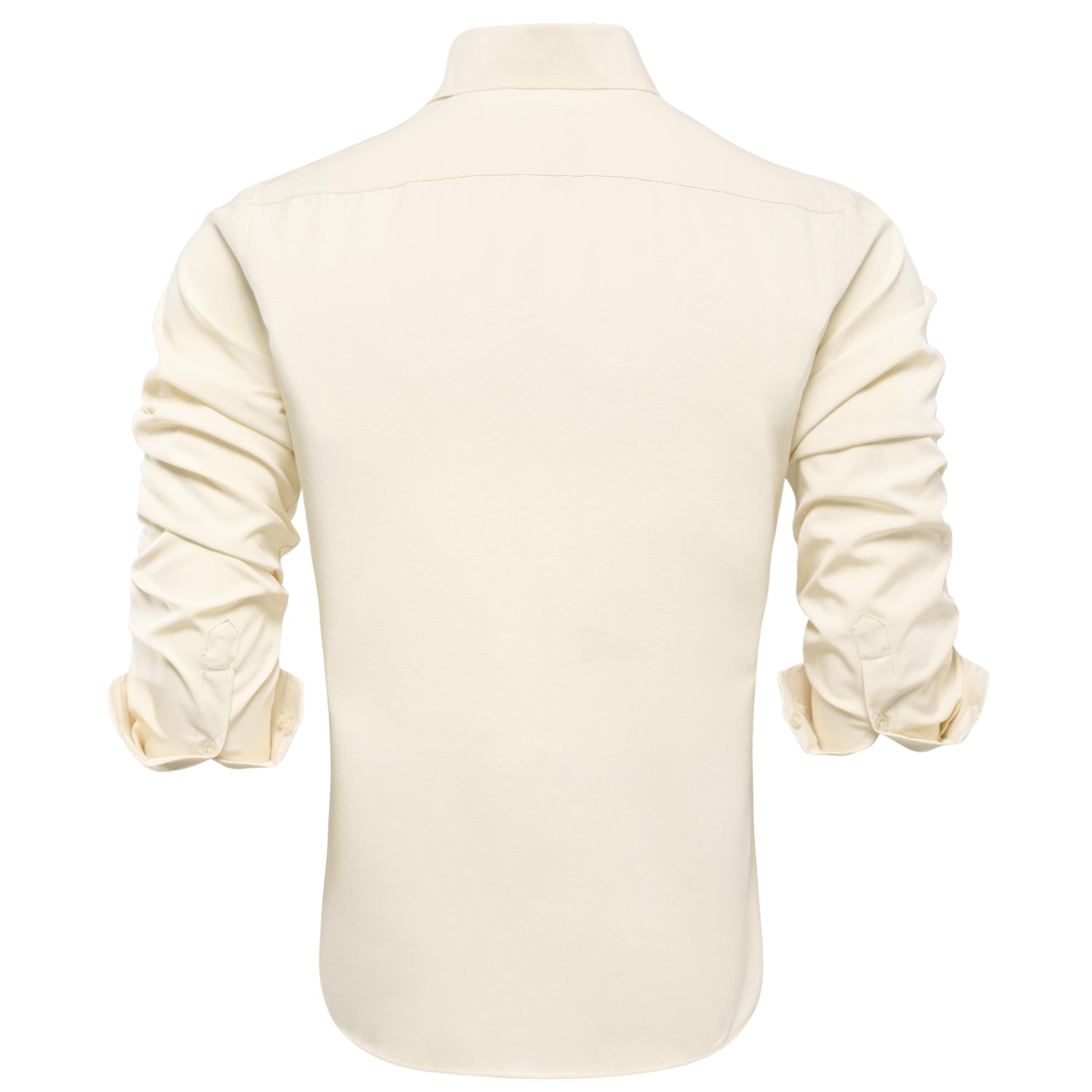 Milk White Solid Stretch Men's Long Sleeve Shirt