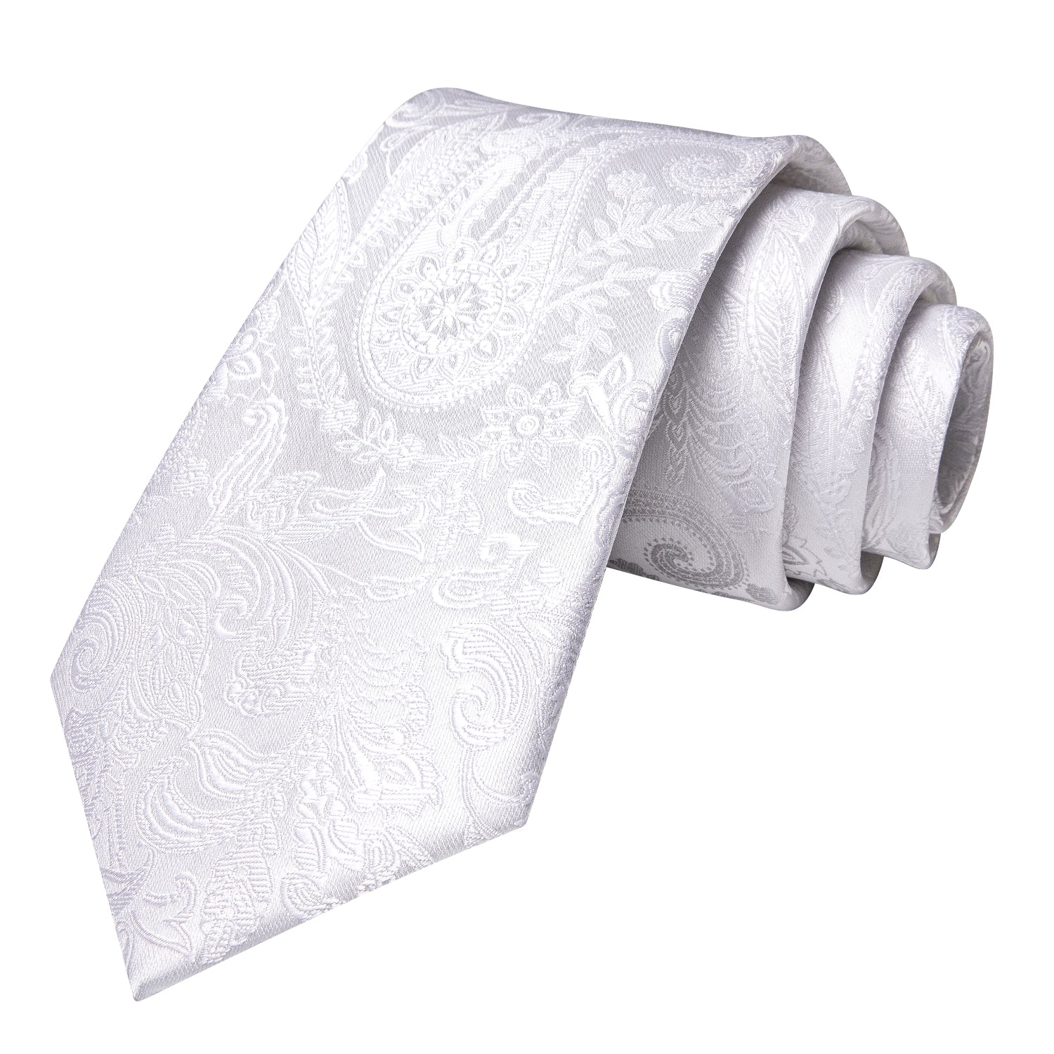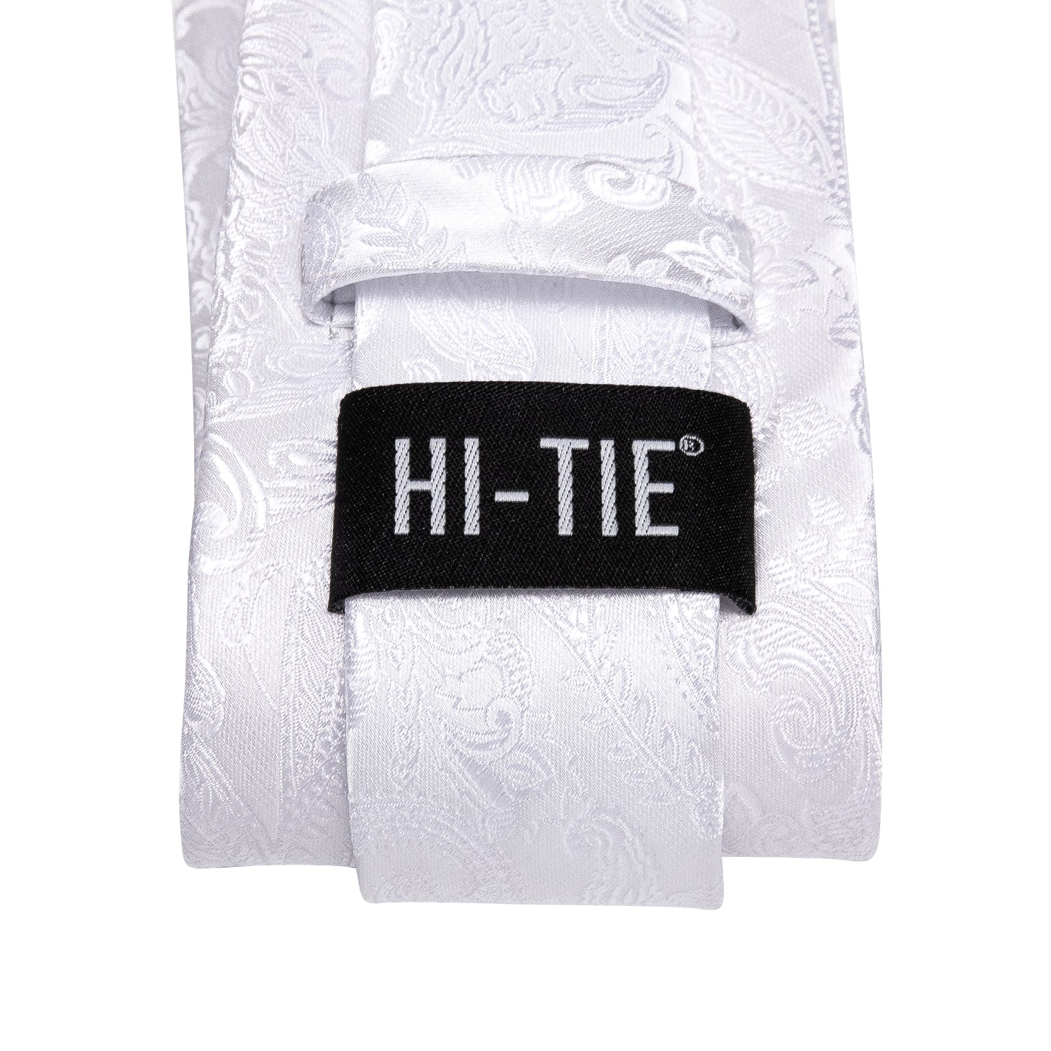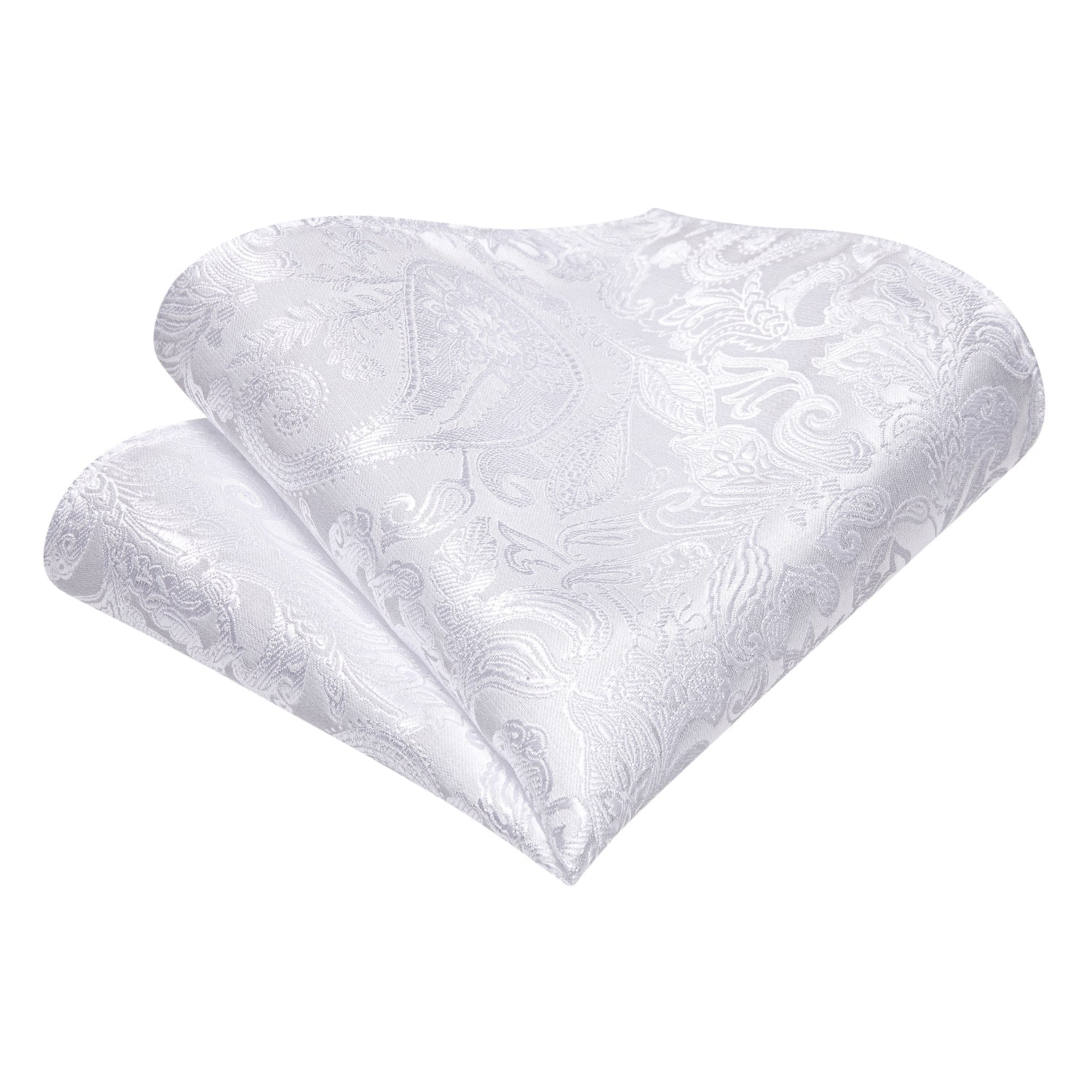 Hi-Tie Pure White Floral Men's Necktie Pocket Square Cufflinks Set
