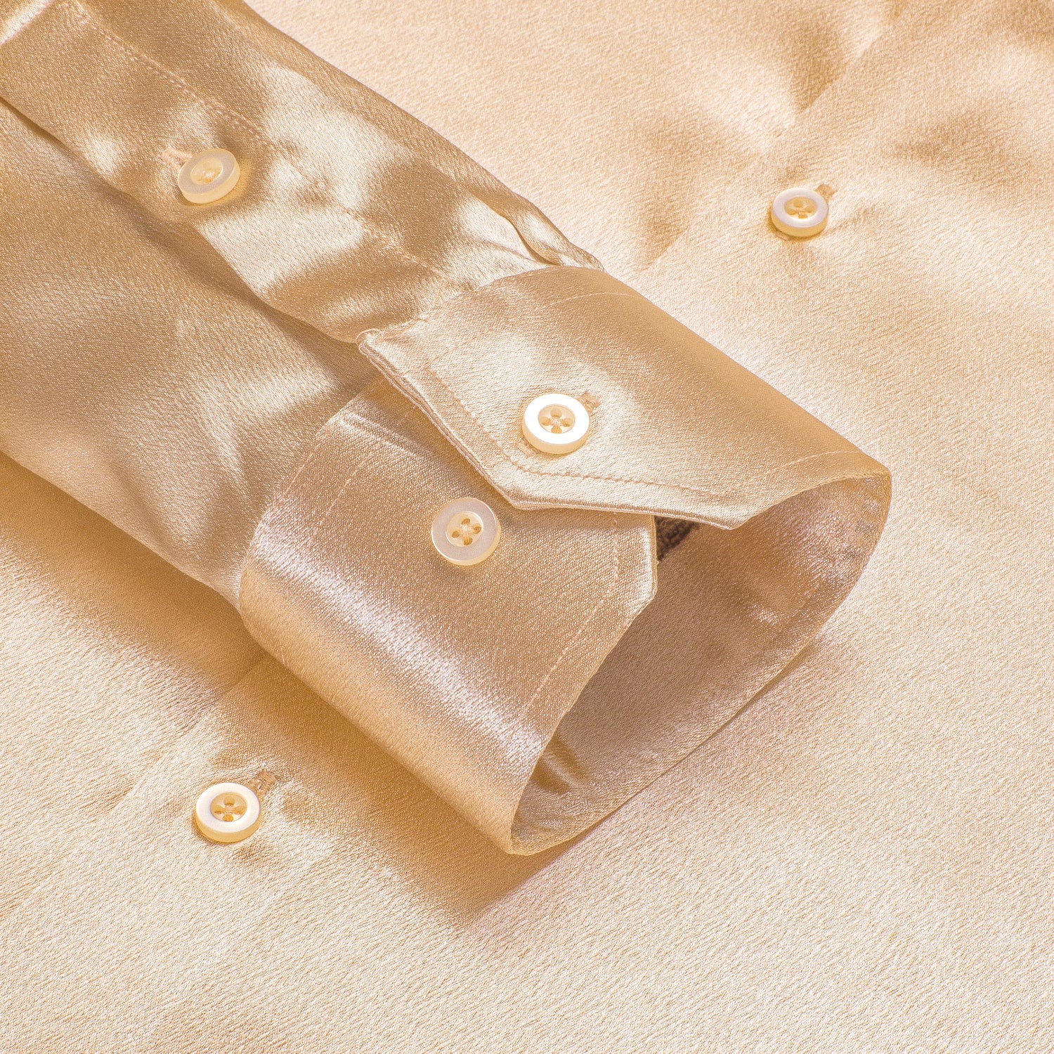 Wheat Yellow Satin Silk Men's Long Sleeve Shirt