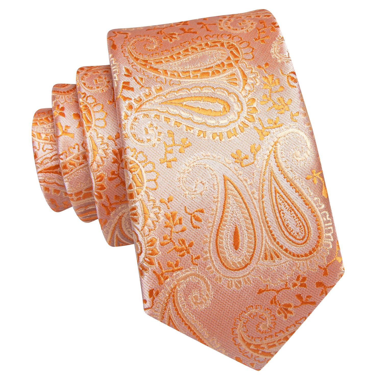 Orange Paisley Children's Kids Boys Tie Pocket Square 6cm